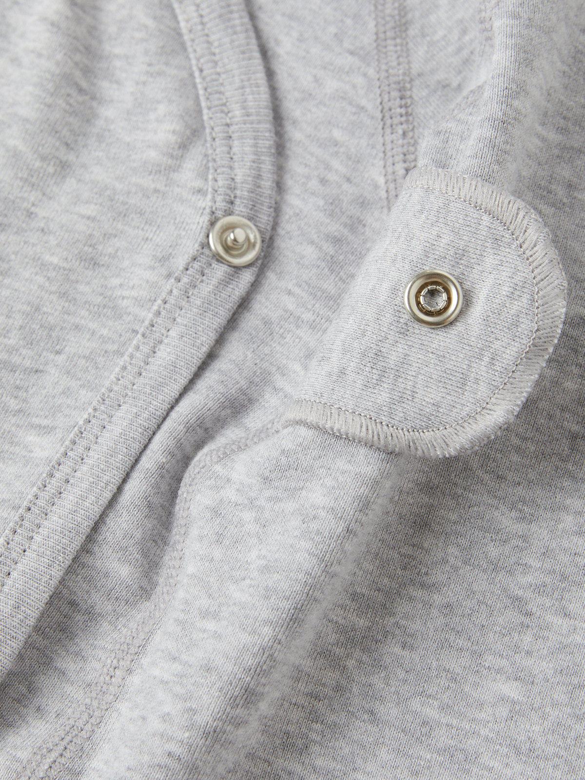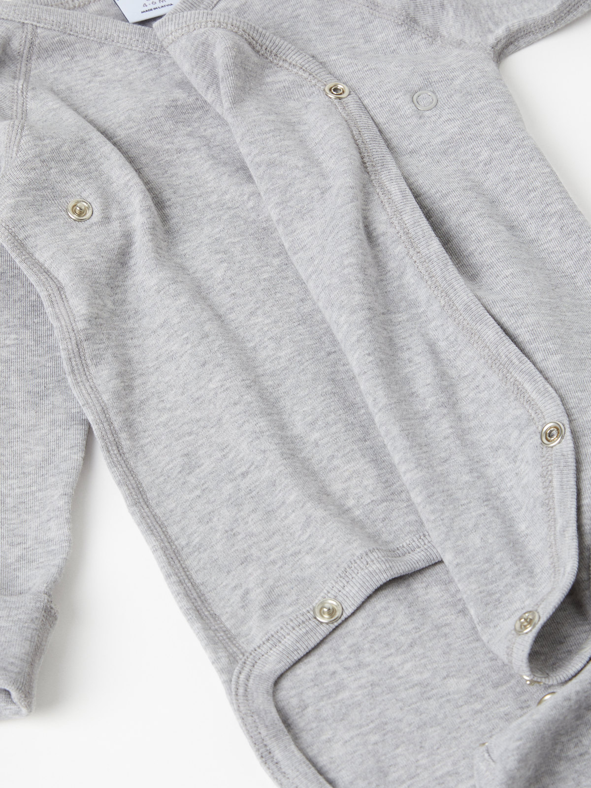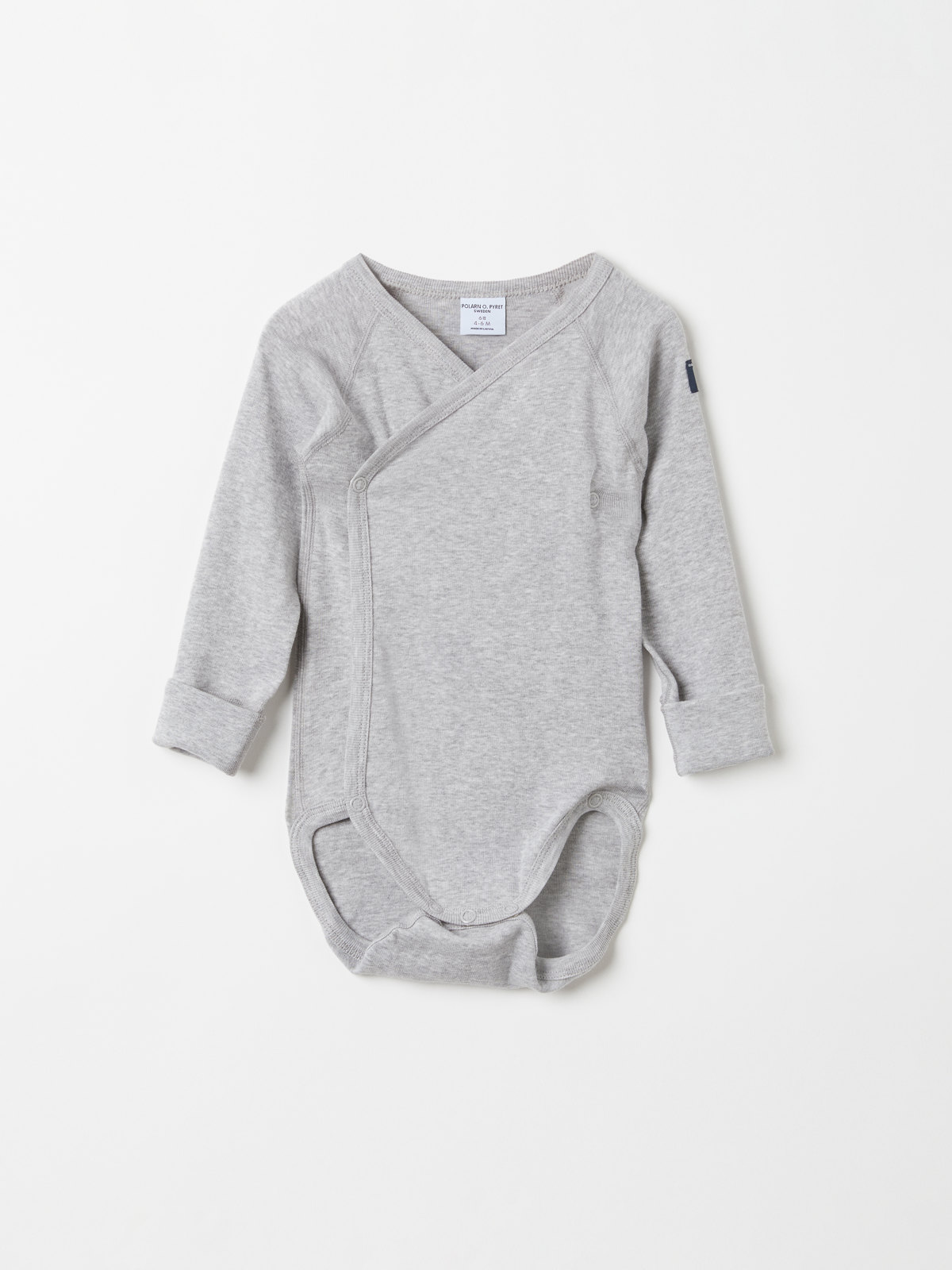 Wrap bodysuit in organic cotton for newborn. The bodysuit features our classic stripes and soft, ribbed cuffs that can be folded down as the baby grows. Snaps along the closure and at the crotch facilitate dressing and diaper changes.