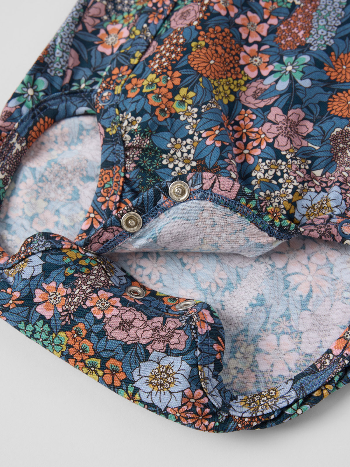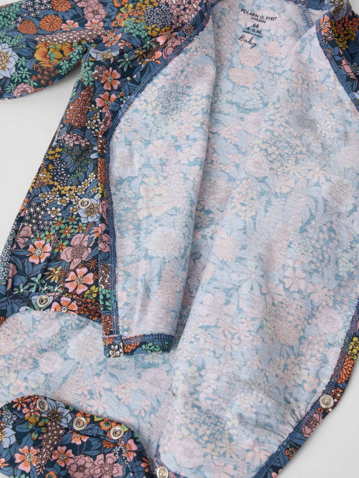 Wraparound babygrow in organic cotton for babies – part of our exclusive design collaboration with Liberty Fabrics. This babygrow features an all-over print with one of Liberty Fabrics’ iconic floral patterns and is limited edition. Designed with extra-soft seams that are gentle on delicate skin. Press buttons along the wrap opening make dressing easy.