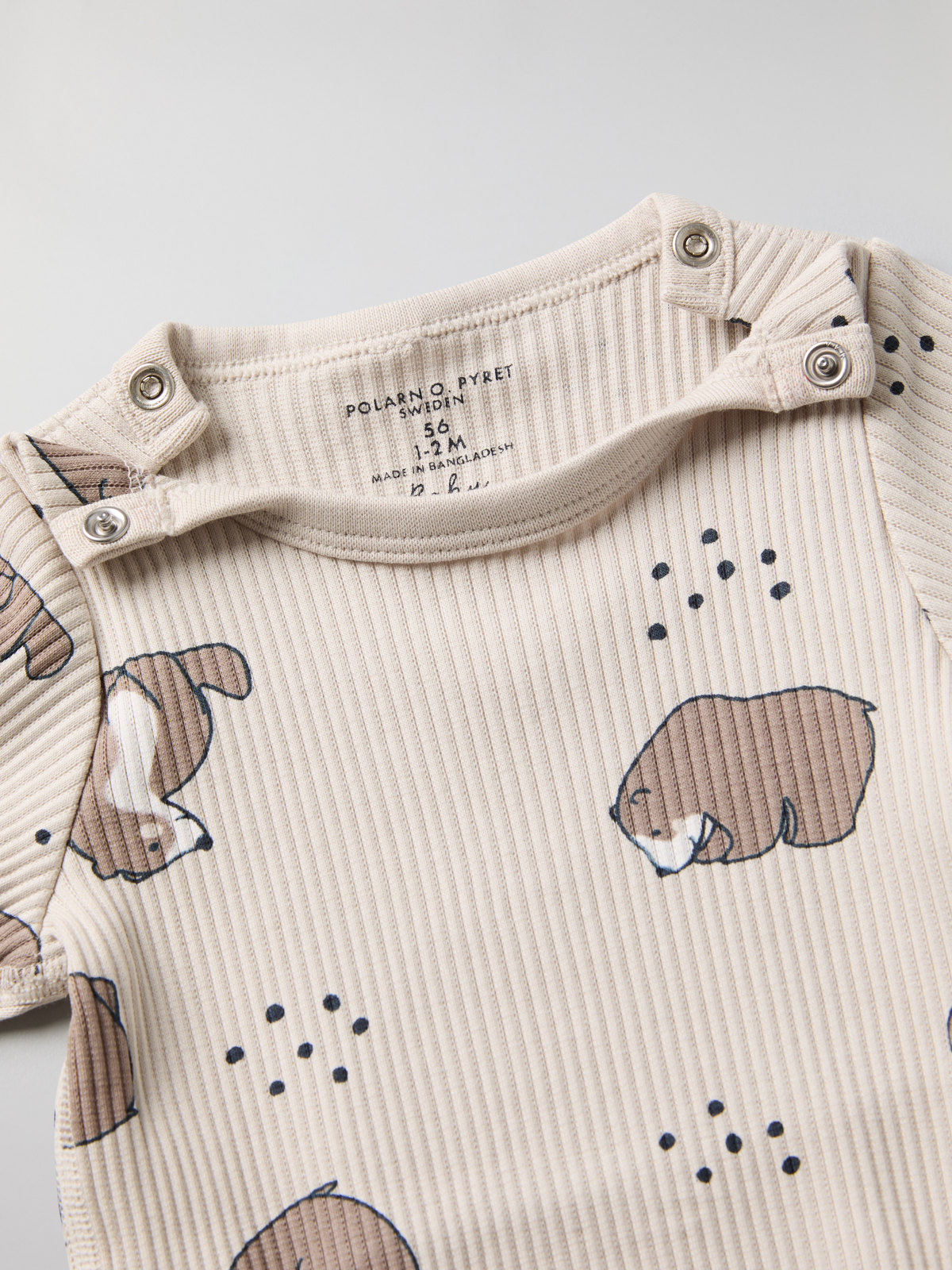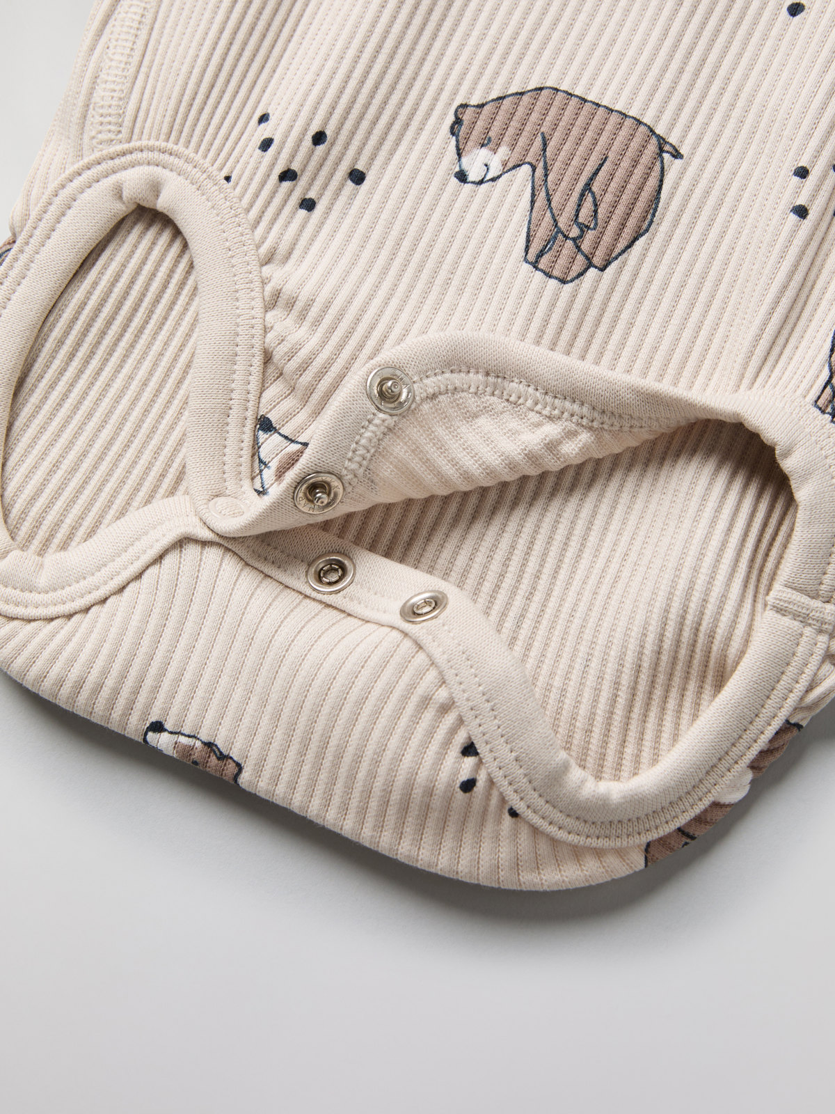 Ribbed bodysuit in soft organic cotton for baby, with an allover small bear print.