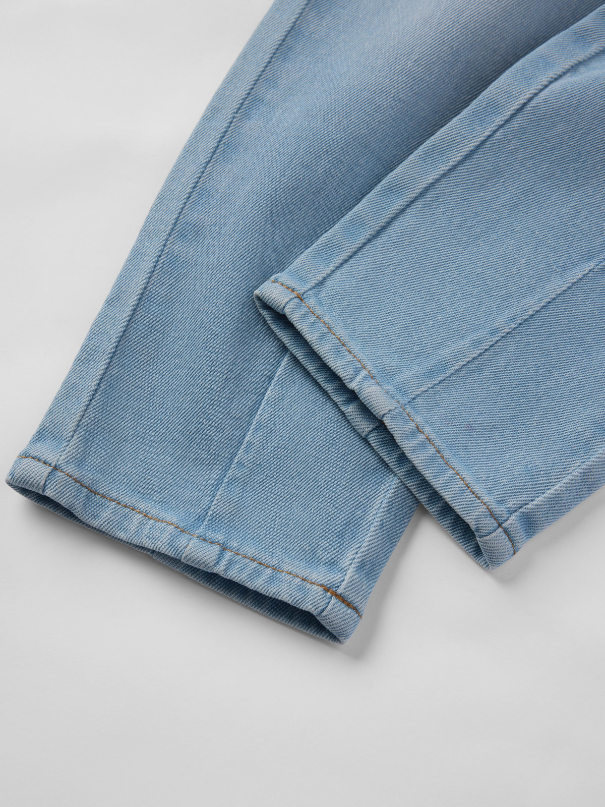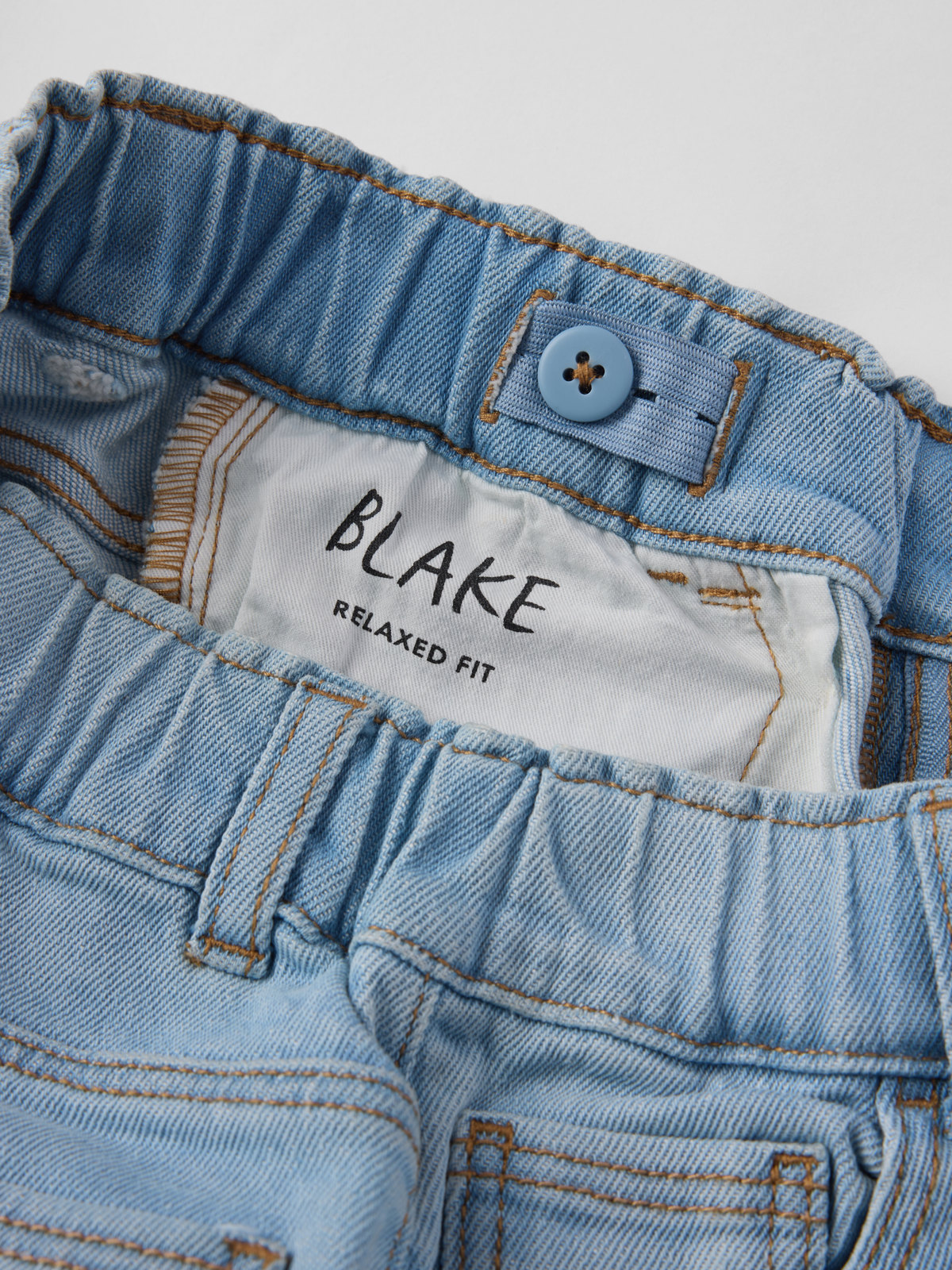 Our new BLAKE jeans are made from soft denim in a comfortable barrel fit. A playful and practical pair of trousers with an elasticated waist and tapered legs. All our jeans, since spring 2022, are made from GOTS-certified cotton.