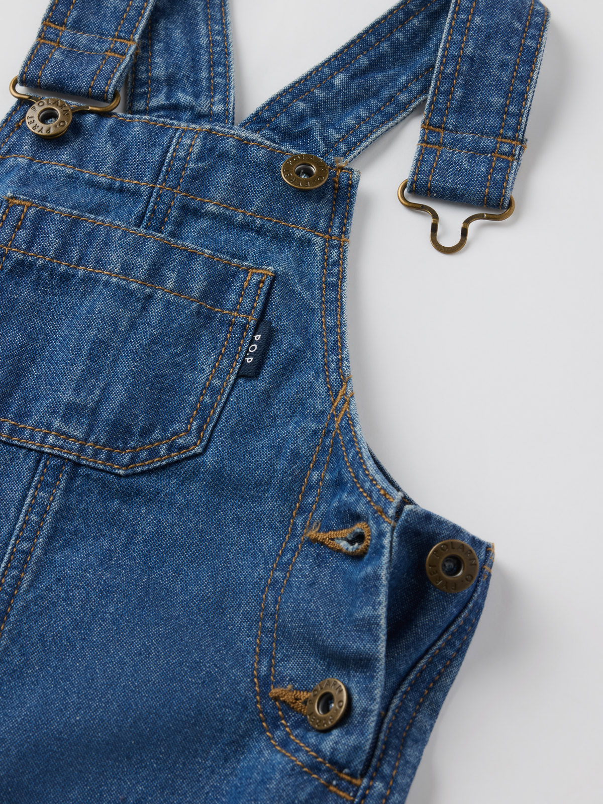 Dungarees in soft, lightweight denim for your little one – a true autumn favourite! They have straight legs, adjustable straps with buckles at the front, and side buttons for easy dressing. They also feature a front chest pocket and two back pockets. Press buttons at the crotch make changing easy.