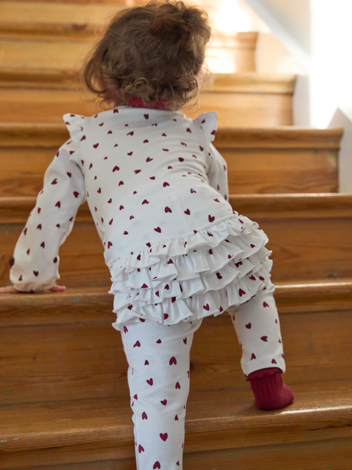 Soft and comfy leggings in organic cotton with cute ruffles at the back.