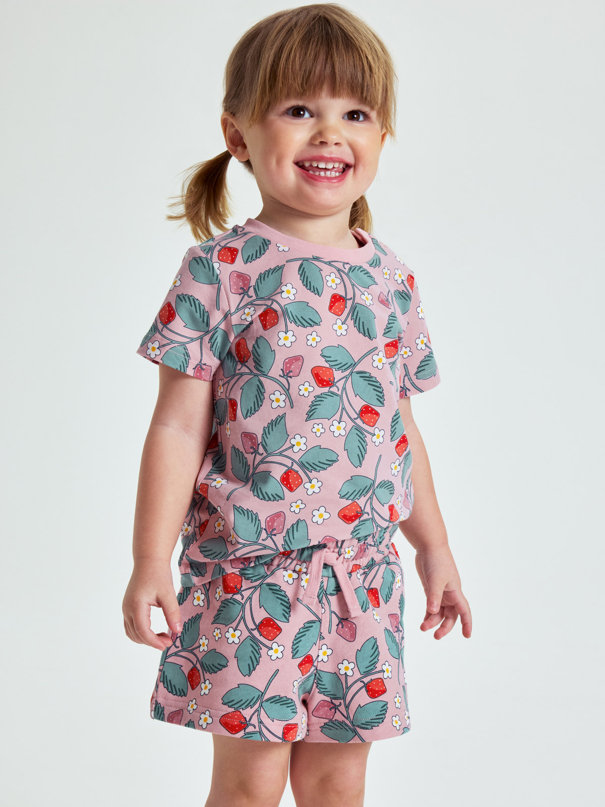 Shorts in soft sweatshirt fabric in 100% organic cotton – a perfect everyday garment for the summer wardrobe! The shorts have an allover strawberry print and an elastic waist that is adjustable with drawstring.