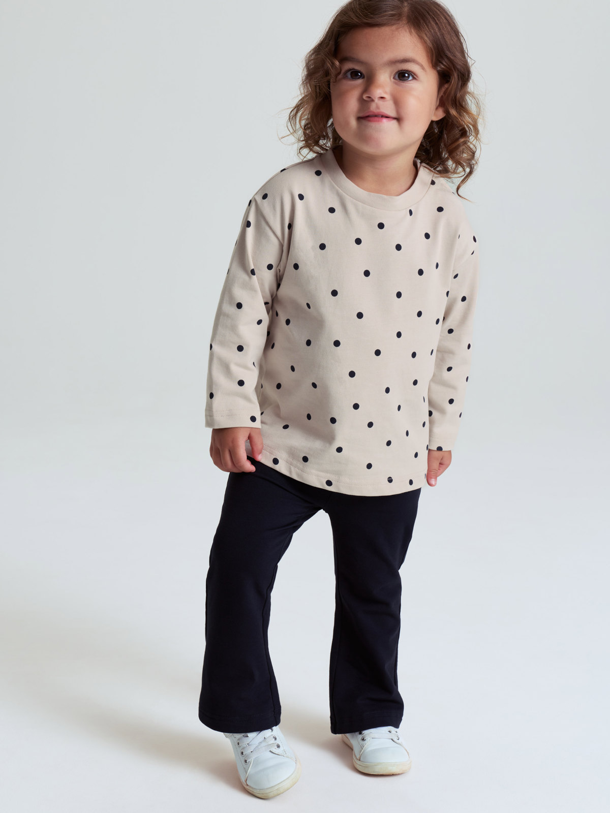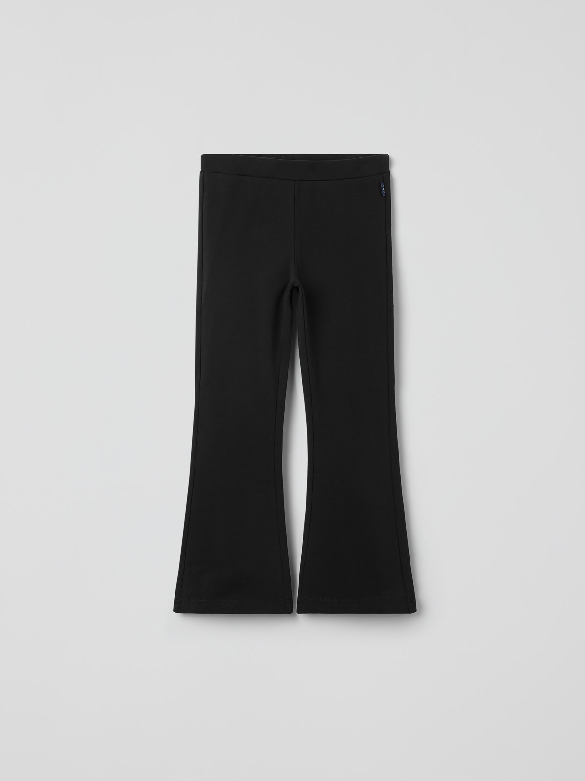 Trousers in organic cotton with soft sweatshirt quality and brushed inside – a true autumn favourite! The trousers feature an elastic waist adjustable with buttonhole elastic. The legs are flared.
