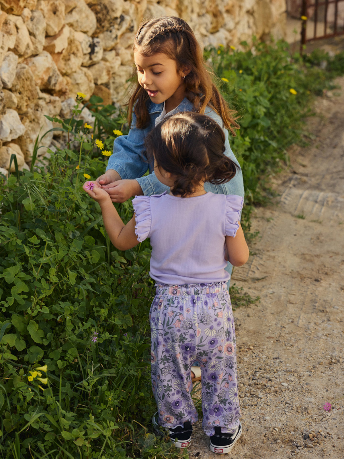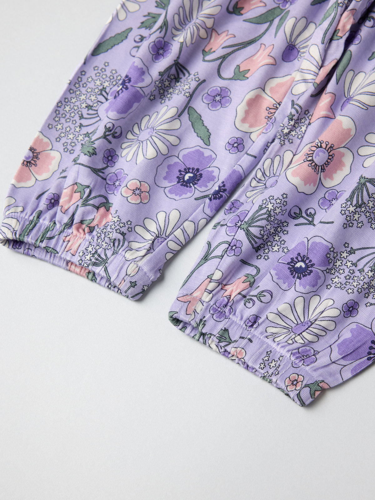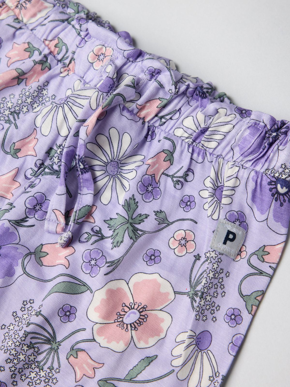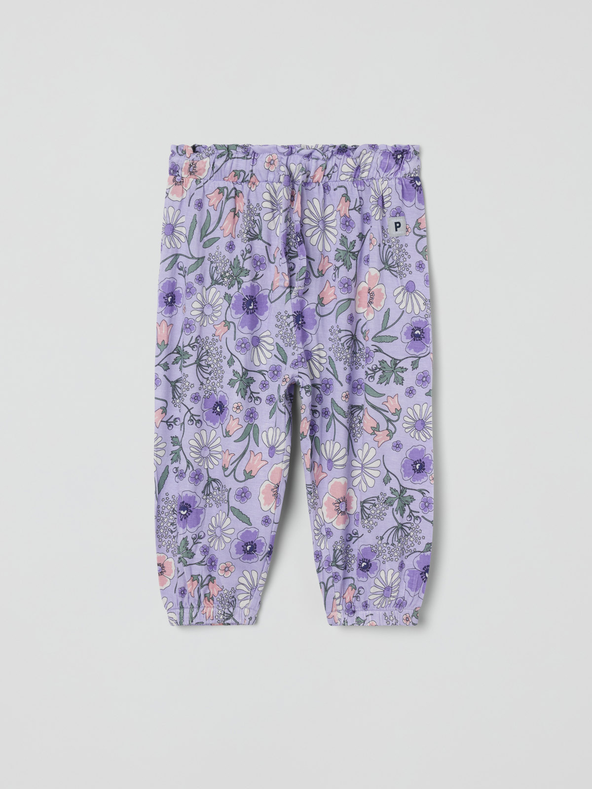 Floral pants in thin and cool Ecovero™ Viscose jersey for baby – perfect for warmer days! The pants have an elastic waist and ankles for a comfy fit.