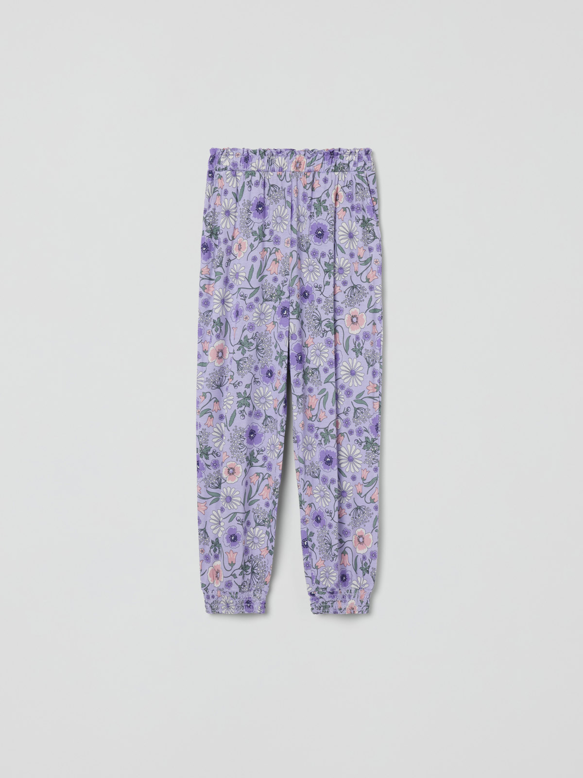 Floral pants made of thin and cool Ecovero™ Viscose jersey – perfect for warm days! The pants have two front pockets, and an elastic waist and ankle cuffs for a good fit.