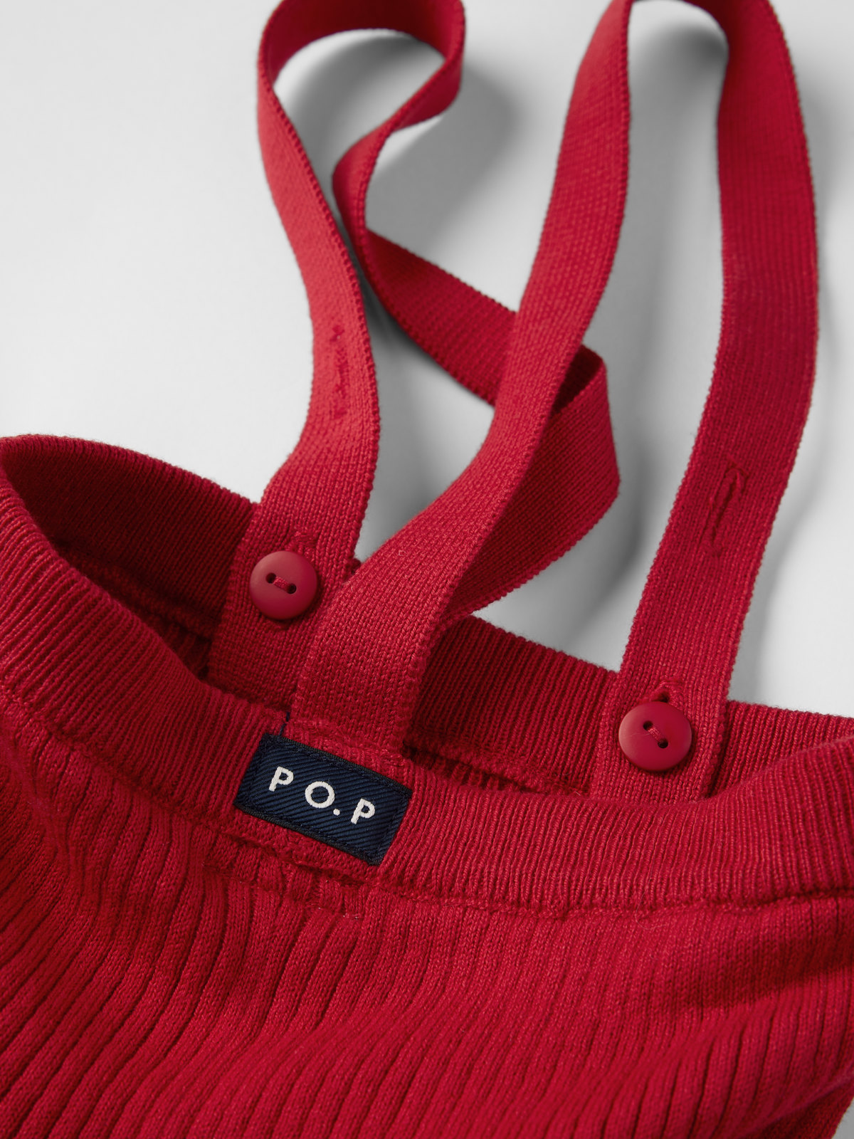 Fine-knit overalls in 100% organic cotton. Perfect for snuggles! The length of the suspenders is adjustable with buttons. Ribbed, soft elastic waistband for a comfortable fit.