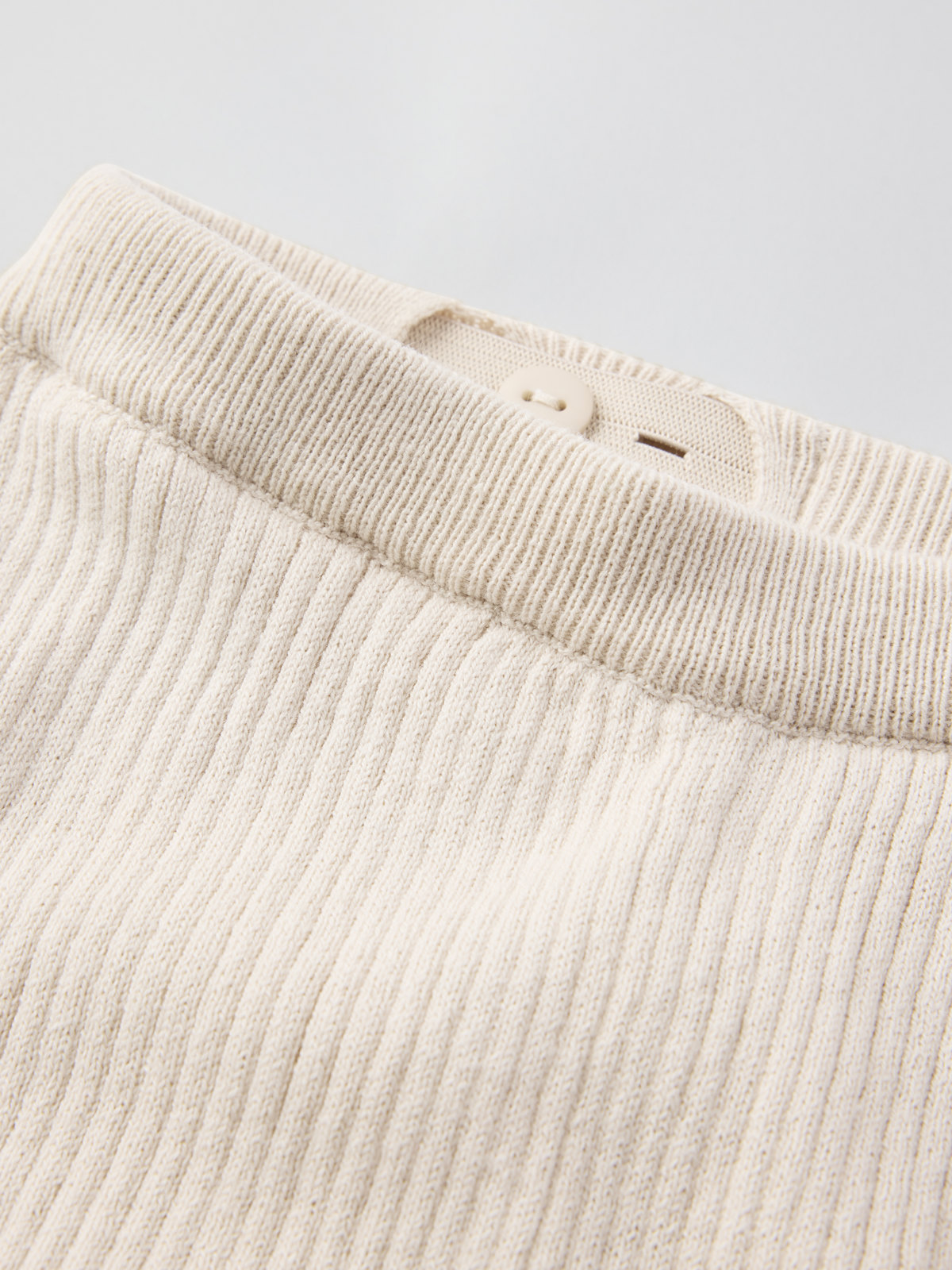 Fine-knit trousers in 100% organic cotton – a truly cosy autumn favourite. The waistband is ribbed and adjustable with buttonhole elastic.