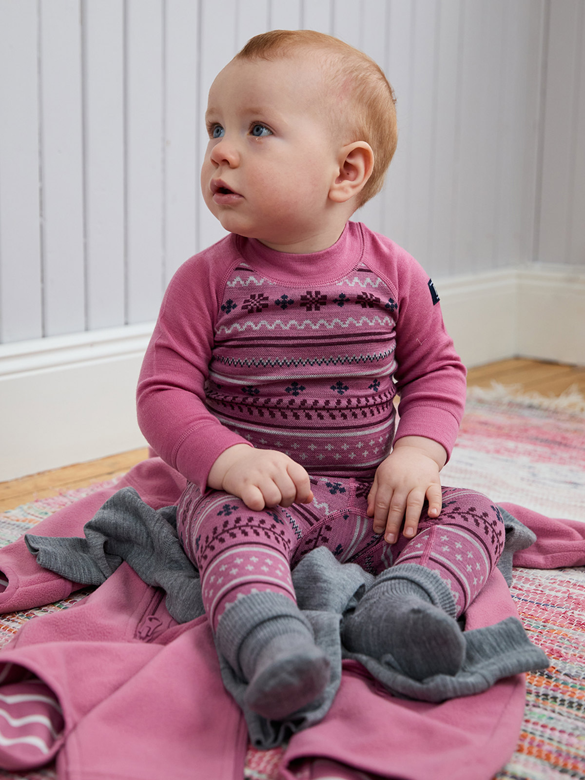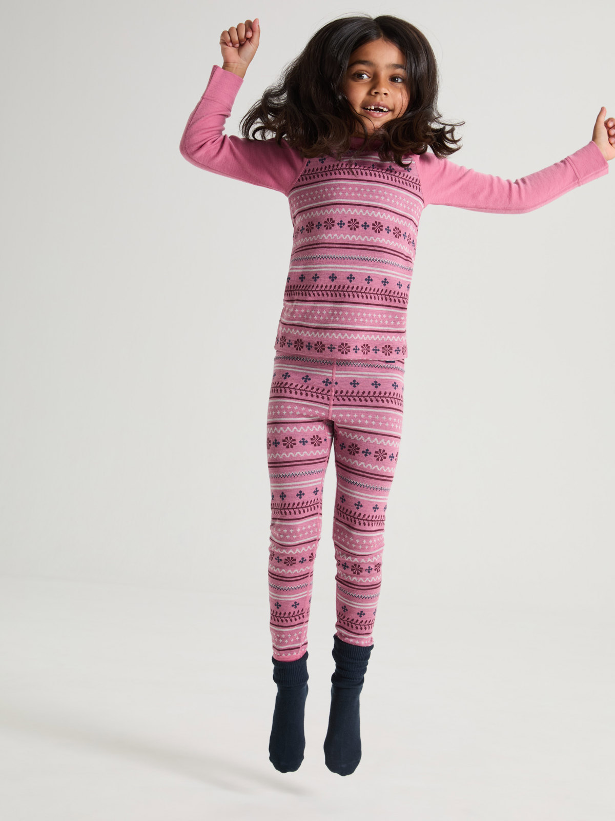 Jacquard print leggings in soft and cozy merino wool. A perfect base layer under our outerwear!