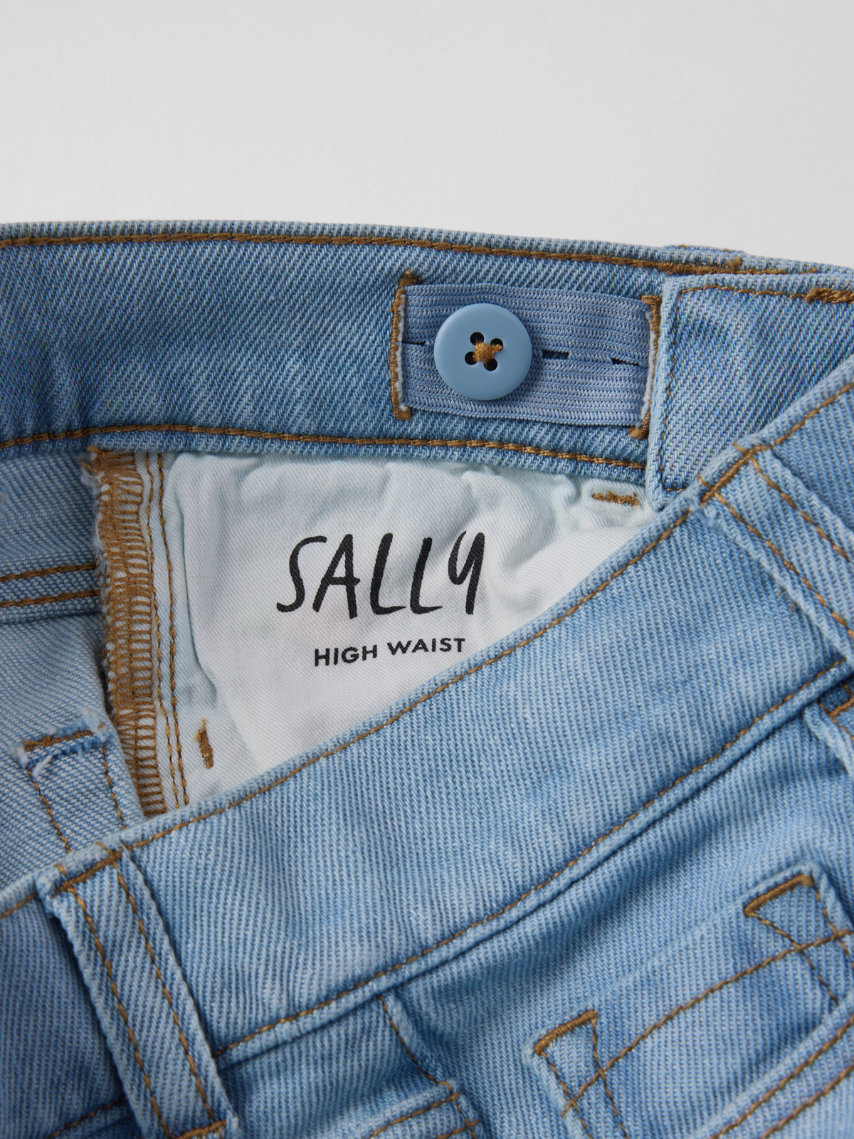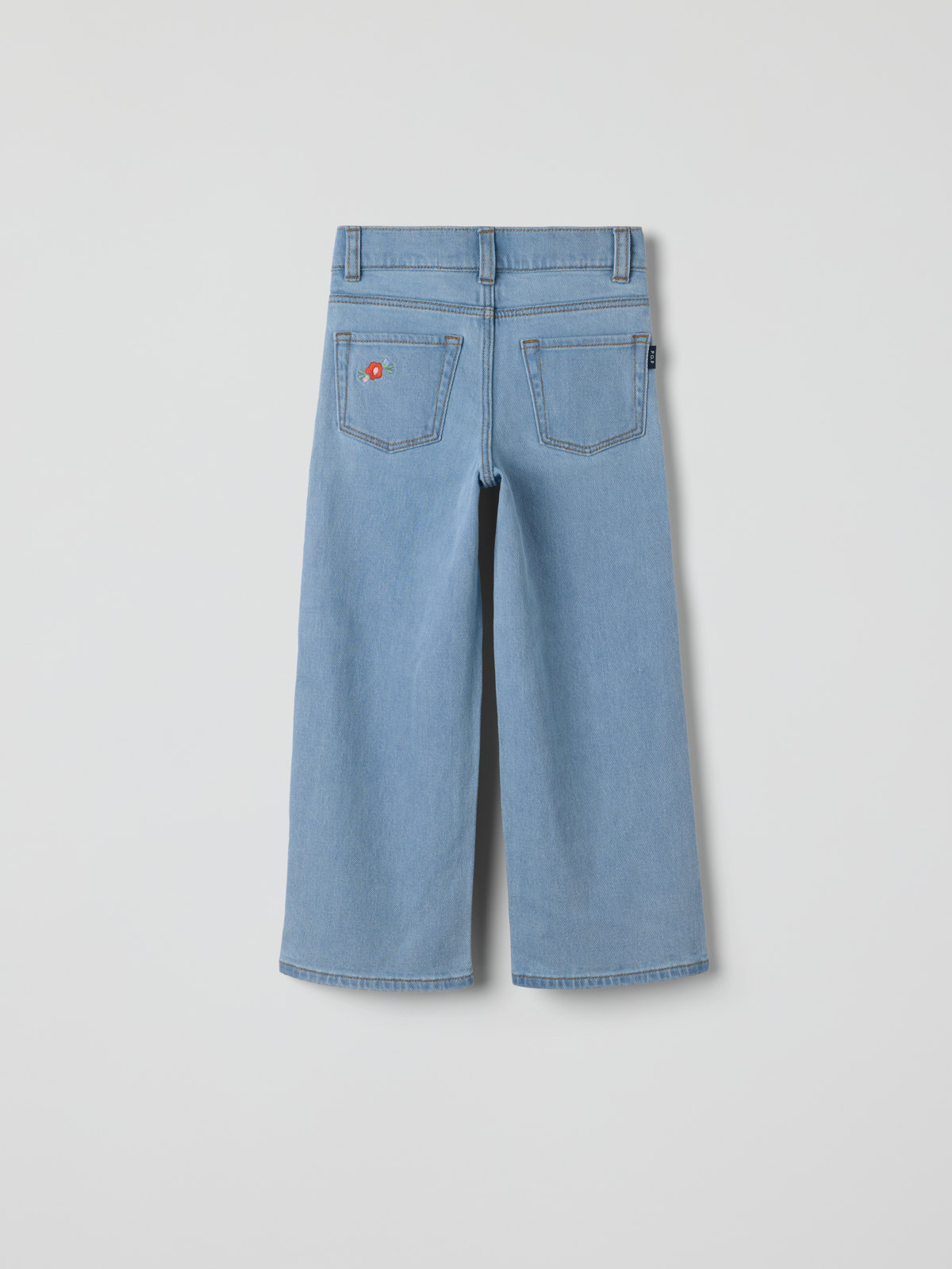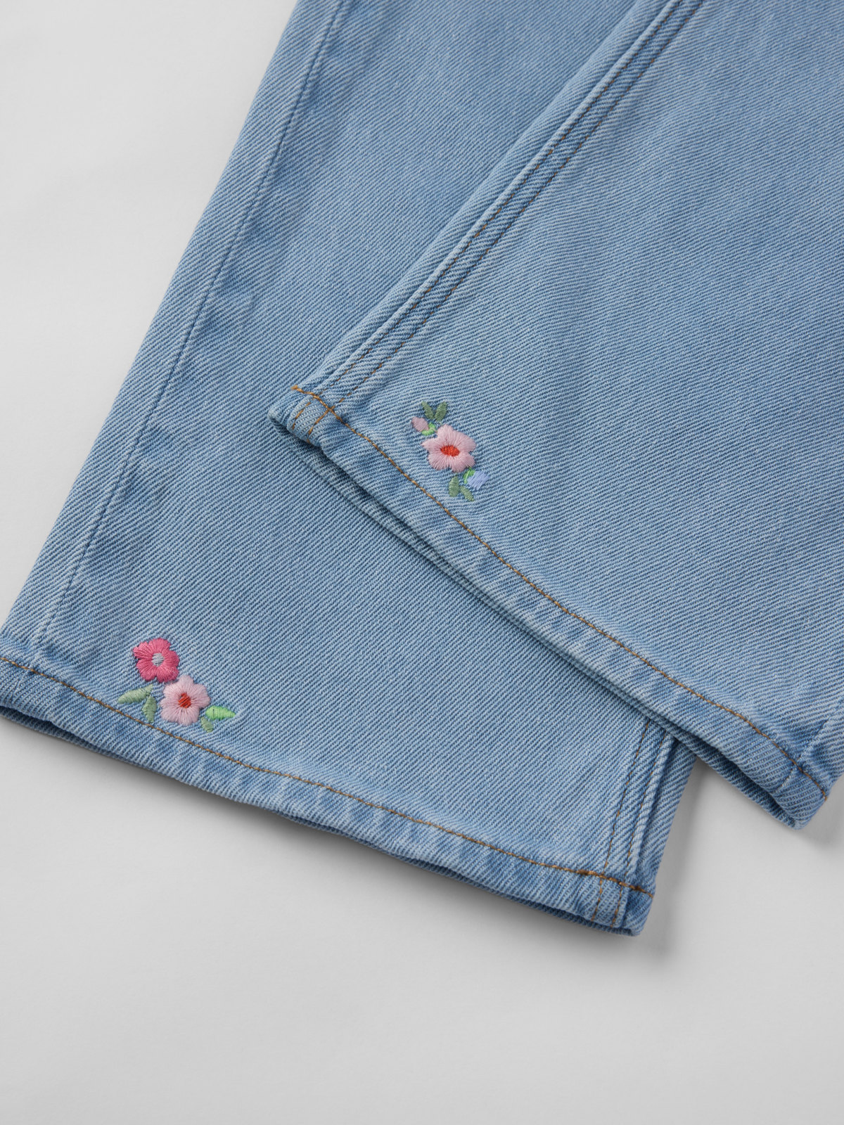 Our stylish SALLY jeans, made in soft denim fabric with cute embroidery. Play-friendly jeans with wide legs and a high waist. All our jeans have been made from GOTS-certified cotton since Spring 2022.