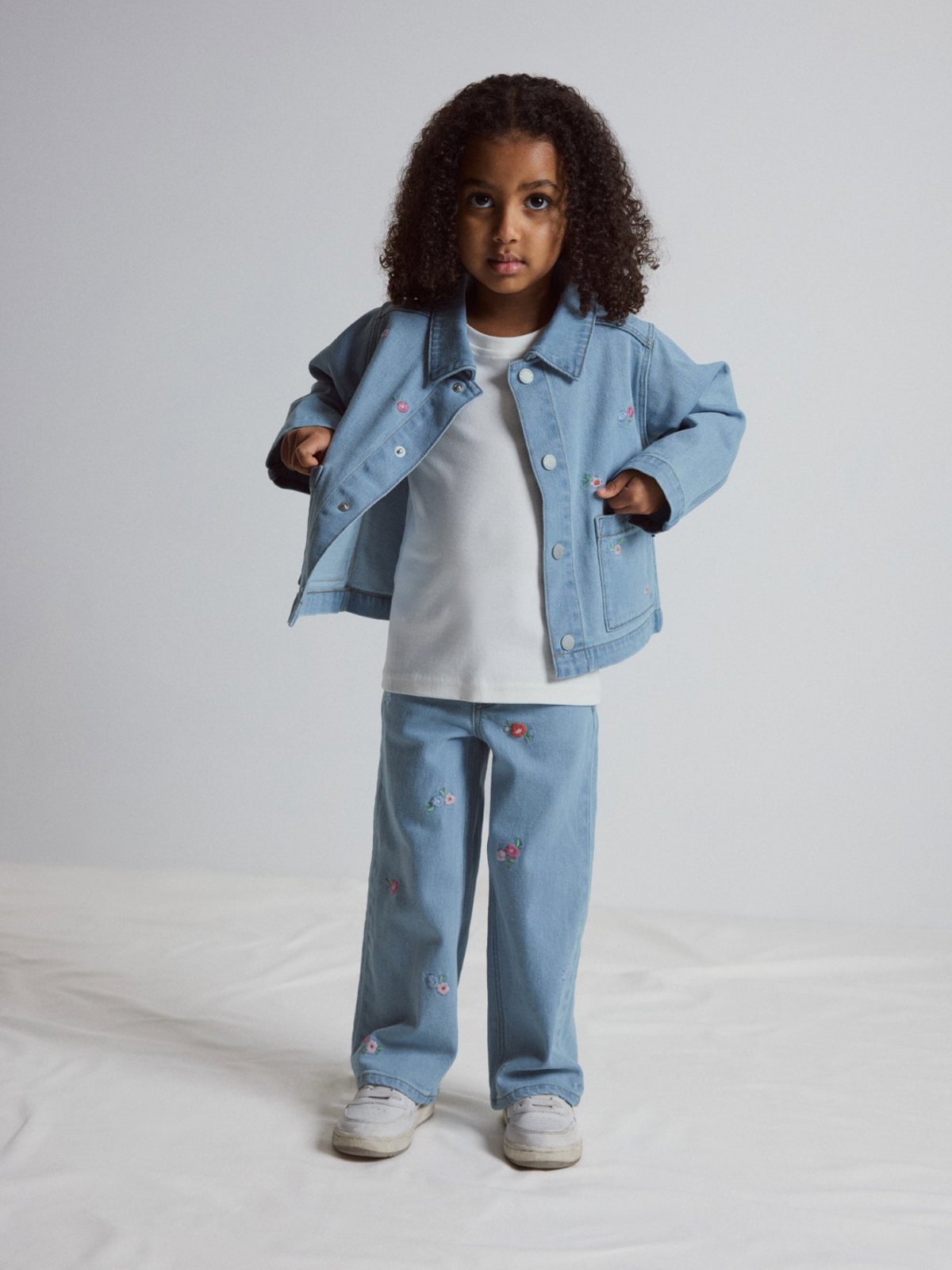 Our stylish SALLY jeans, made in soft denim fabric with cute embroidery. Play-friendly jeans with wide legs and a high waist. All our jeans have been made from GOTS-certified cotton since Spring 2022.