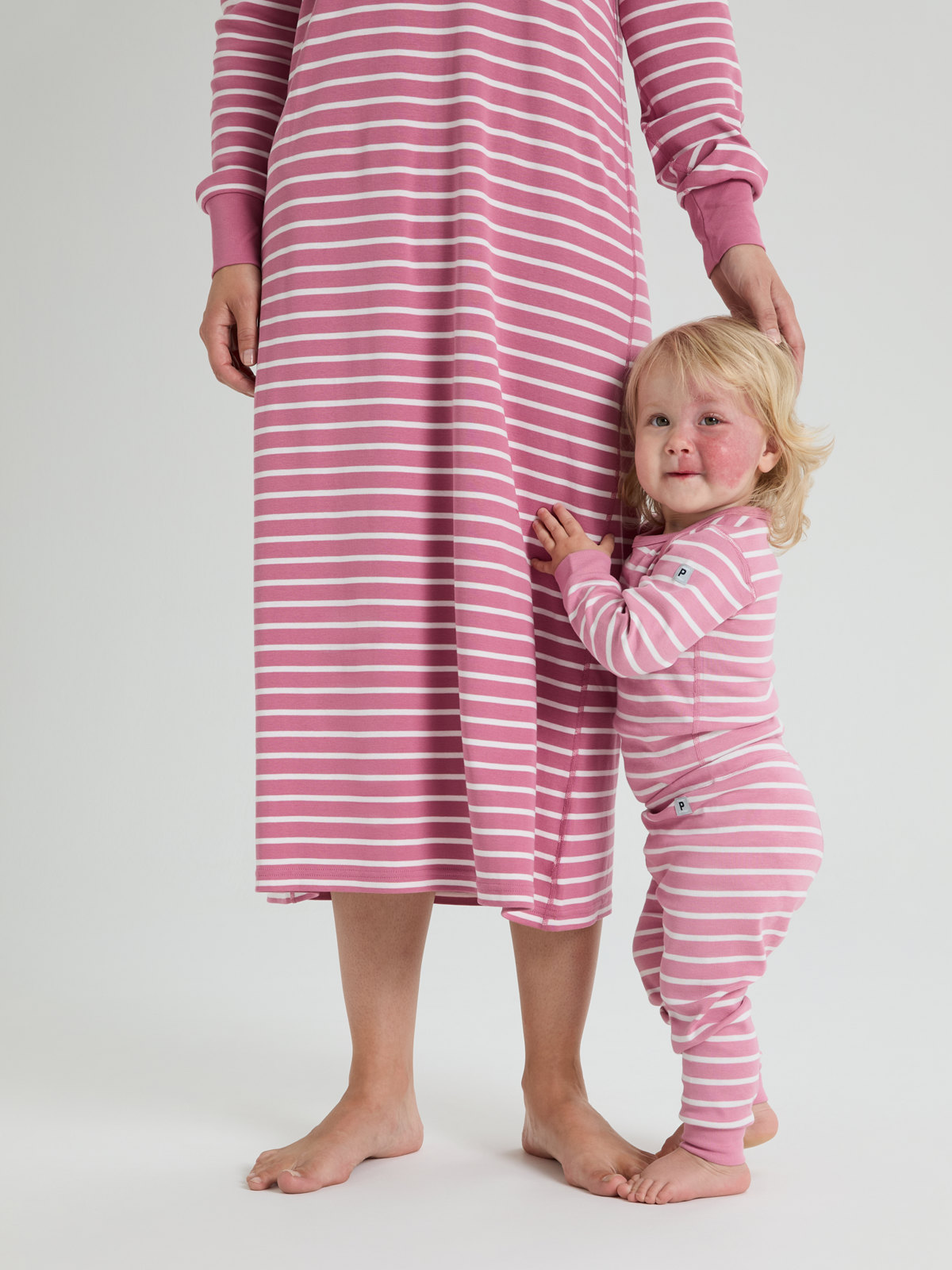 The pants feature our classic stripes, and an elastic waist that is adjusted on the inside with buttonhole elastic.