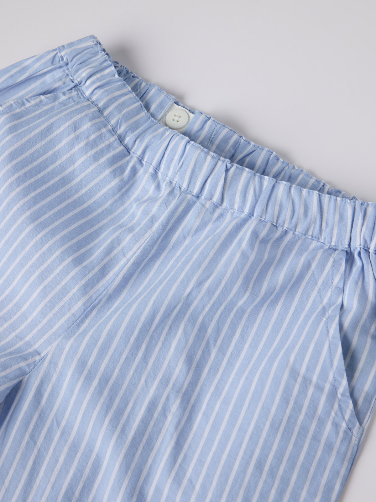 Striped pants in thin and soft organic cotton poplin – a must-have for both end-of-school and summer parties! The pants feature wide legs with a nice drape, an elastic waist and two front pockets.