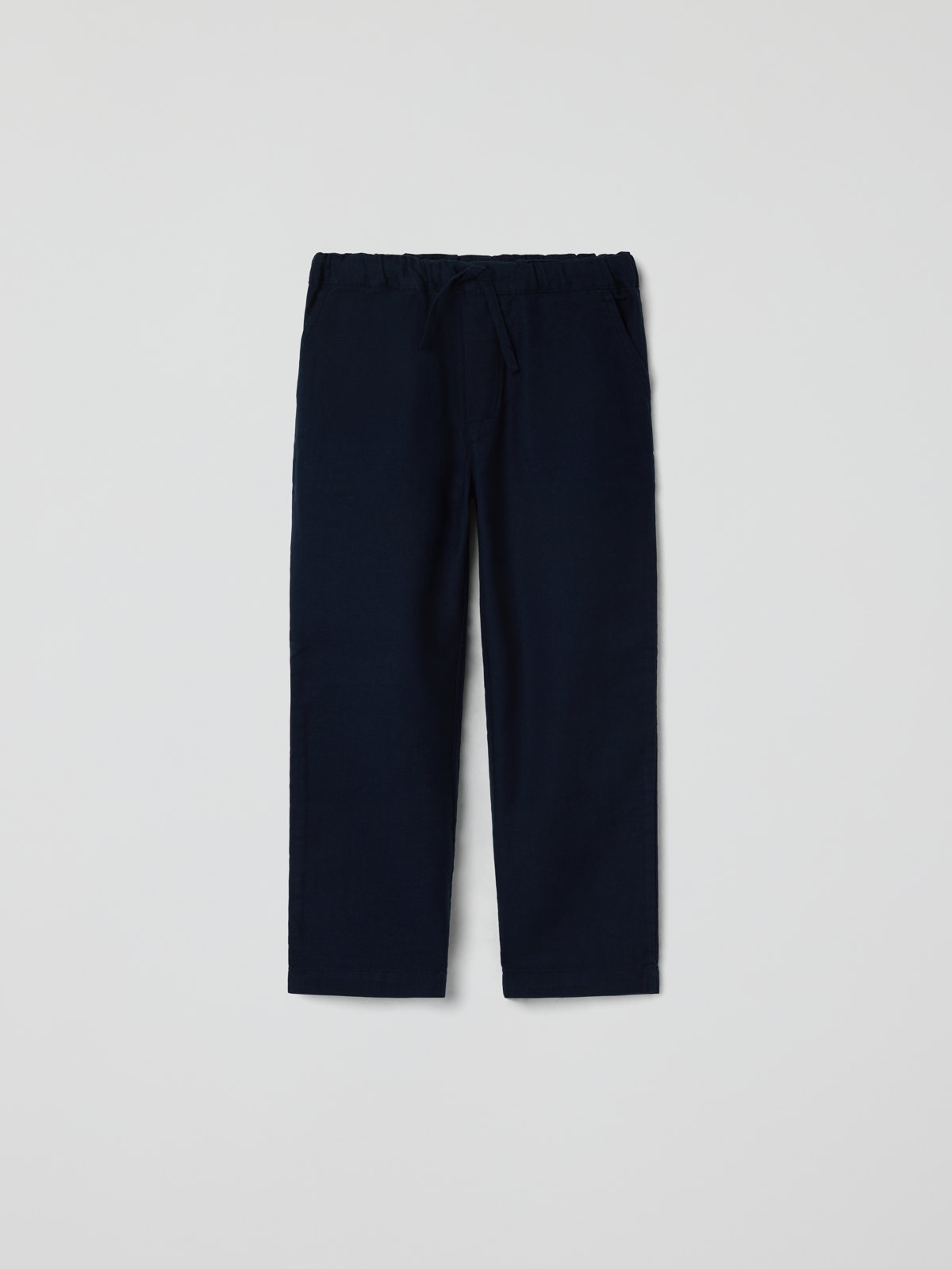 Lightweight trousers in soft organic cotton with a linen feel – perfect for both everyday adventures and special occasions! The trousers feature straight legs, an adjustable elastic waistband with a drawstring, and two front pockets.