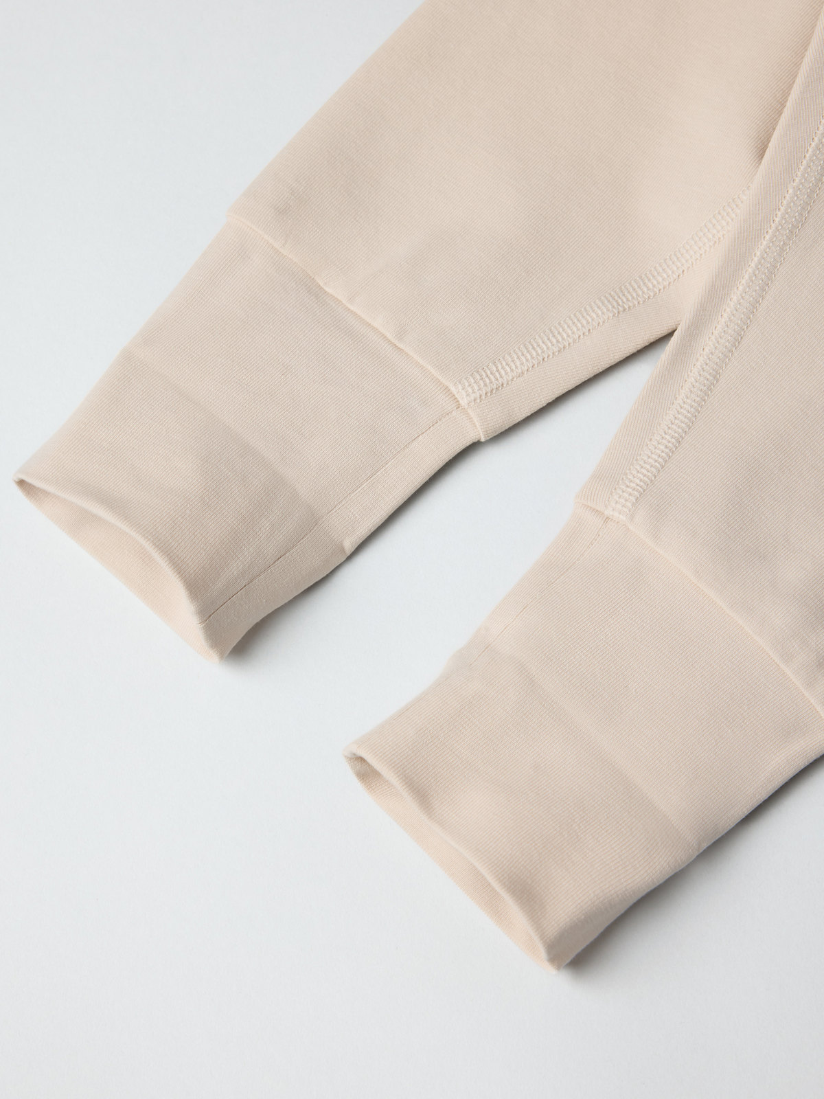 Soft and comfy pants that grow with the baby, thanks to the extra-long cuffs at the waist and ankles that can be folded up or down. The pants are made of 100% organic cotton and have extra-soft seams that are gentle on delicate skin.