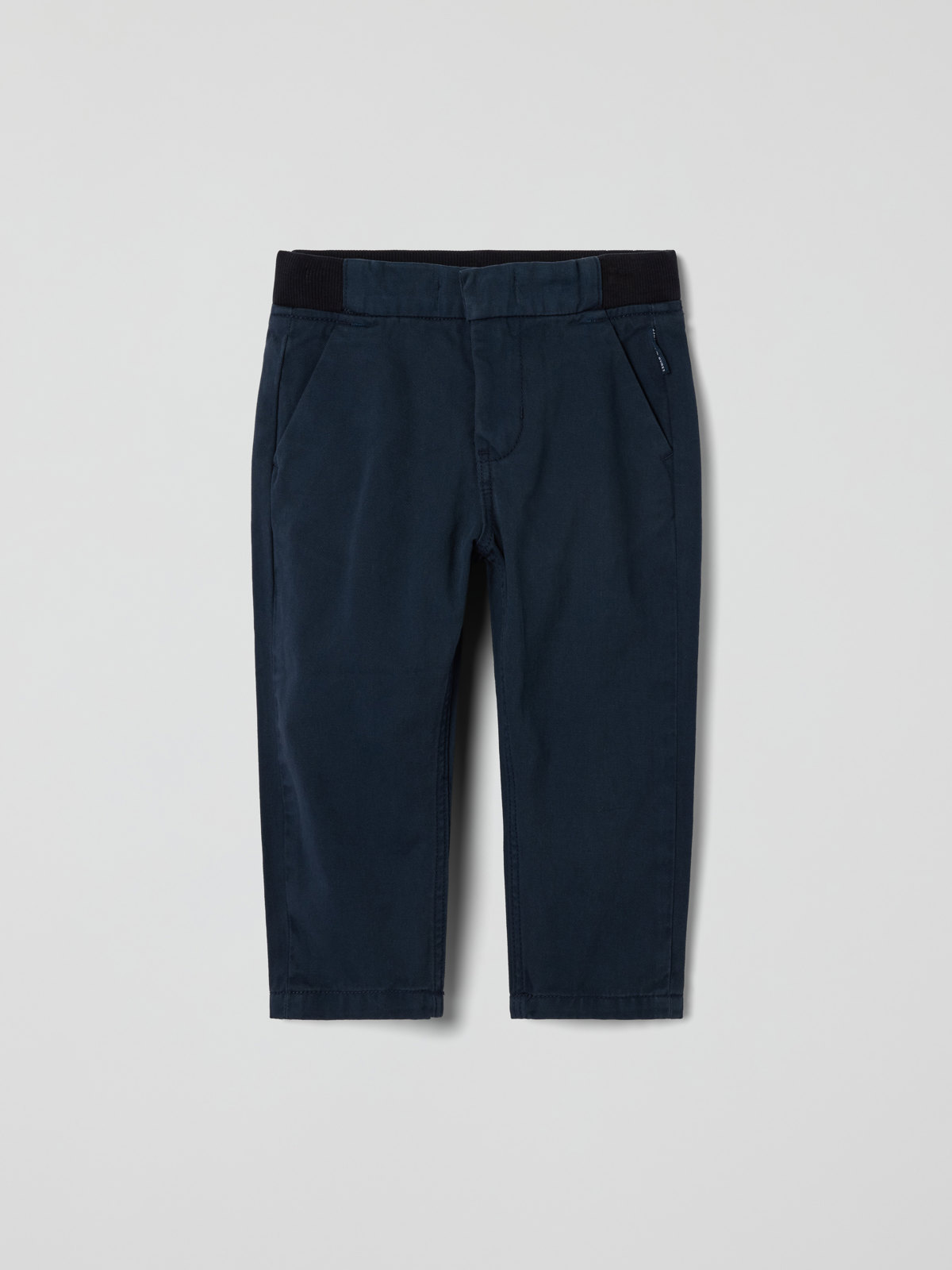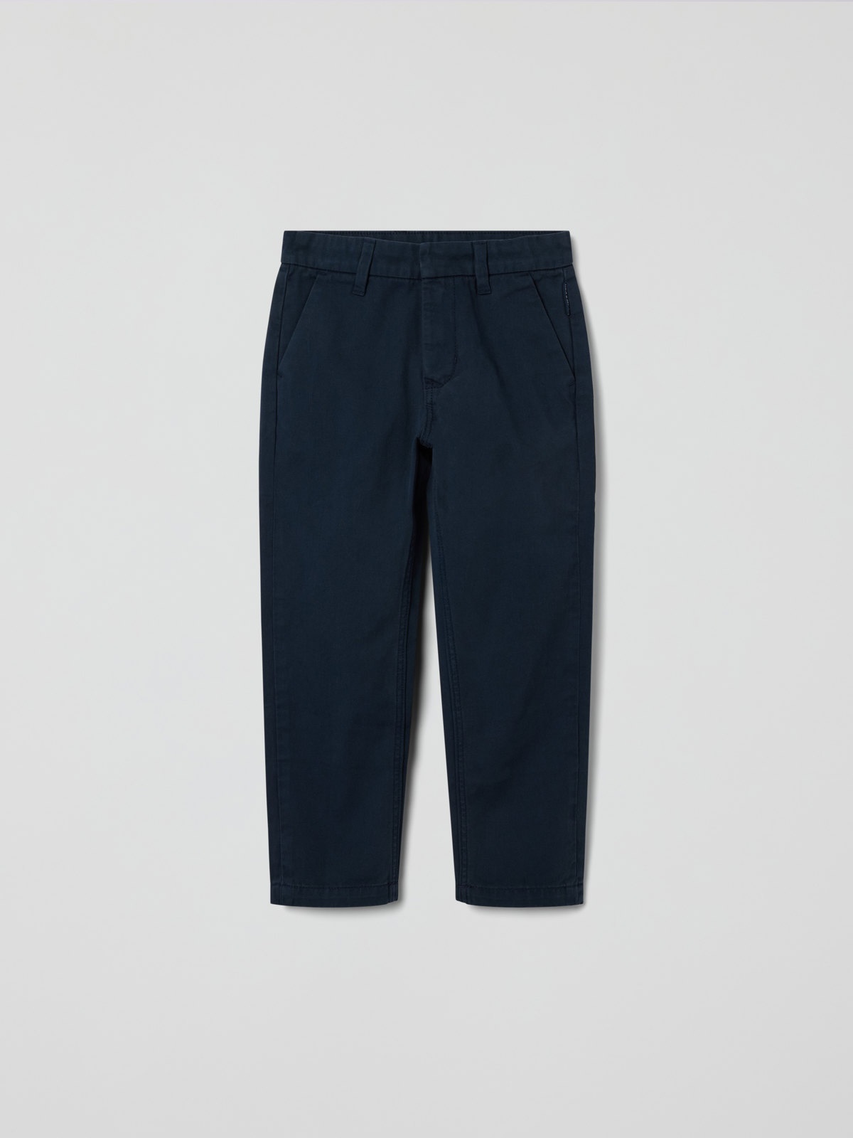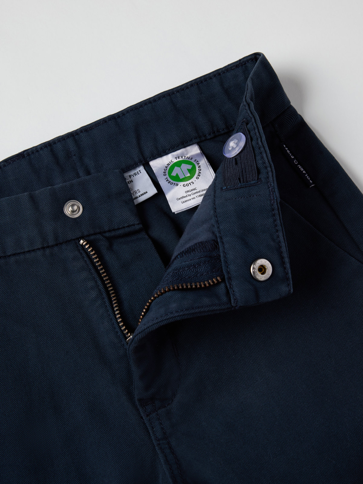 Chinos in woven organic cotton – perfect for both everyday and party wear. The pants have two front pockets and a back pocket, and an elastic waist that is adjusted with buttonhole elastic.
