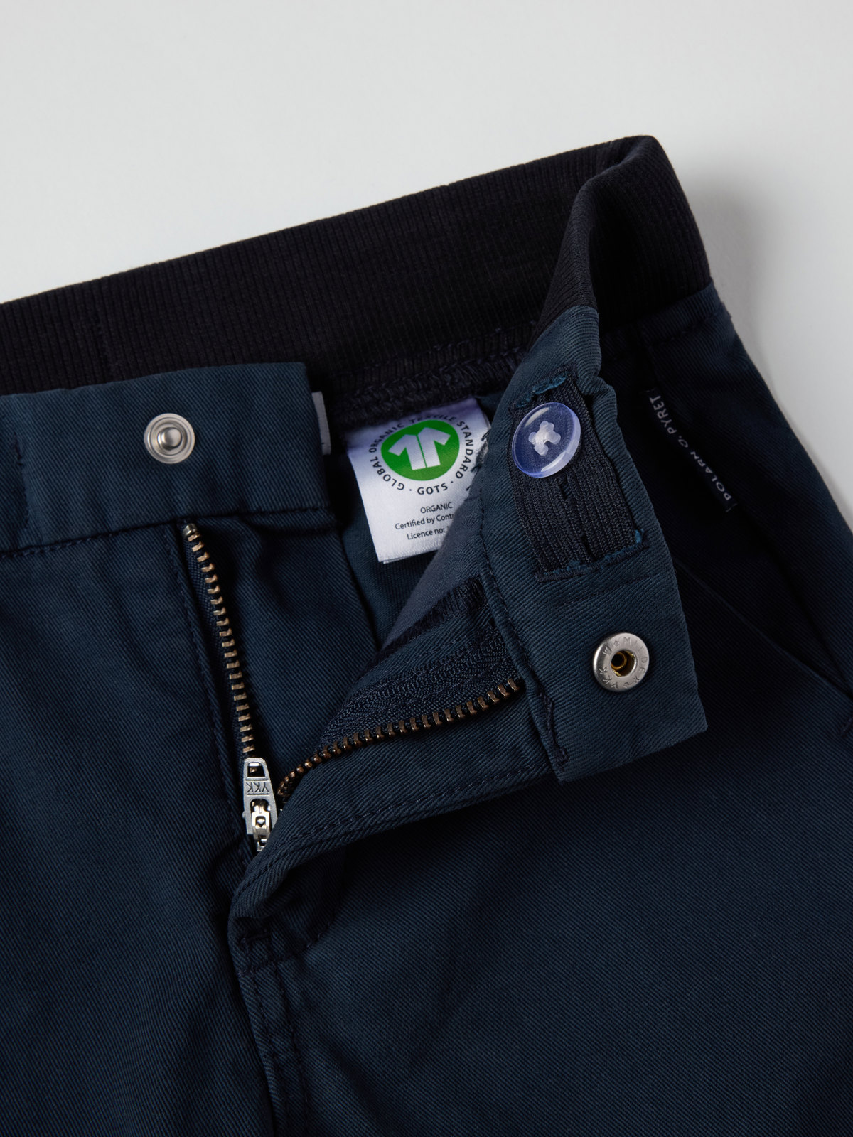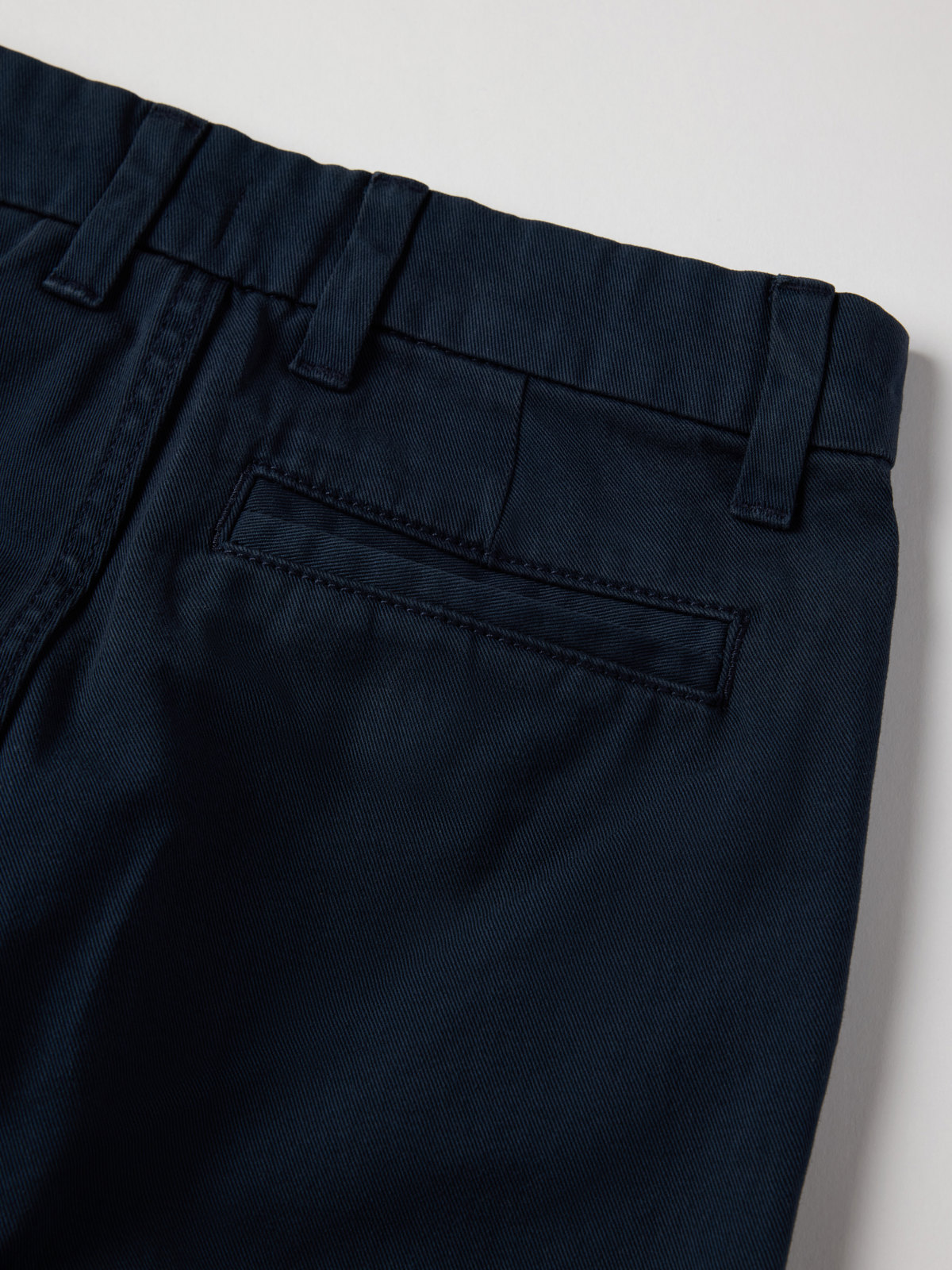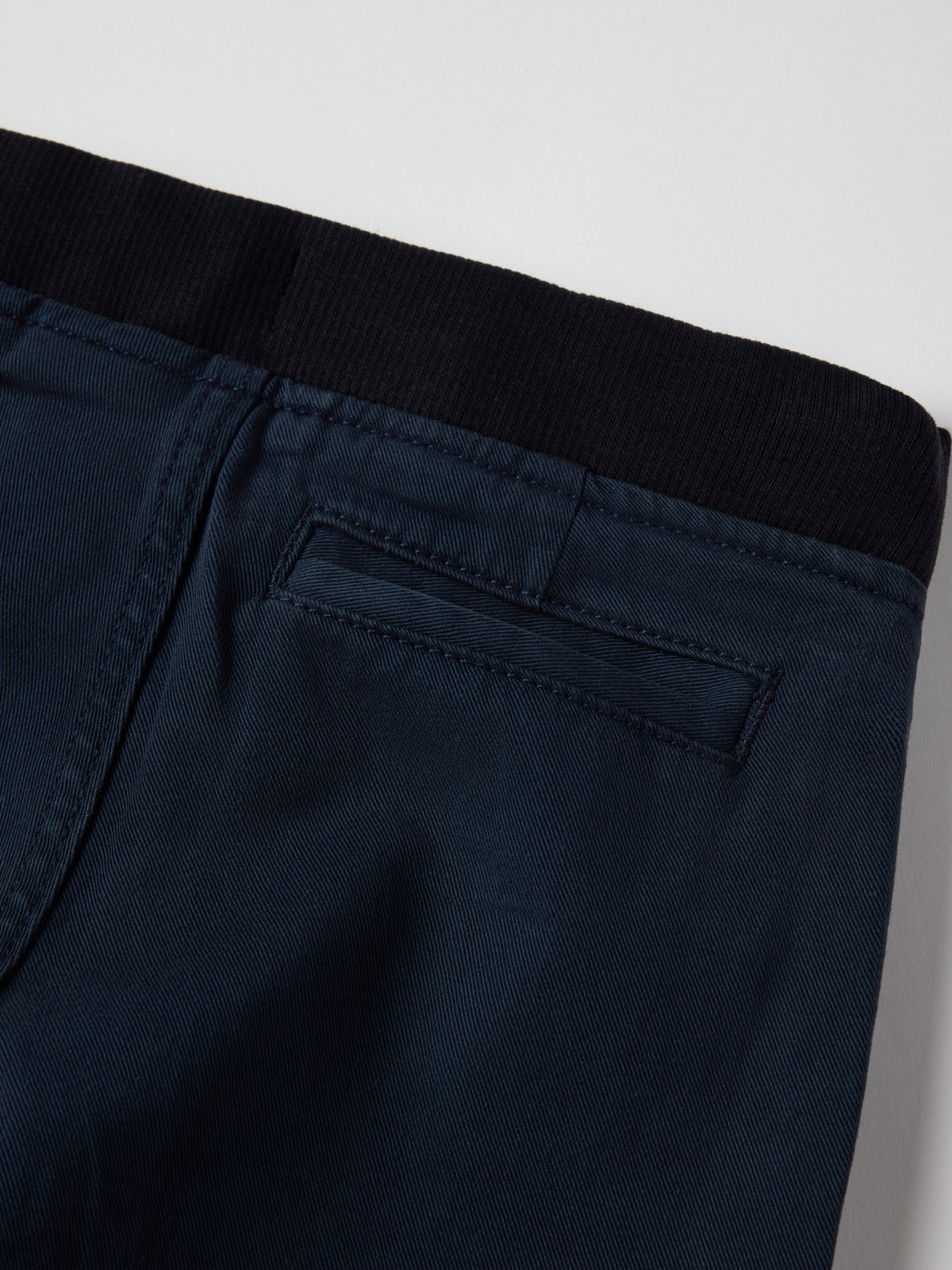 Chinos in woven organic cotton – perfect for both everyday and party wear. The pants have two front pockets and a back pocket, and an elastic waist that is adjusted with buttonhole elastic.