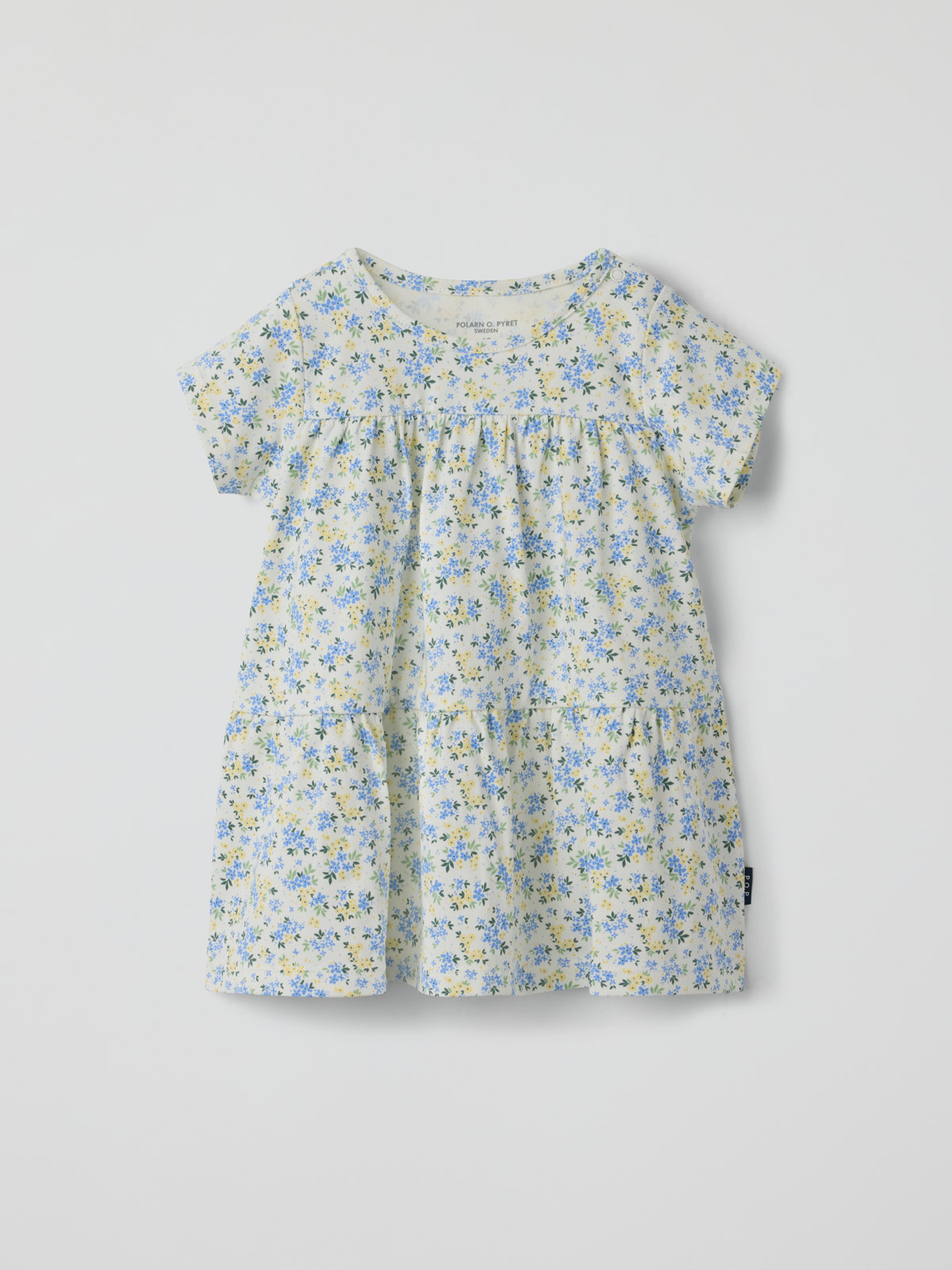 Short-sleeved dress in soft organic cotton jersey for baby – a summer favourite for both everyday adventures and special occasions! The dress features a breezy design with a gathered skirt and closes with hidden buttons on the shoulders.