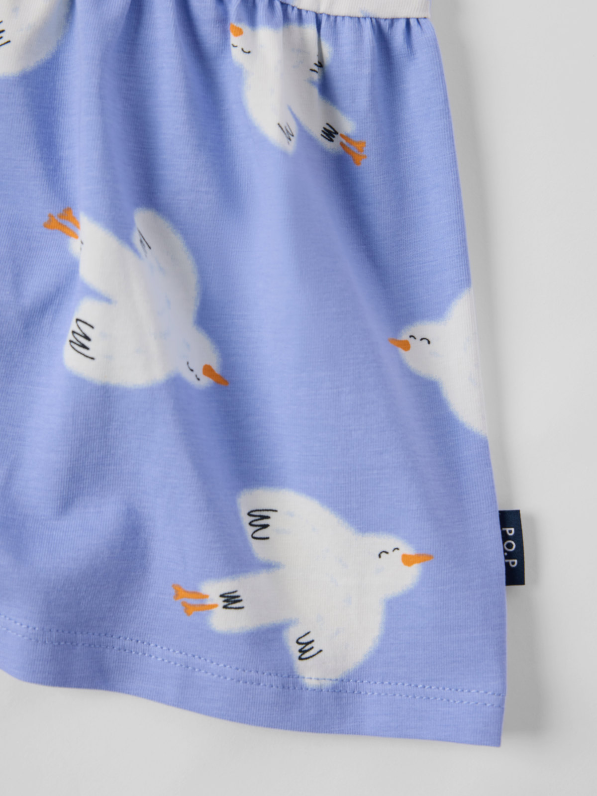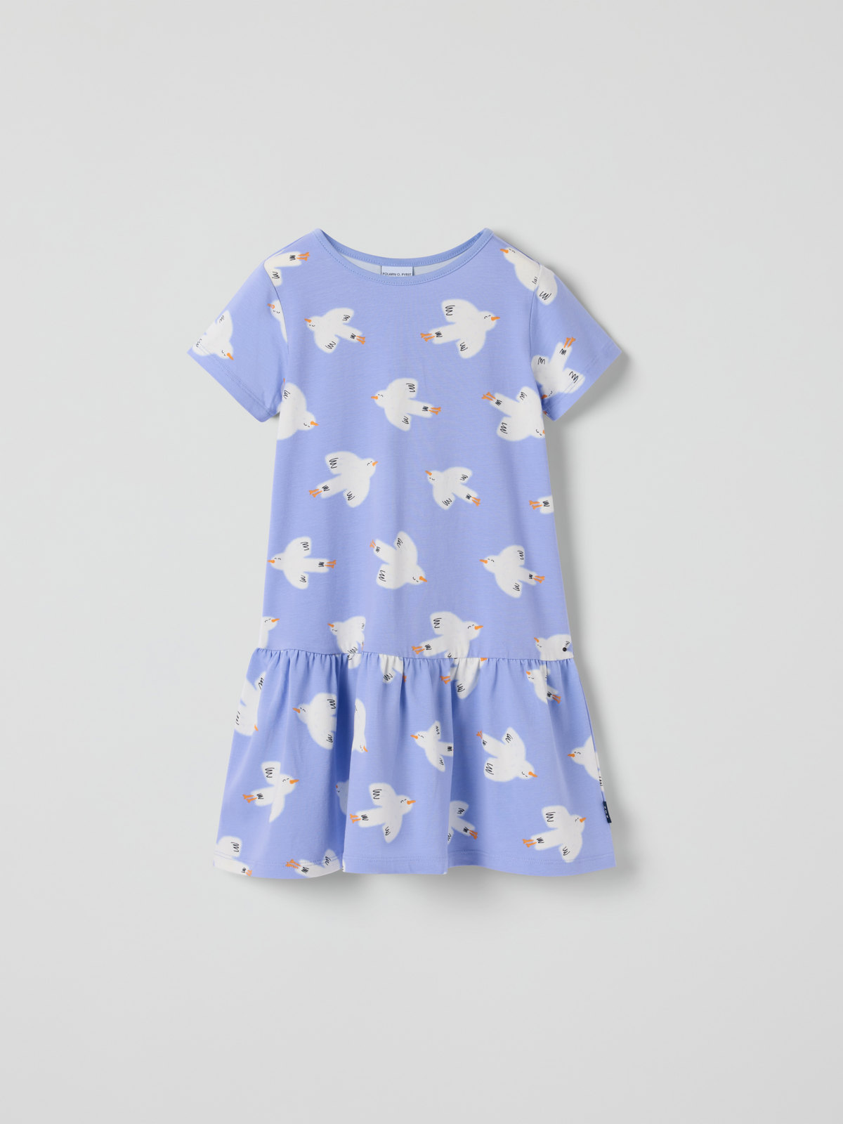 Short-sleeved dress in soft organic cotton – a summer favourite for both everyday adventures and special occasions! The dress features a low-cut waist and a gathered skirt.