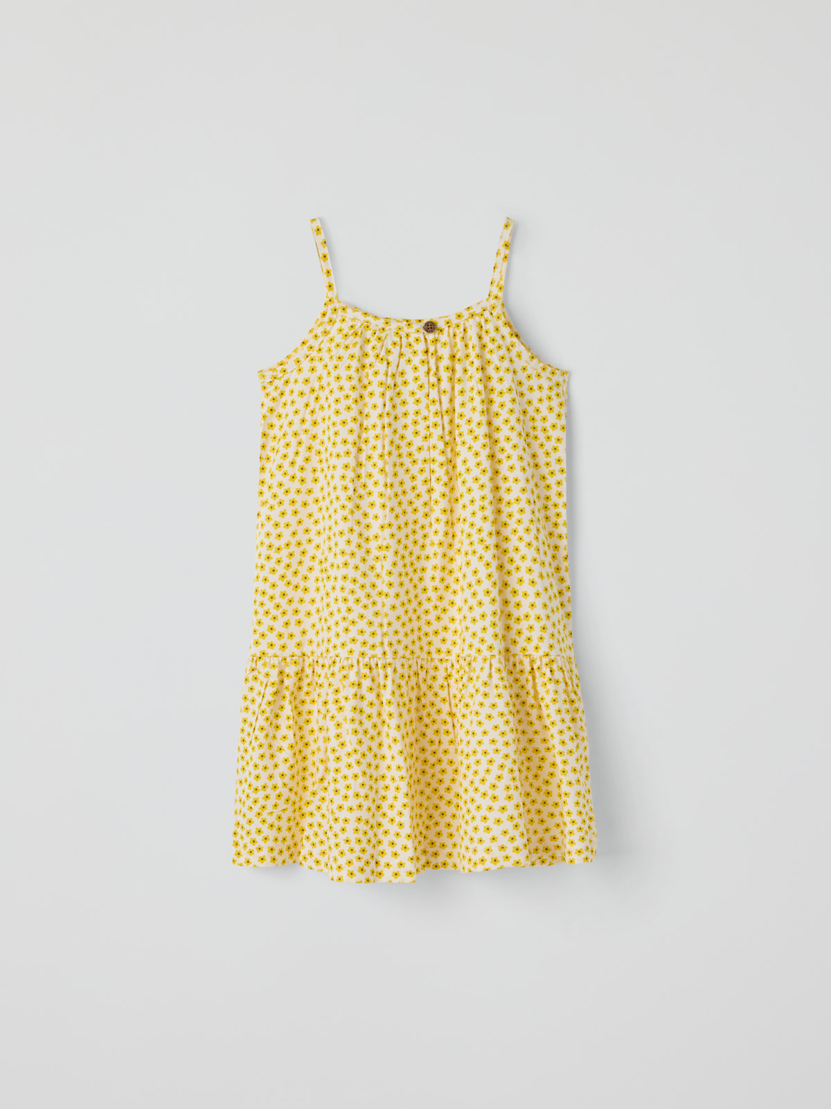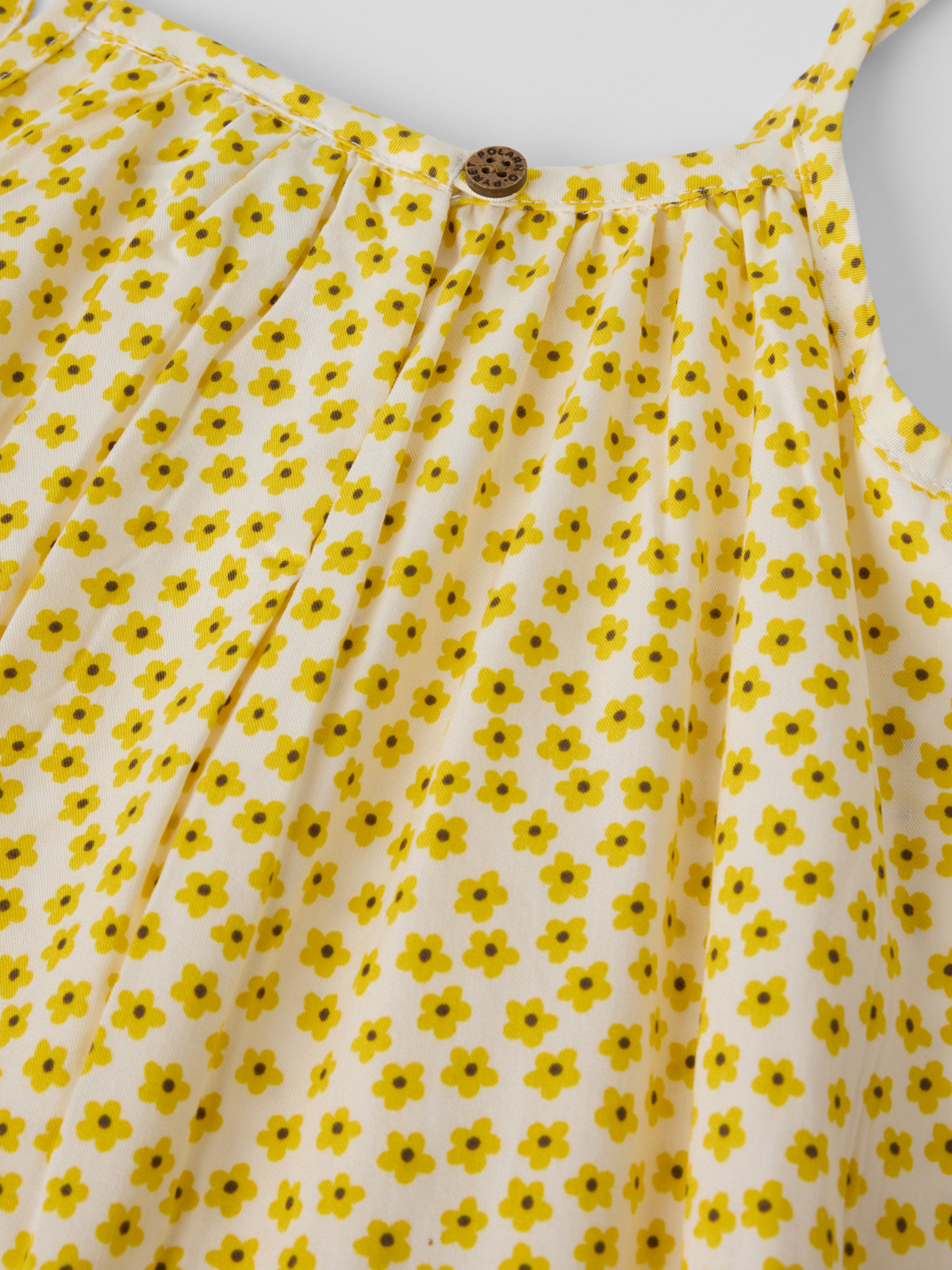 Lightweight summer dress in soft Ecovero™ Viscose jersey – just right for sunny days! Features slim shoulder straps and a gathered skirt. Perfect for sibling matching! blommig