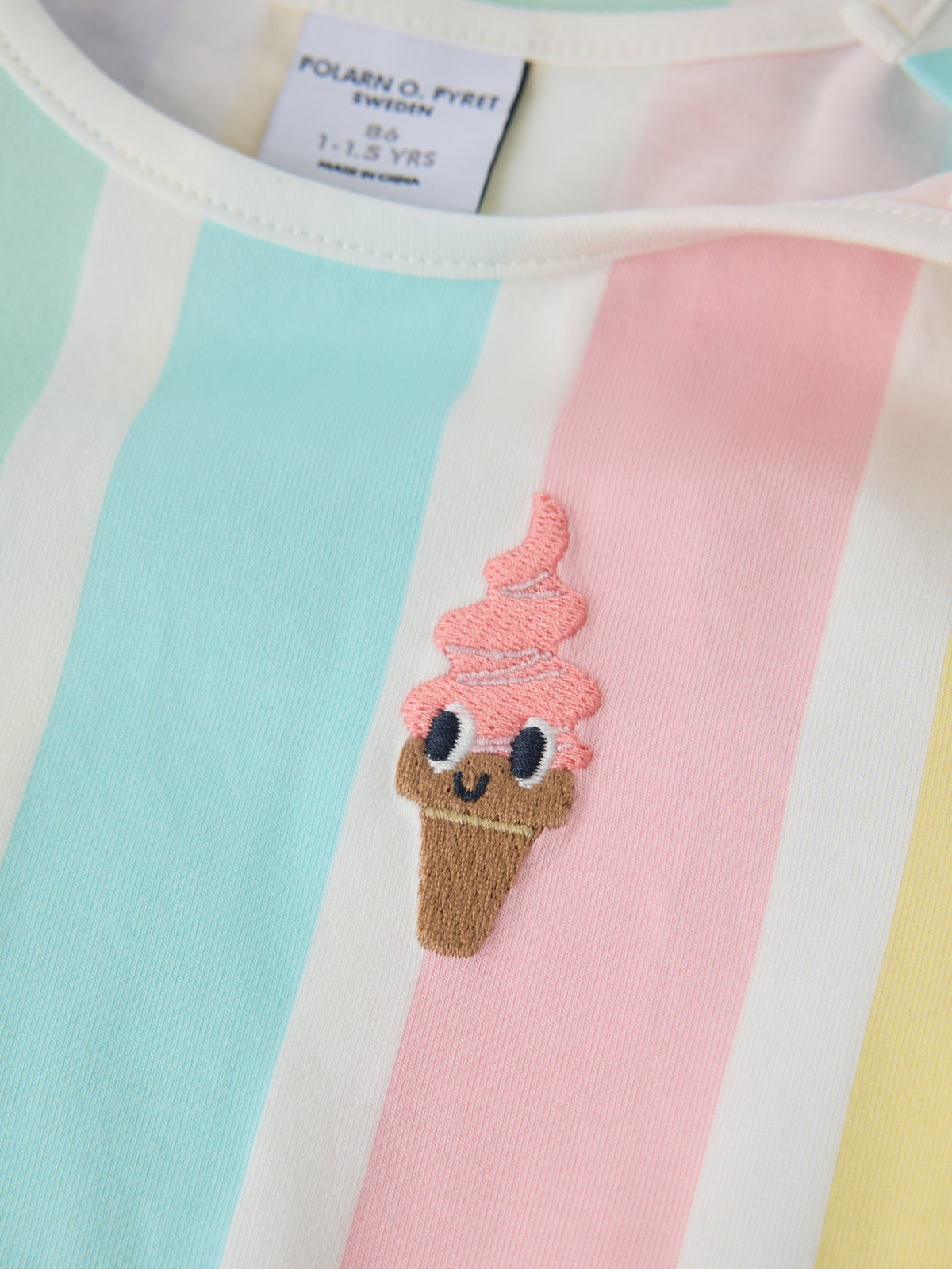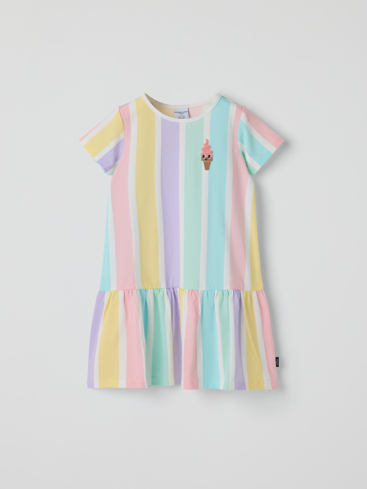 Striped short-sleeved dress in soft organic cotton – a summer favourite for both everyday adventures and special occasions! The dress features a dropped waist and a gathered skirt.
