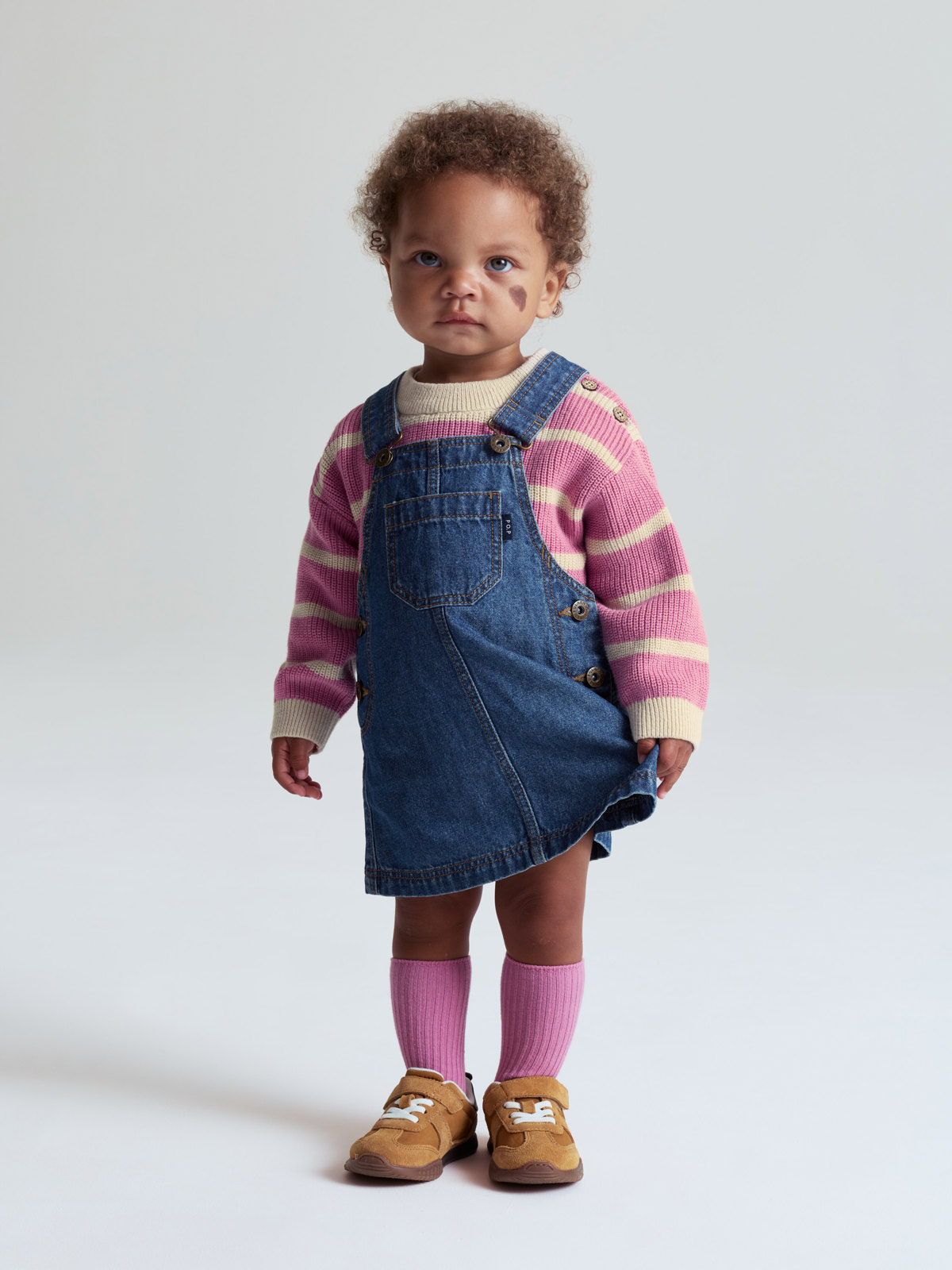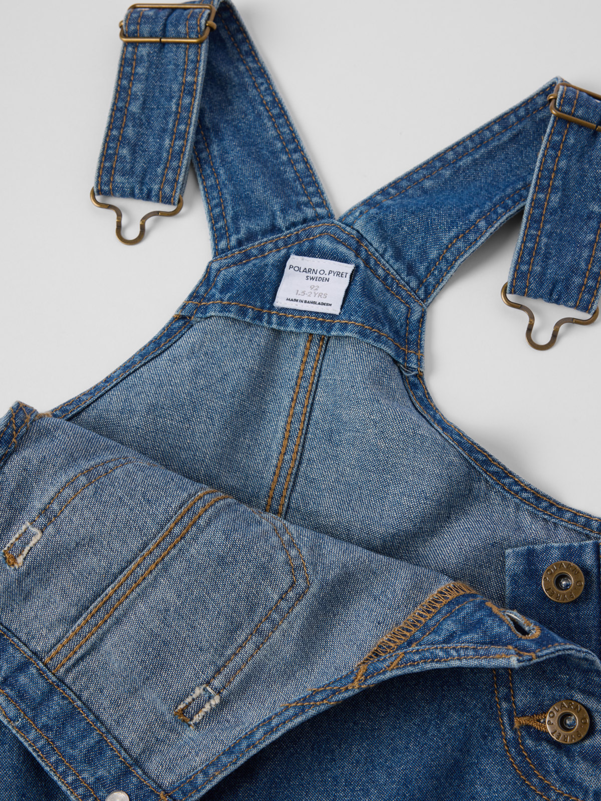 Dungaree dress in soft, lightweight denim – a true autumn favourite! The dress features adjustable straps with buckles at the front and side buttons for easy dressing. It also has a chest pocket.