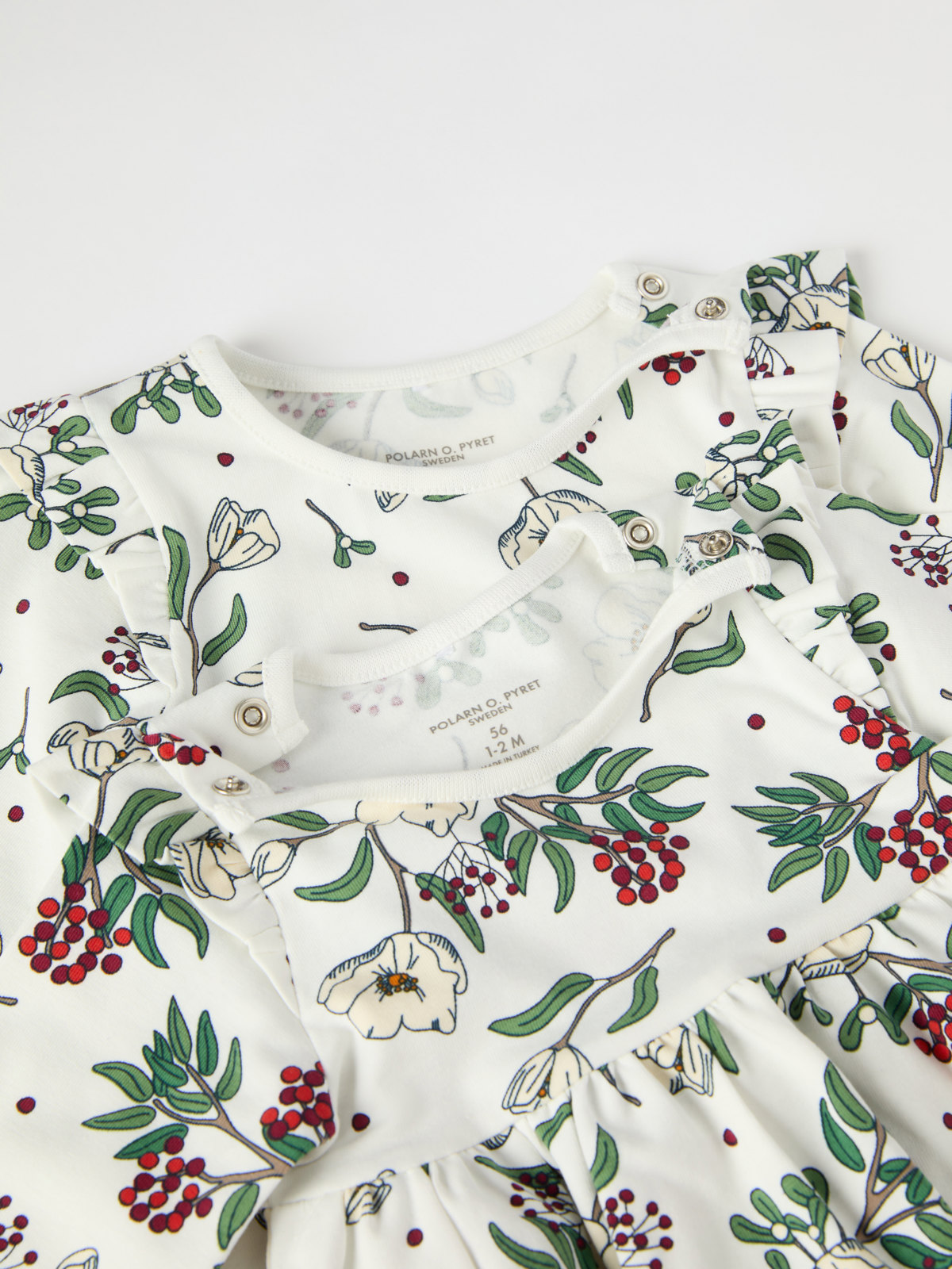 Sizes 50-62 have snaps on both shoulders.