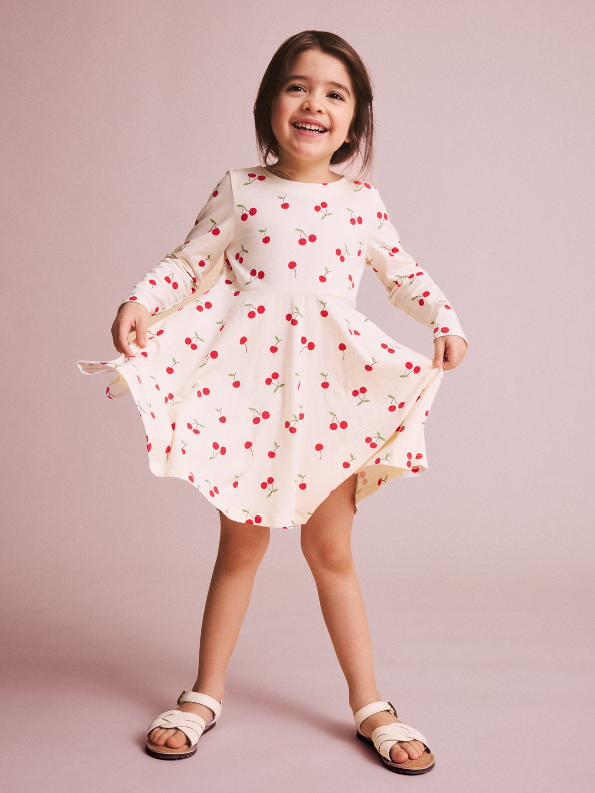 Long sleeve twirl dress cherry