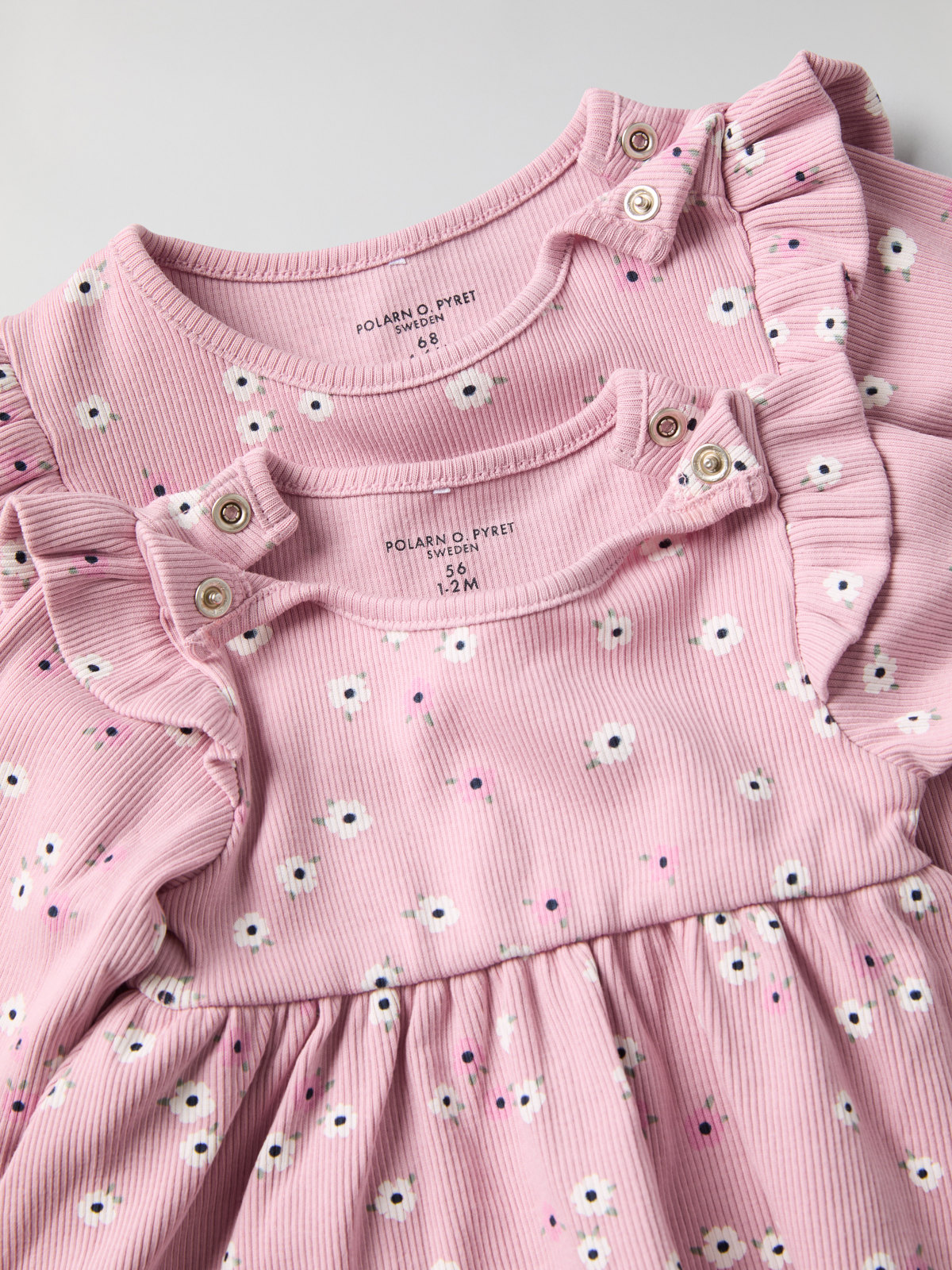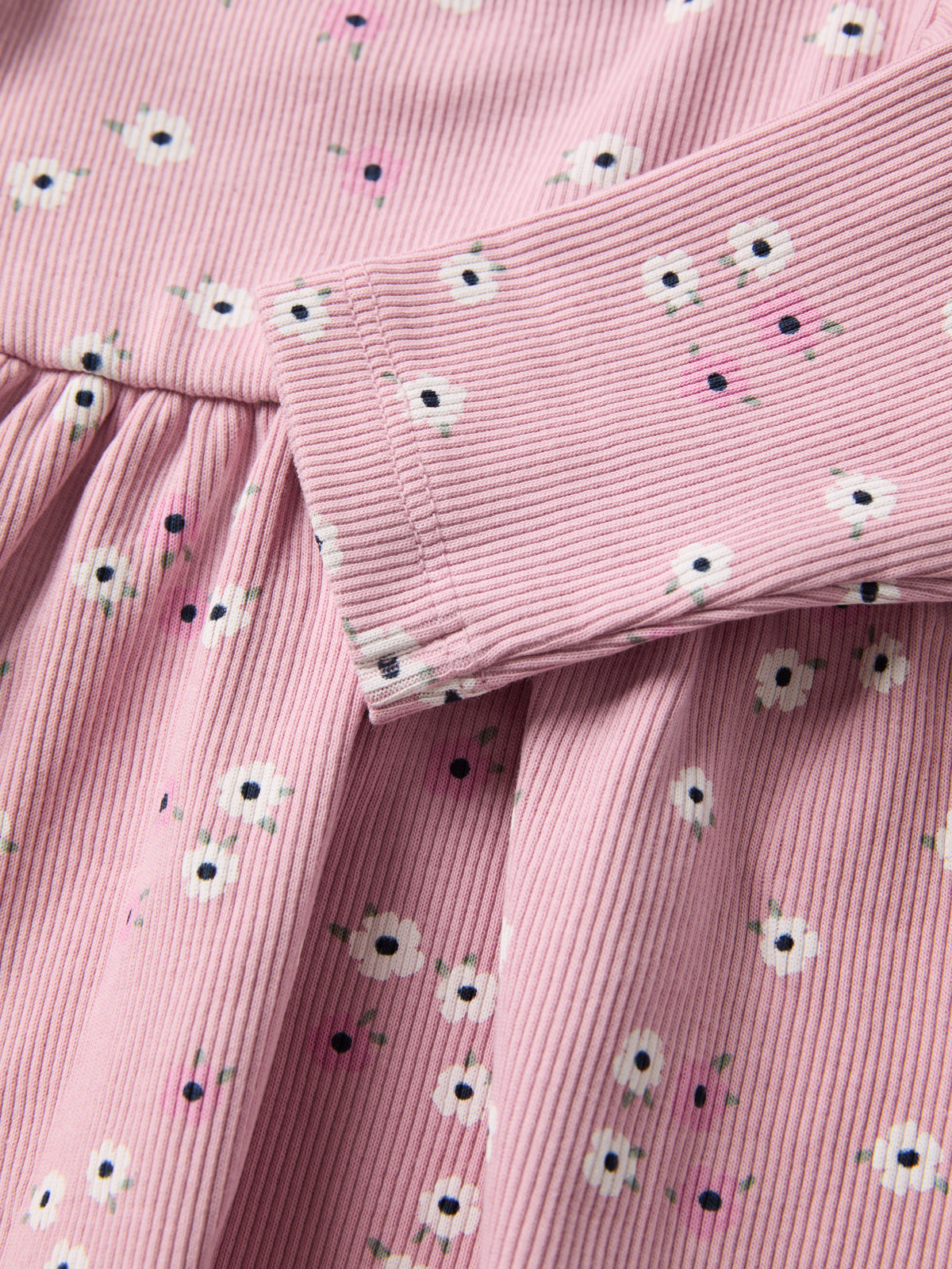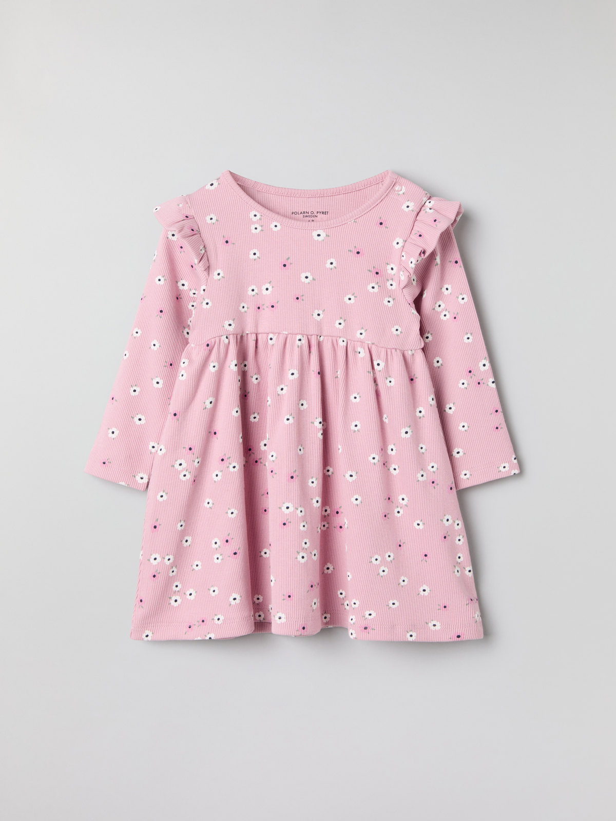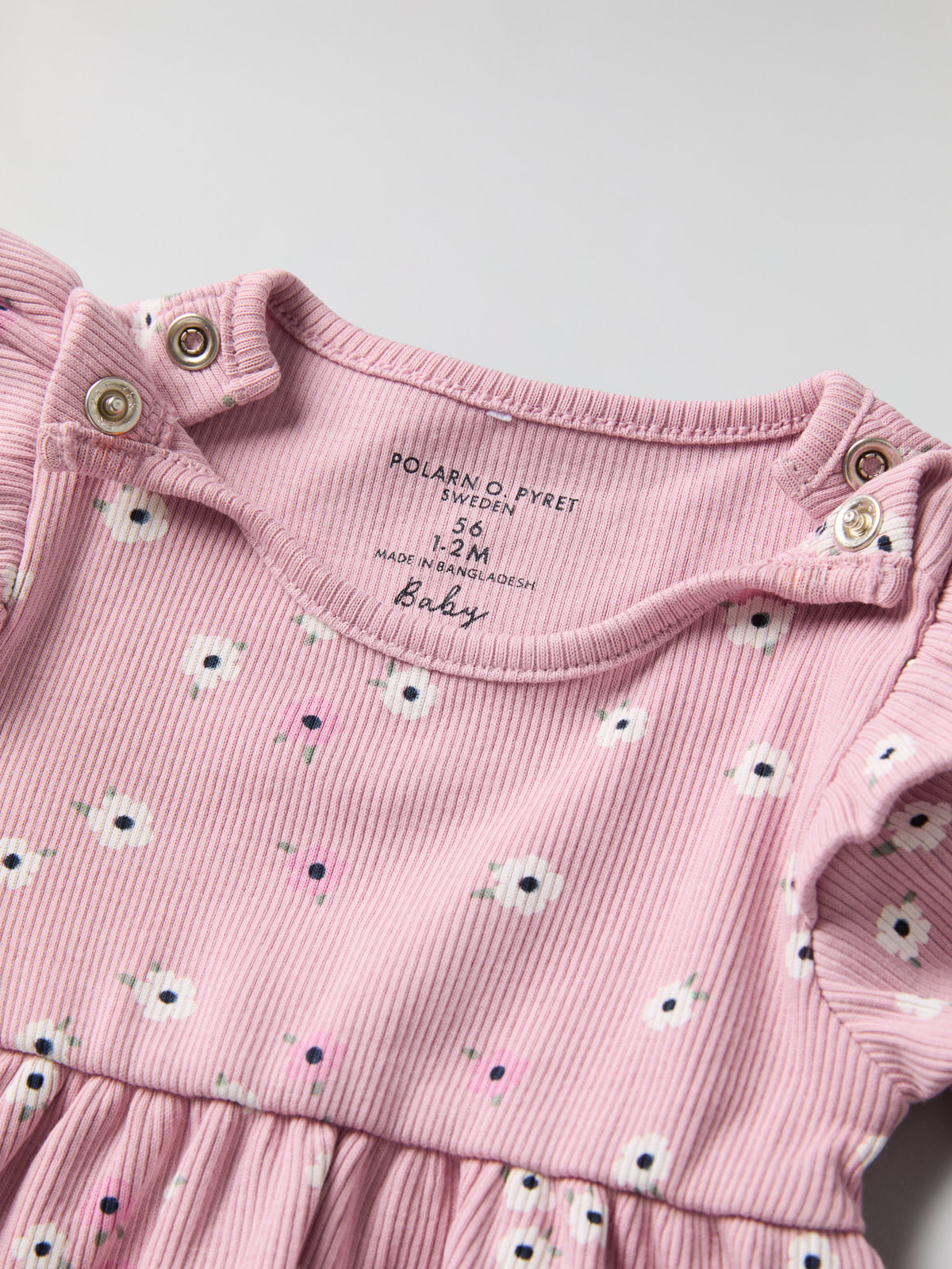 Ribbed dress in organic cotton with small ruffles over the shoulders – perfect for both everyday and party wear!