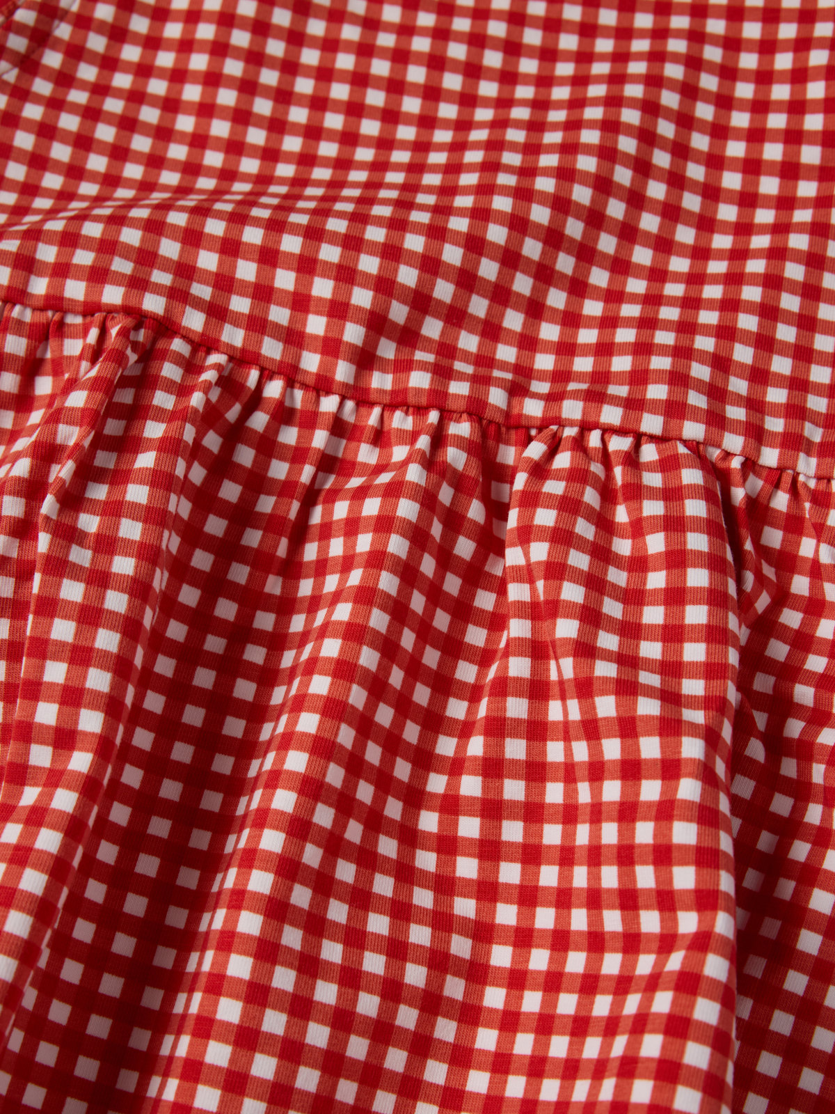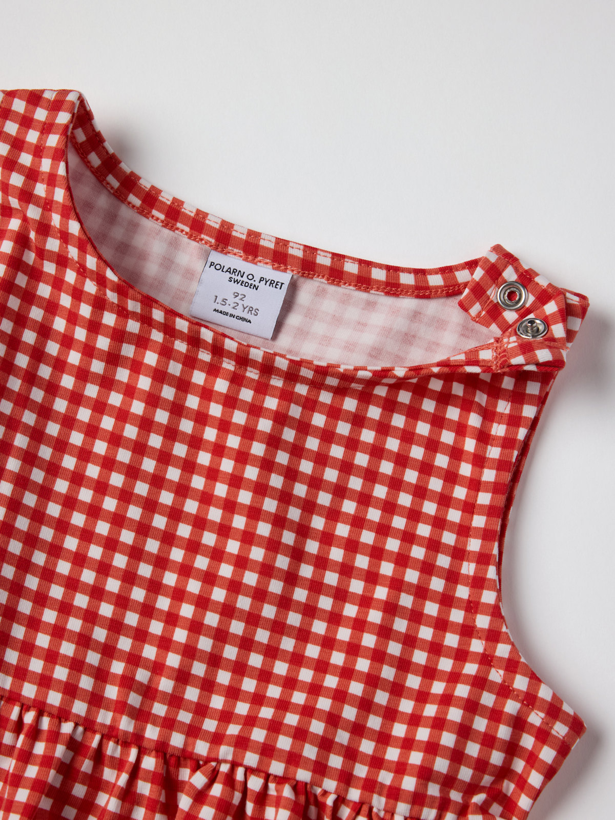 Checked sleeveless twirl dress in soft organic cotton – a must-have for the summer! The dress has a generous twirl skirt and a back placket.
