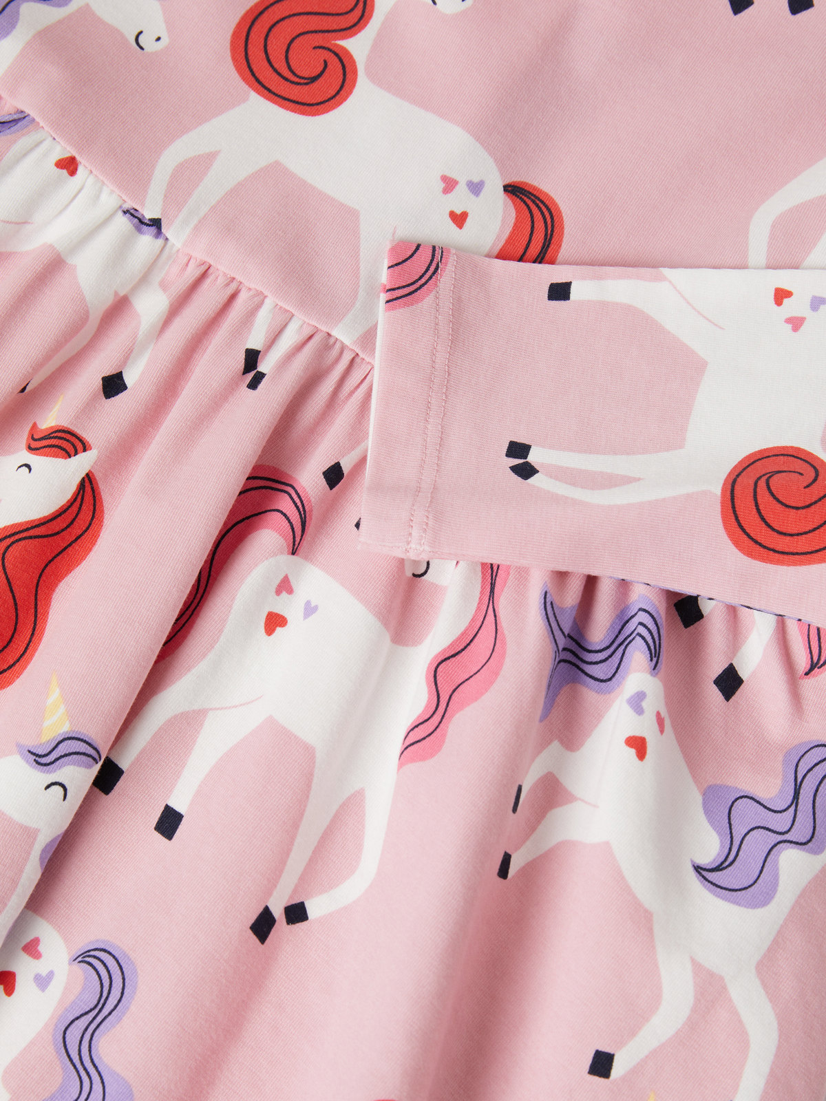 This dress is a must-have in your child's closet! It is made of soft, organic cotton jersey and features a generous twirl skirt.