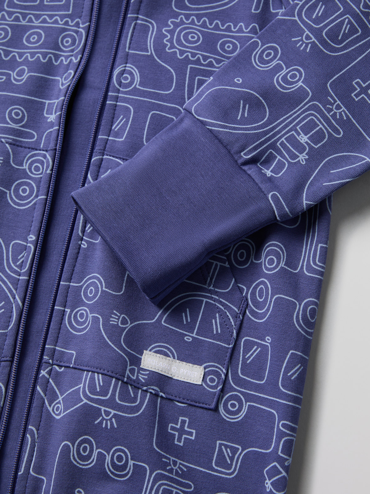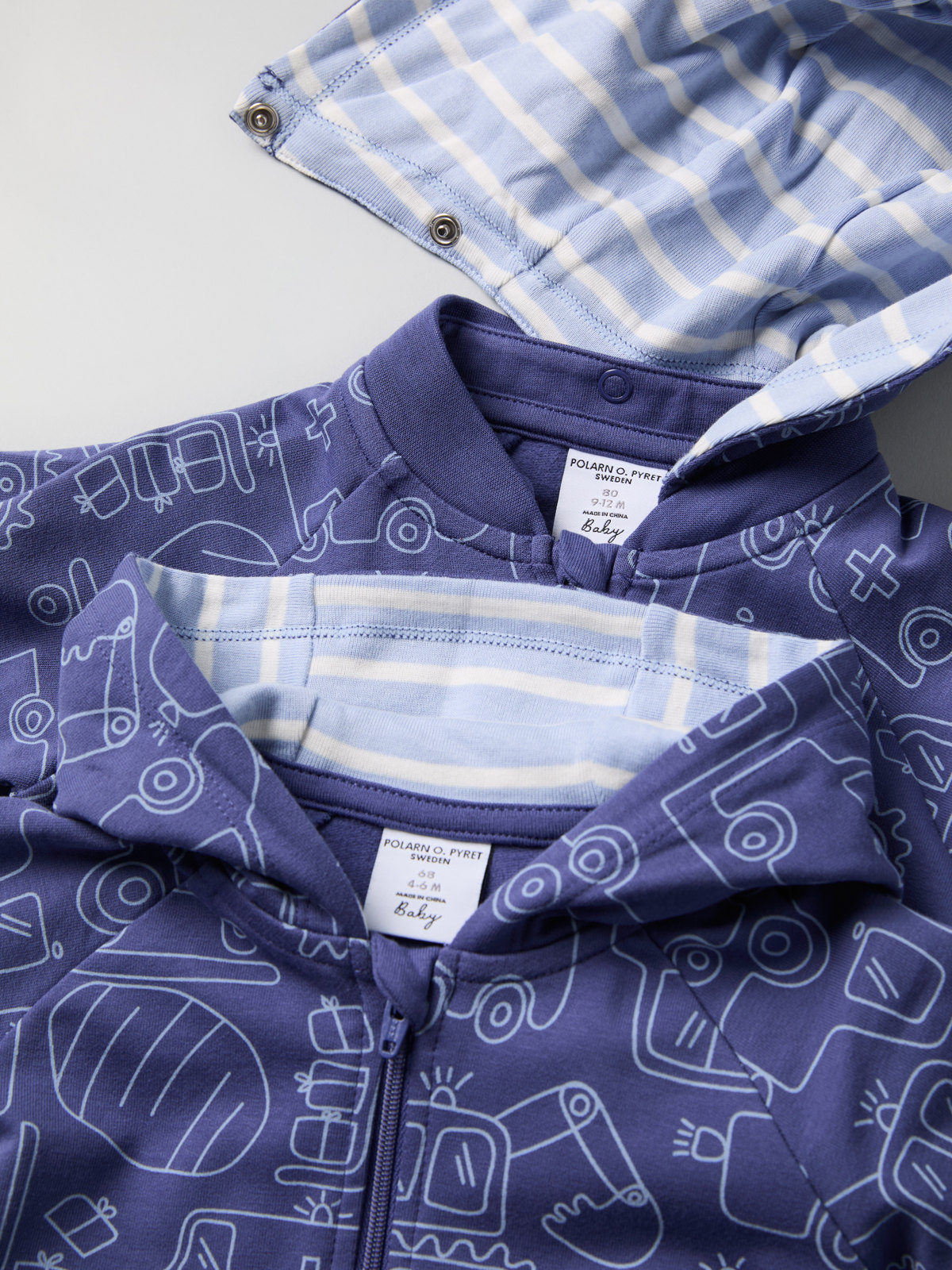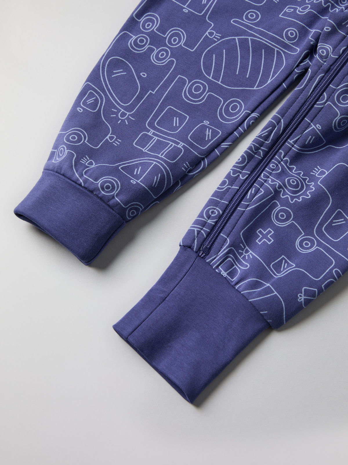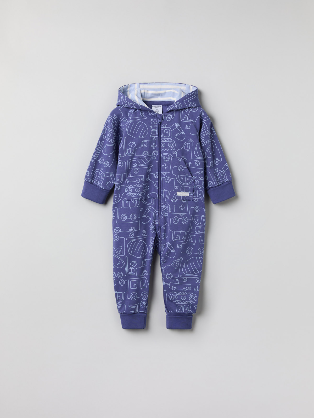 Soft all-in-one in organic cotton for baby, with a comfy sweatshirt quality and brushed inside.