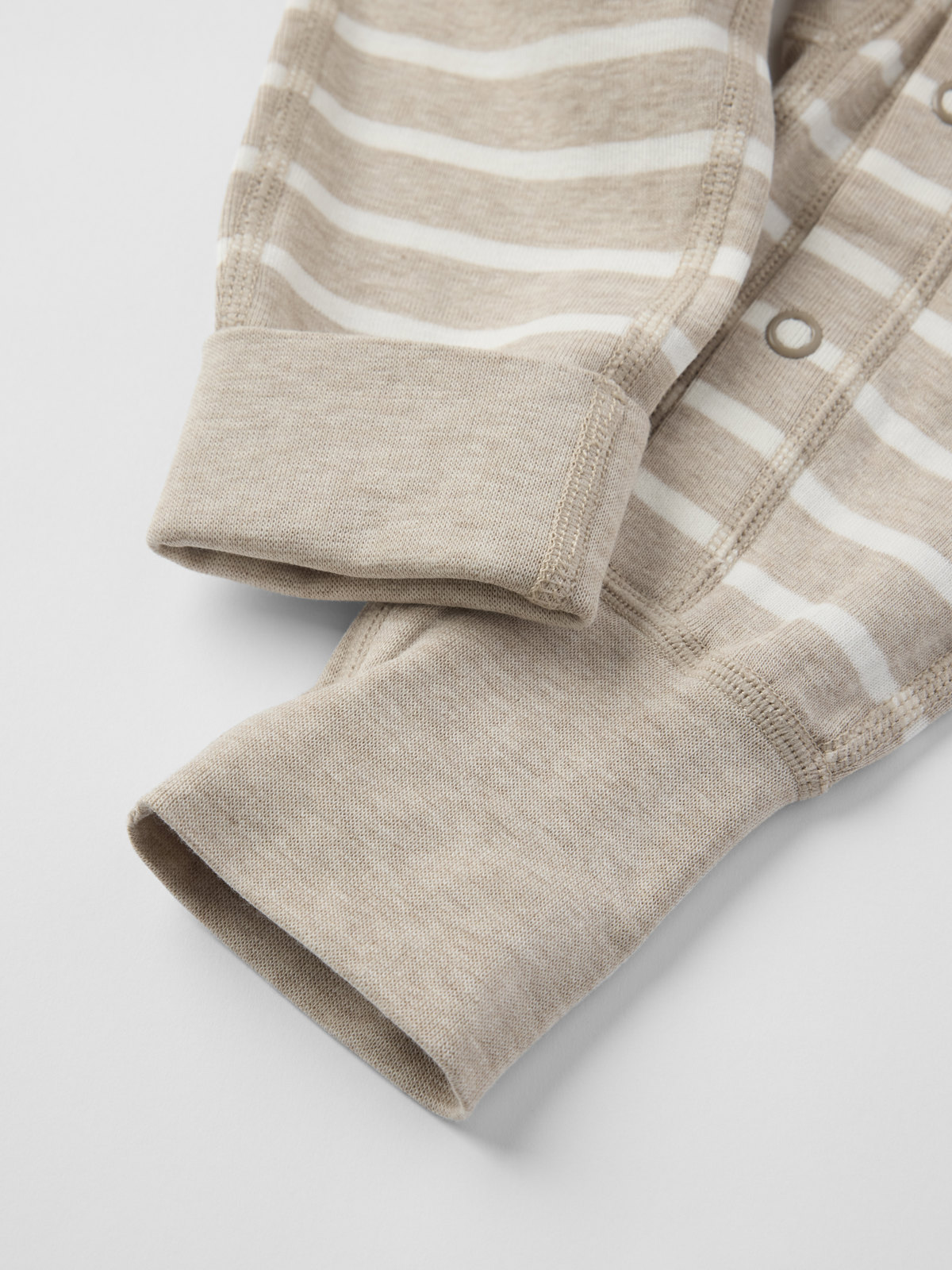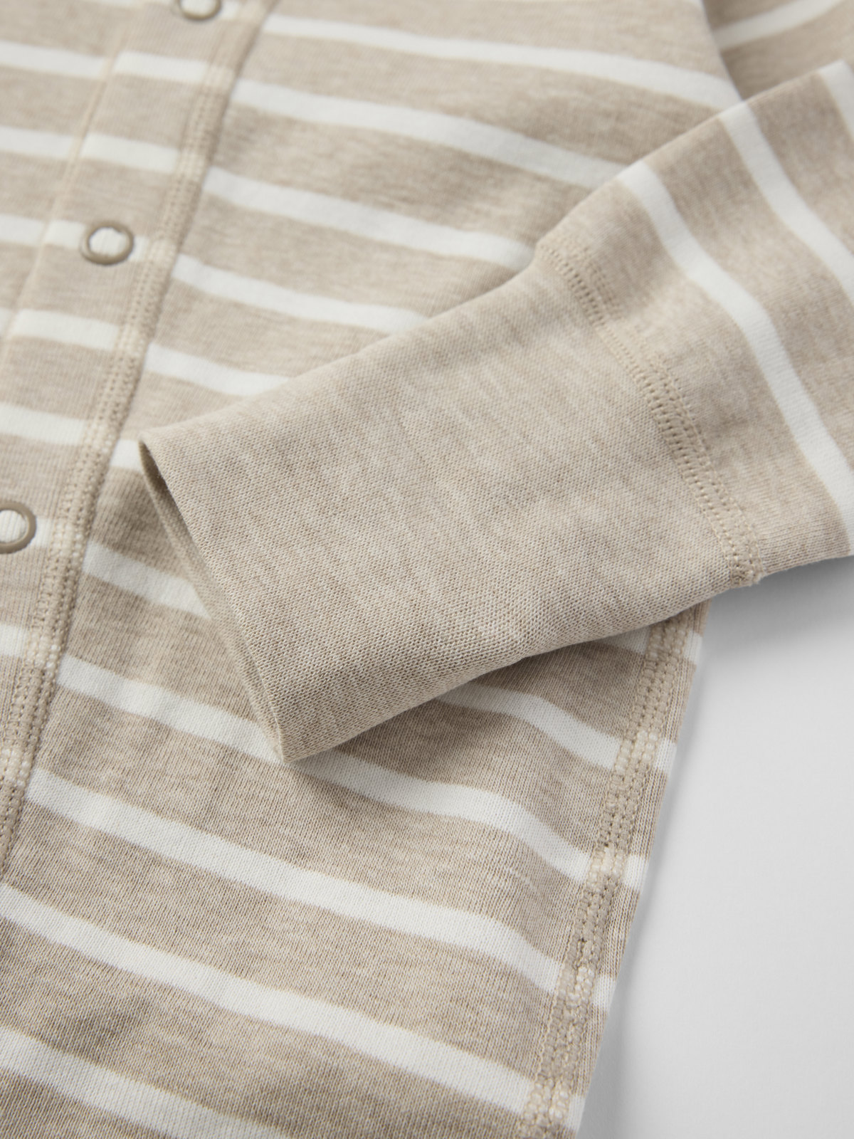 Our classic striped overall in soft organic cotton – perfect as both pyjamas and loungewear! This overall has extra-soft, flat seams that are gentle on sensitive skin. The cuffs at the sleeve and legs are extra long and can be folded down as your little one grows. The neck-to-ankle poppers facilitate dressing.