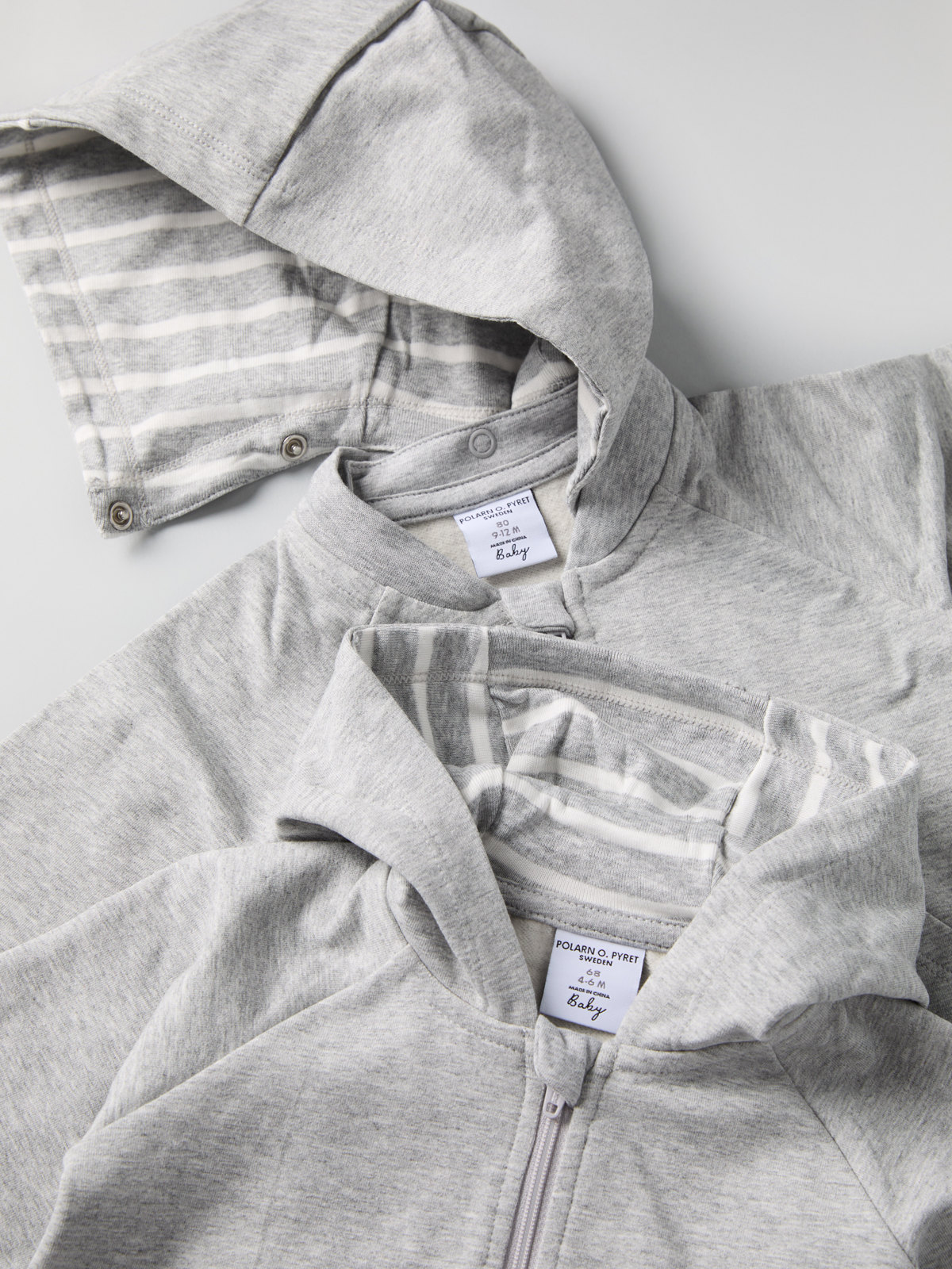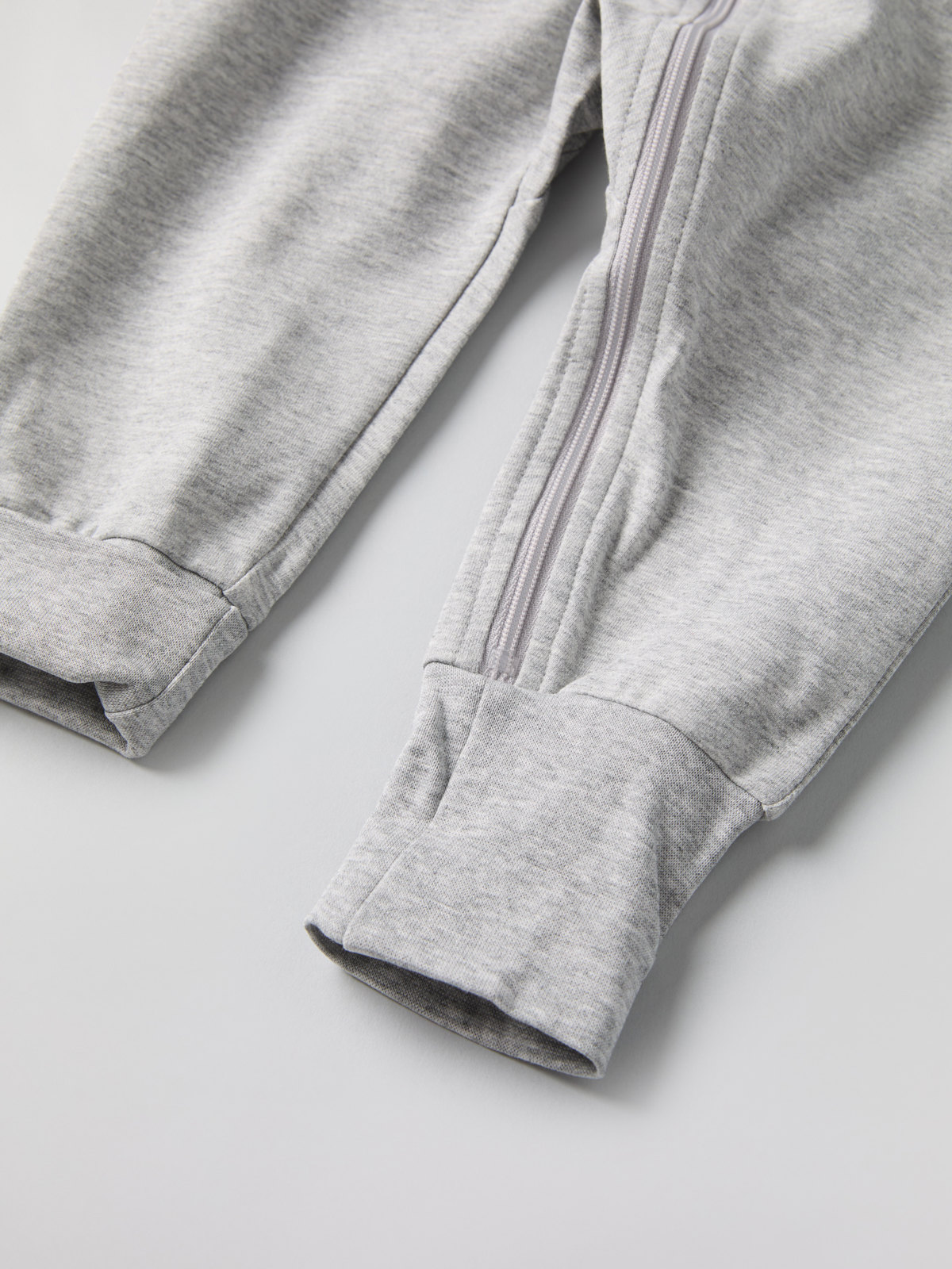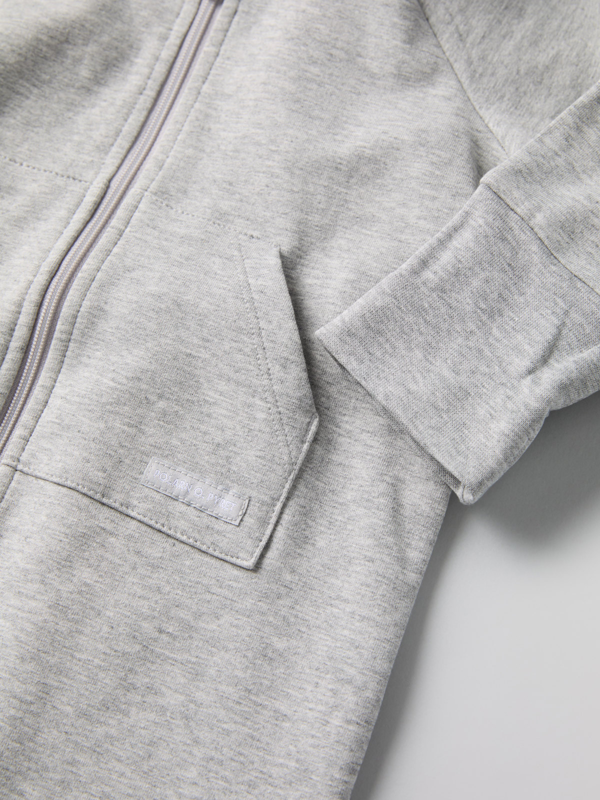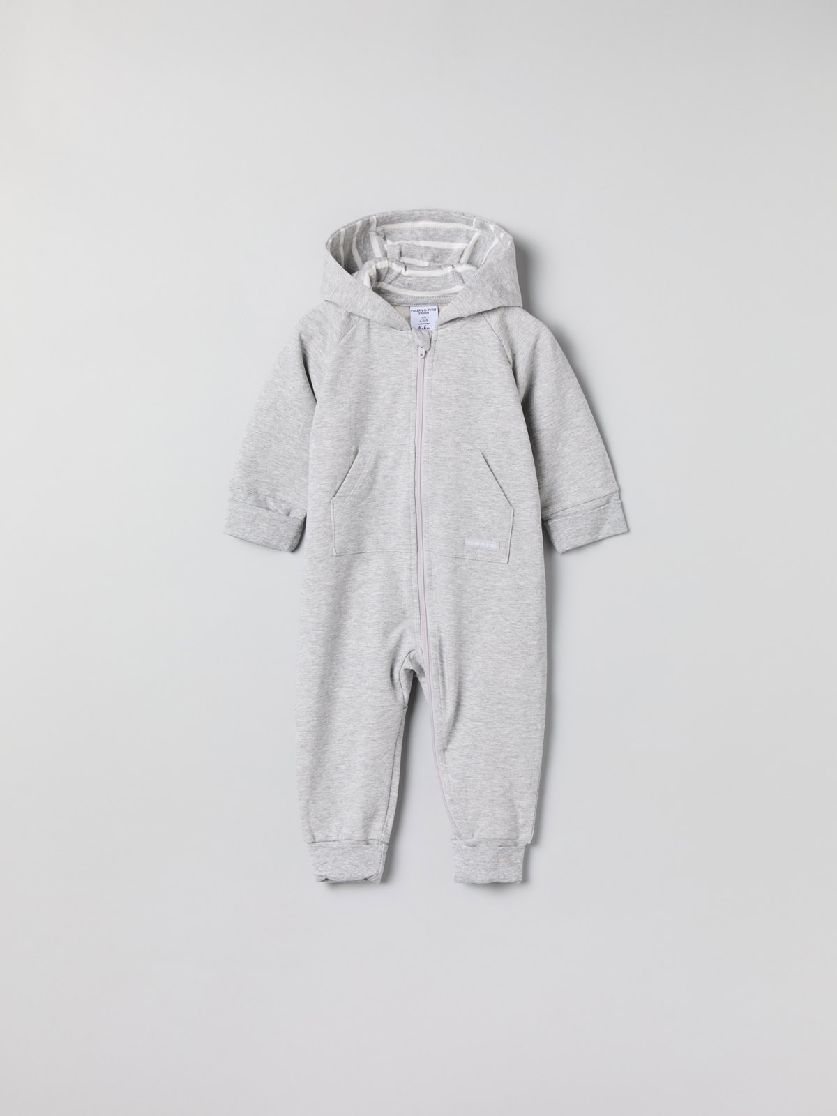 Soft all-in-one in organic cotton for baby, with a comfy sweatshirt quality and brushed inside.