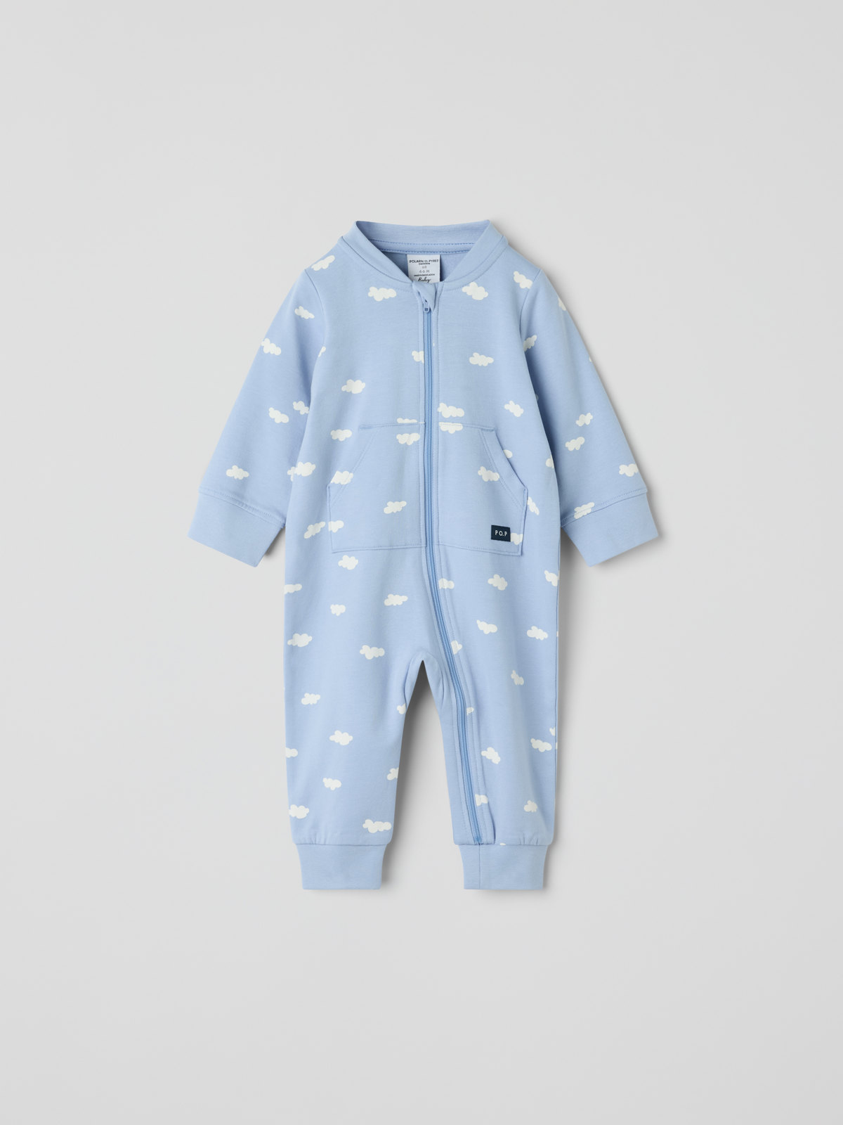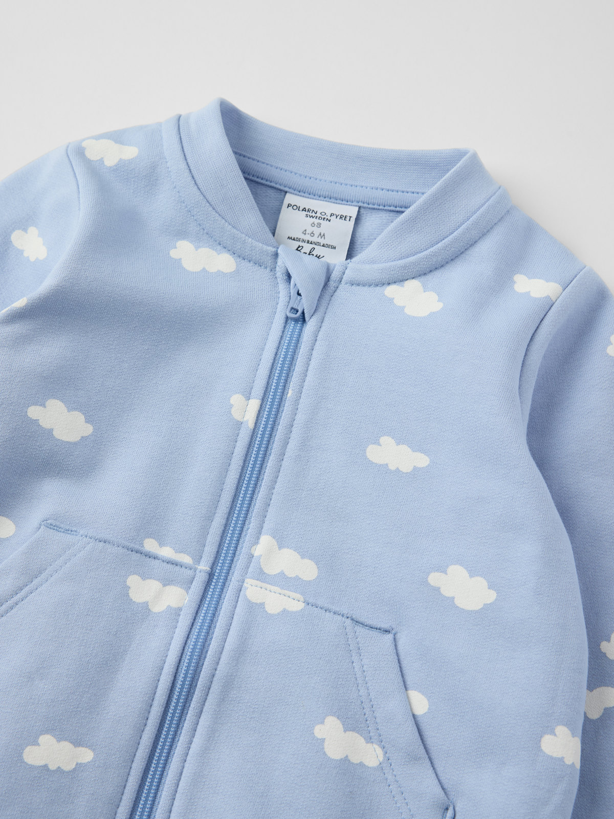 A cute all-in-one made in the softest, organic cotton sweatshirt fabric for your little one, with a brushed lining. This all-in-one has soft, ribbed cuffs and ankles for a comfortable fit. The neck-to-ankle zipper facilitates dressing, while the chin guard is gentle on the chin and cheeks.