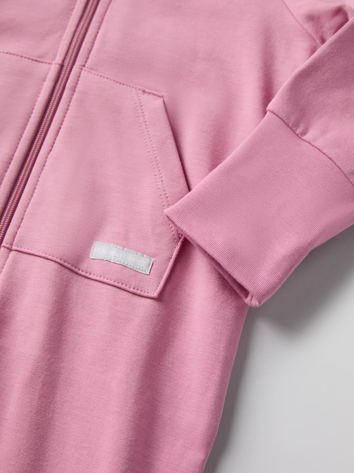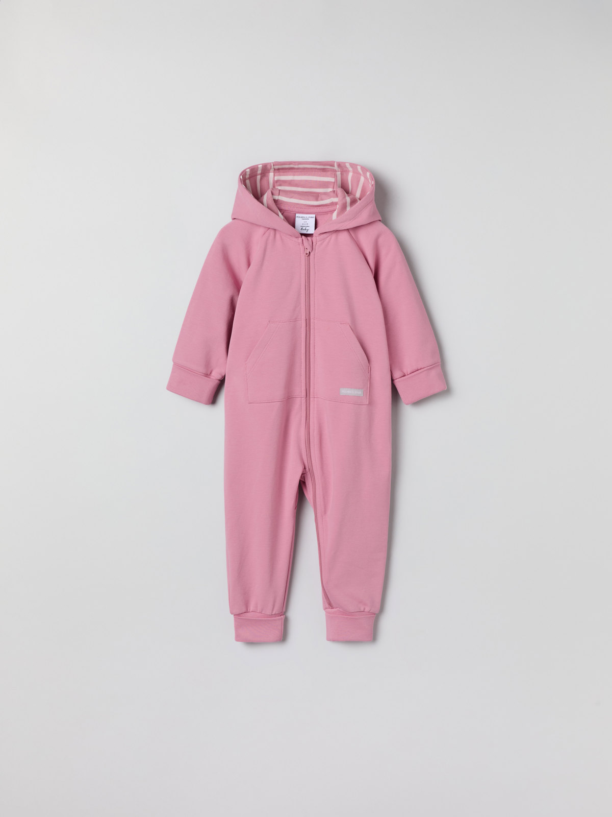 Soft all-in-one in organic cotton for baby, with a comfy sweatshirt quality and brushed inside.