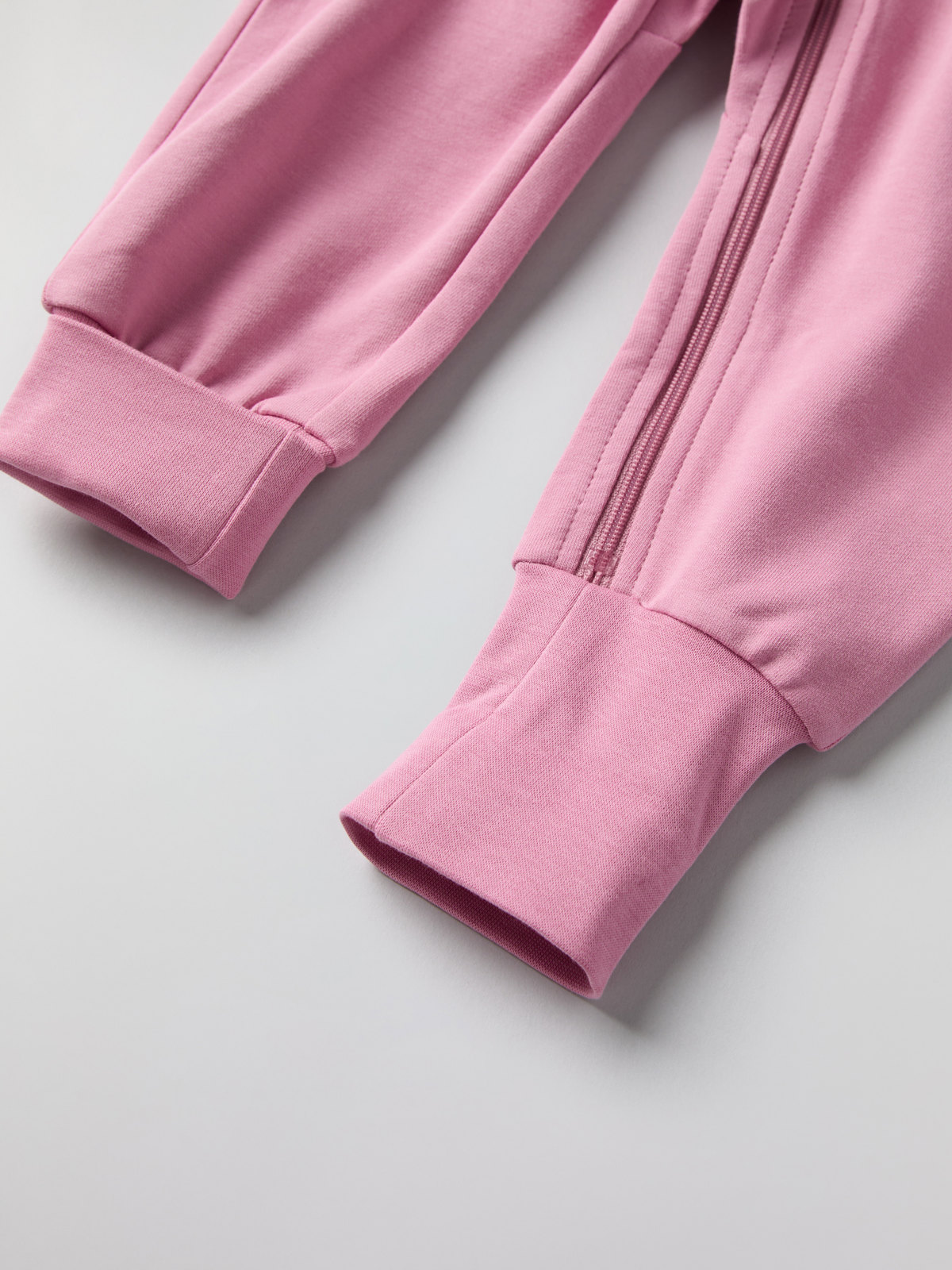 The all-in-one has extra long, ribbed wrist and ankle cuffs that can be folded down as the child grows.
