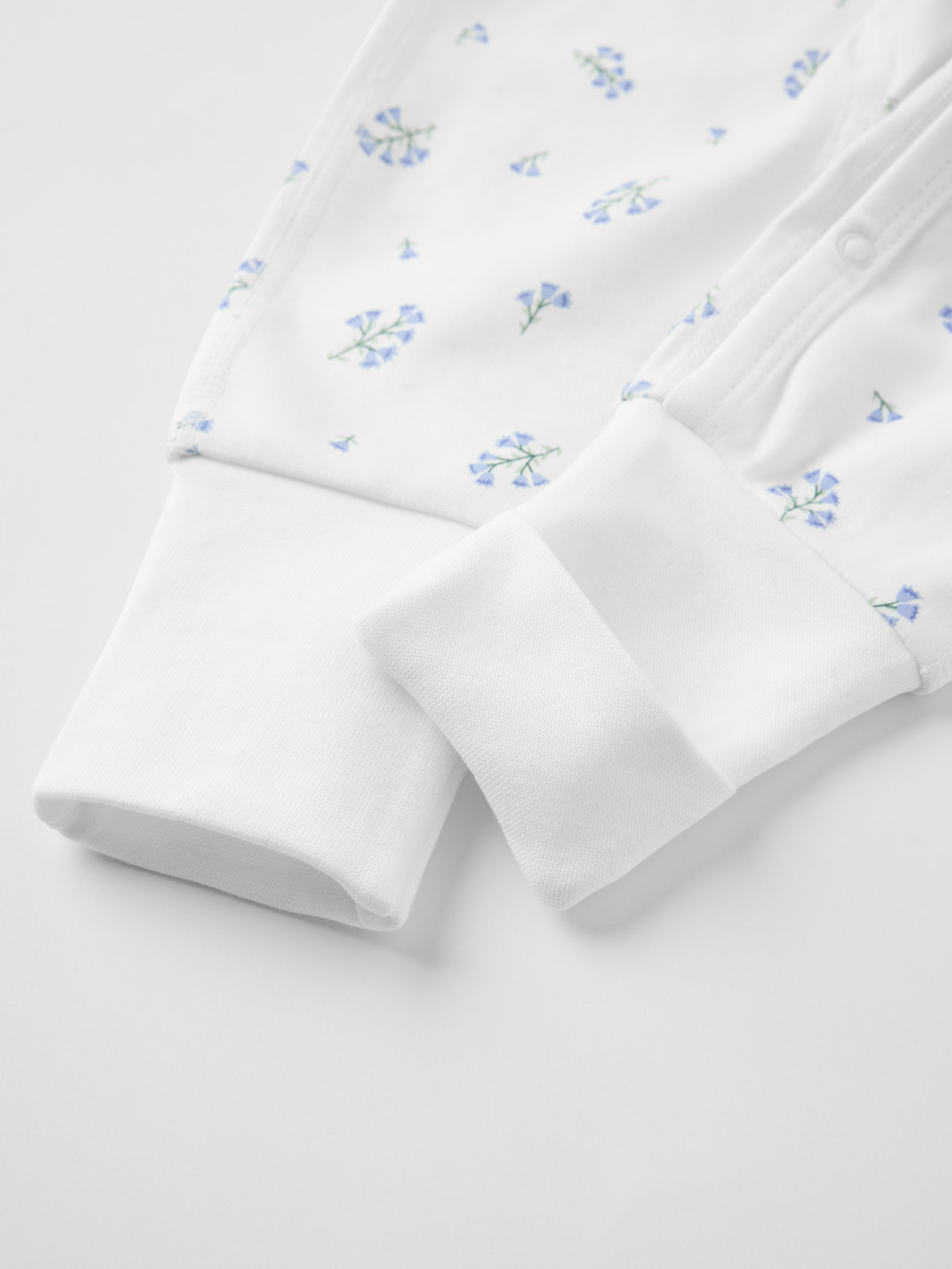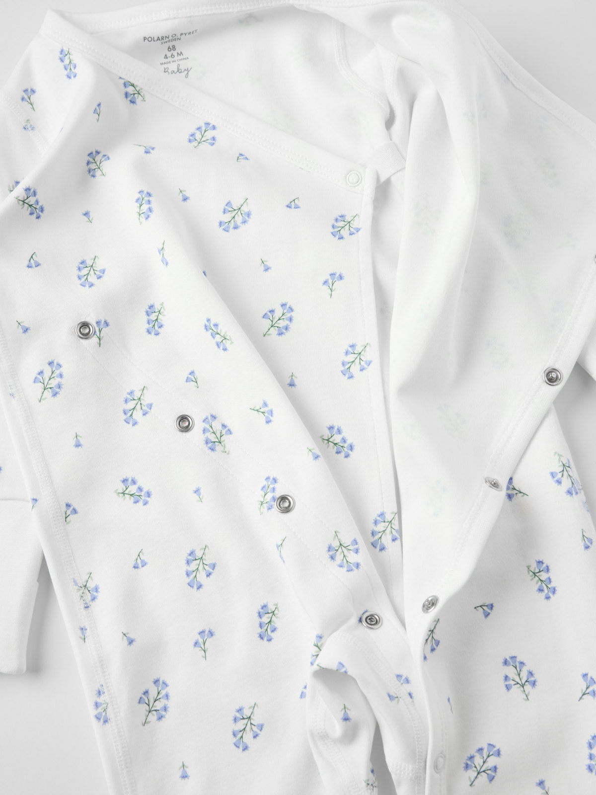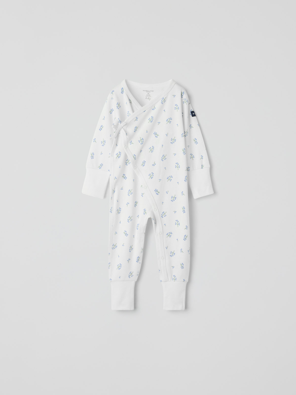 Soft and comfy wraparound romper in 100% organic cotton – perfect for snuggling up! This romper features extra soft, flatlock seams that are gentle on sensitive skin. The wrist and ankle cuffs can be folded down. The cuffs also have a foldover feature to protect little hands from the cold. With a pretty ribbon under the arms that can be tied to create a cute bow.