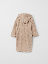 The bathrobe is made of soft, organic cotton and recycled polyester. It has a detachable hood that is fastened with snaps, and a soft cotton lining in our classic stripes. The bathrobe comes down to mid-calf, and has two front pockets and a zipper closure.