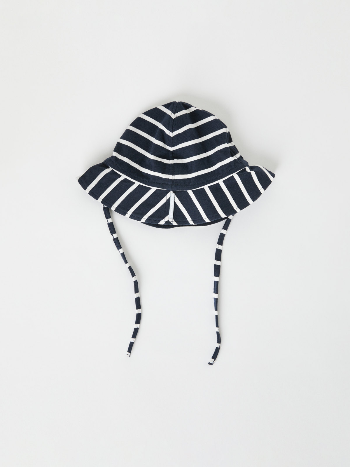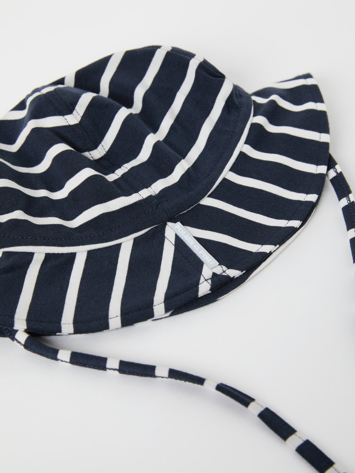 Protect your baby’s delicate skin with this striped sun hat in soft, organic cotton. The tie strings under the chin keep the hat in place.