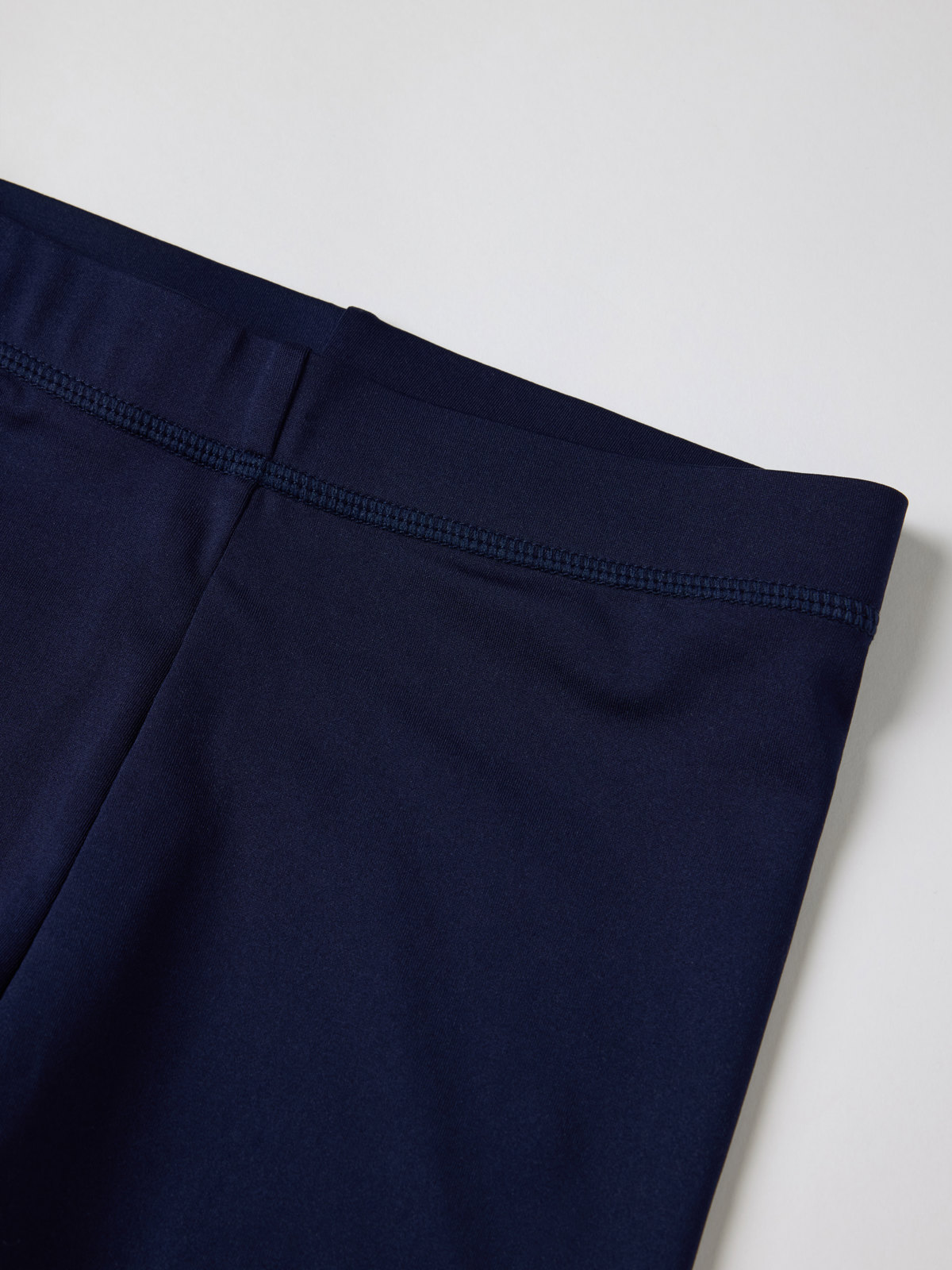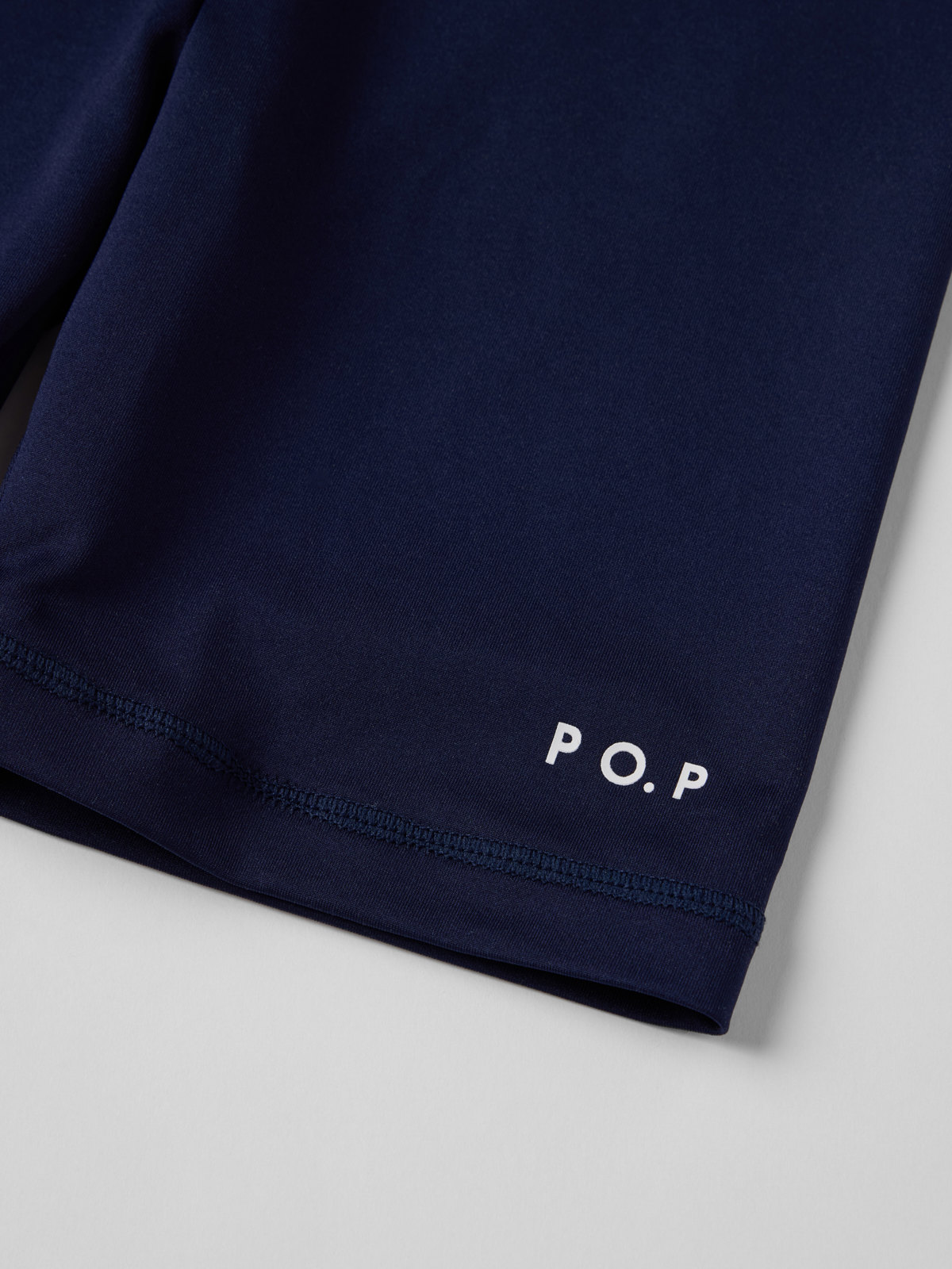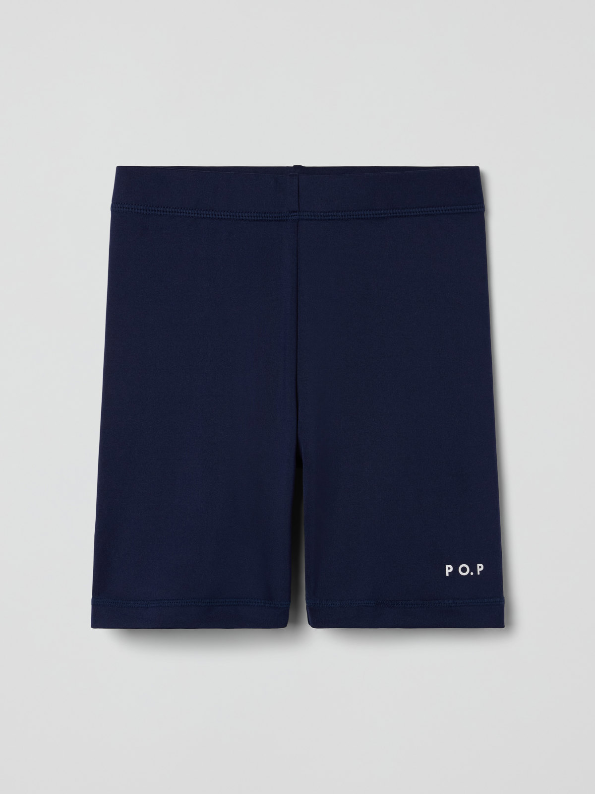 Solid color UV shorts in stretchy, recycled material with UPF 50 protection.