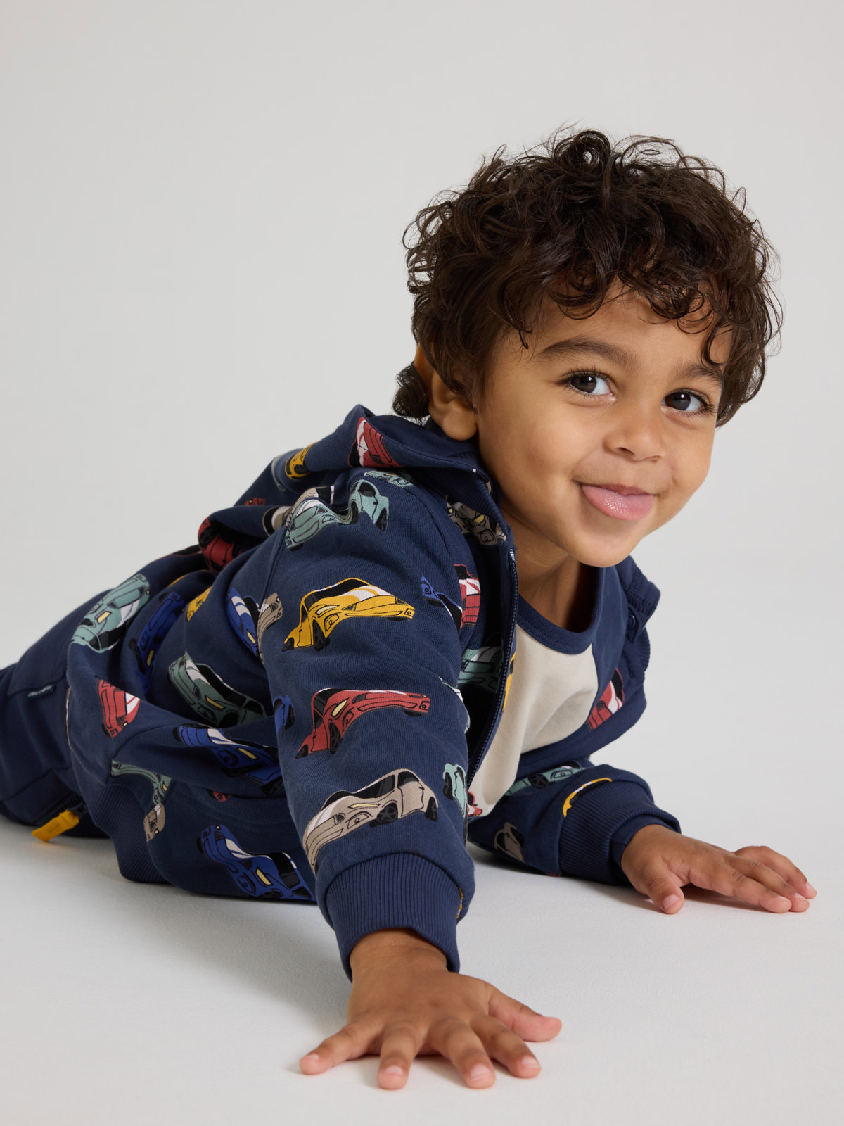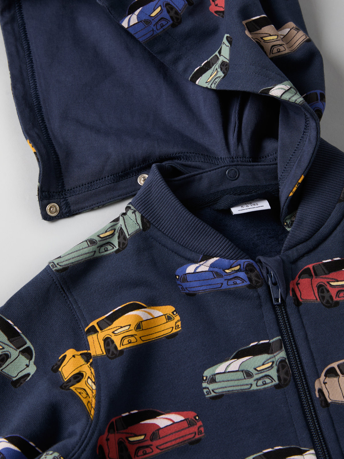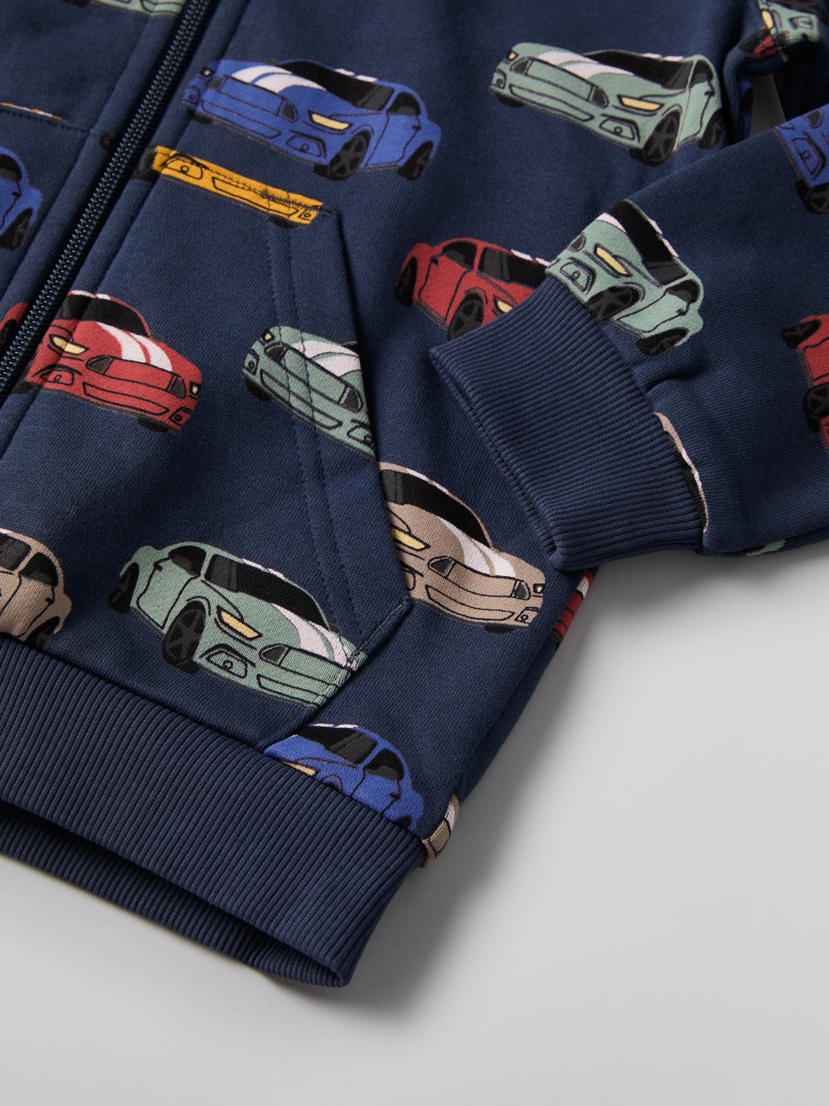 Comfy hoodie in 100% organic cotton with an allover car print.
