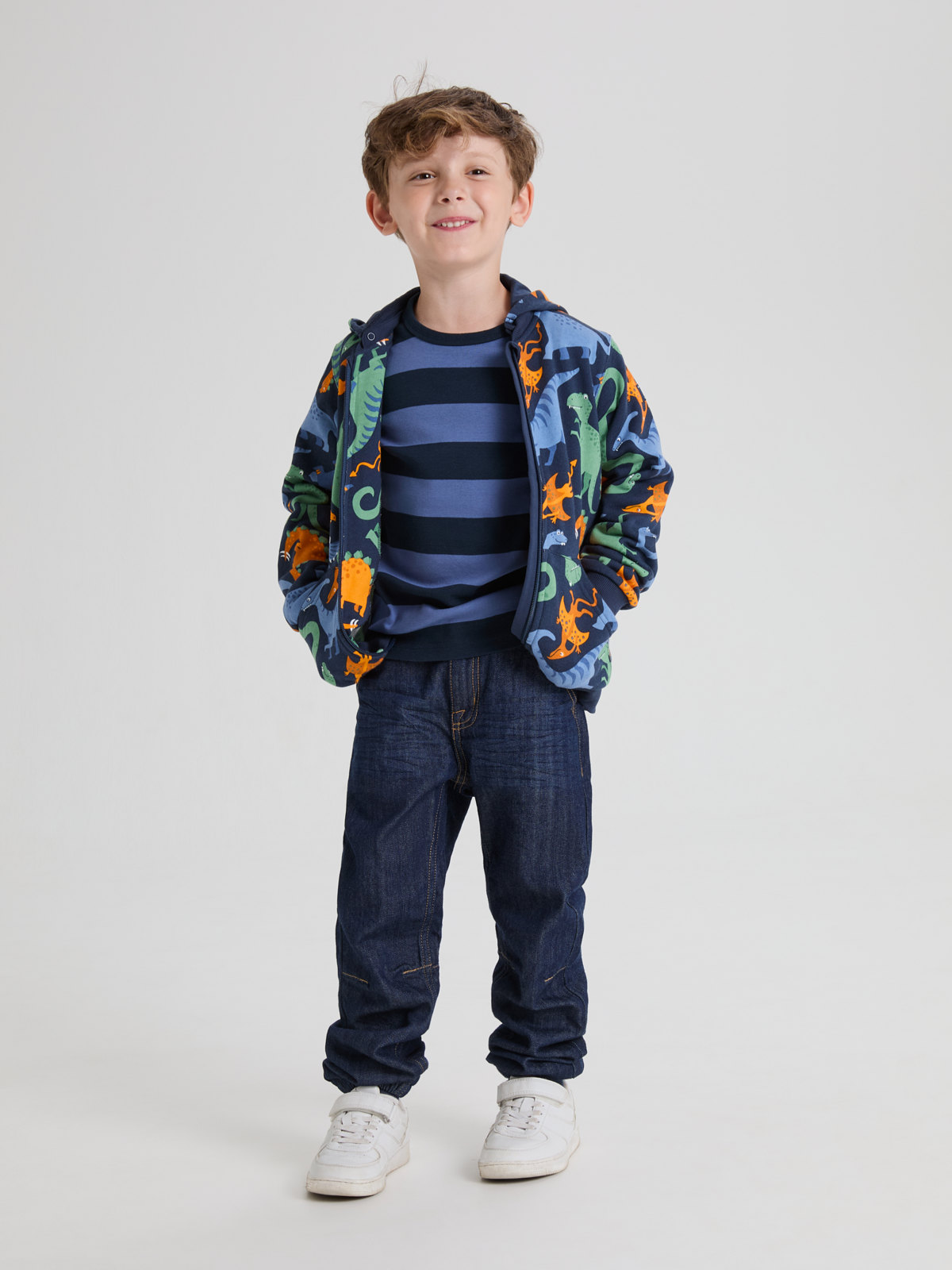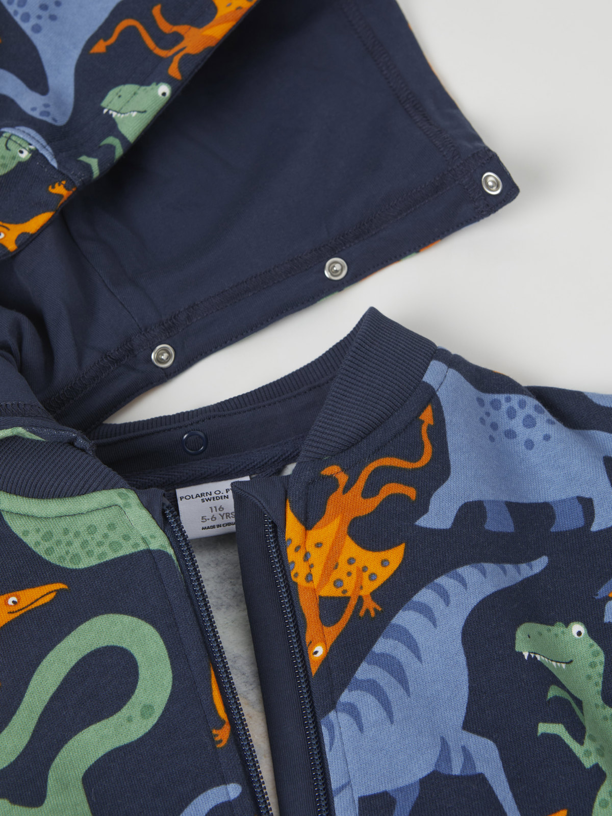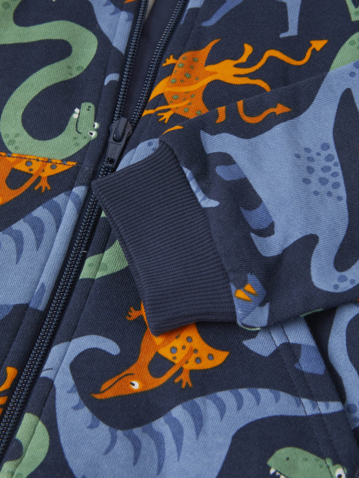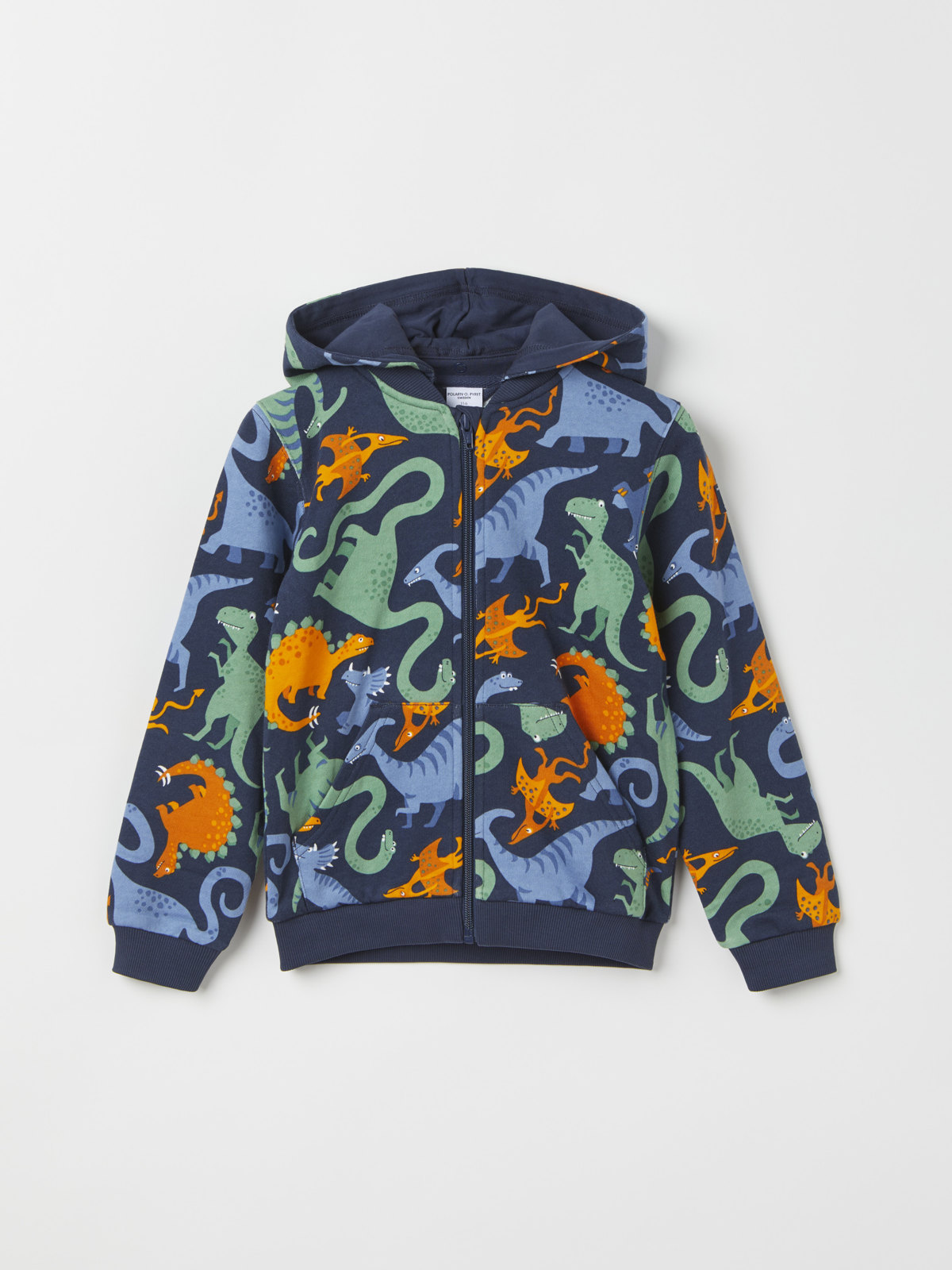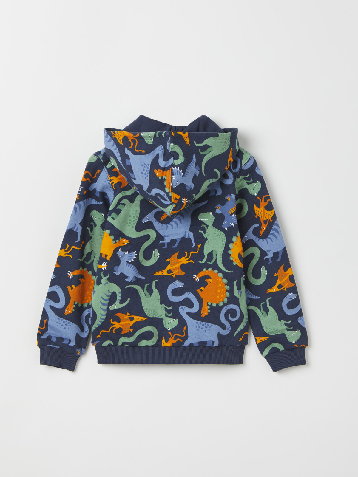 Comfy hoodie in 100% organic cotton, with an allover dinosaur print.