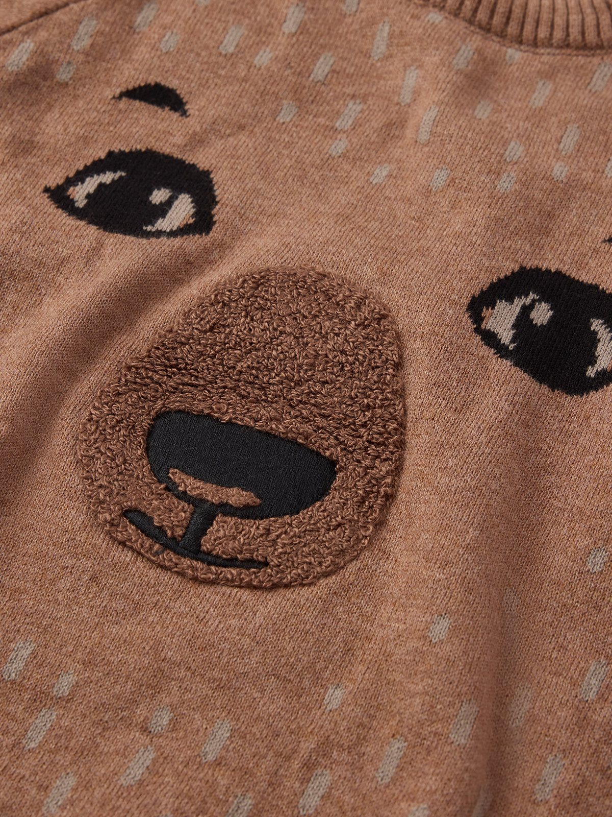 Thick knitted sweater in 100% organic cotton – super cosy and warm for the cold! The sweater features a large bear face on the front and sewn-on little ears at the shoulders. Ribbed cuffs at the neckline, sleeves, and hem provide a comfortable fit.