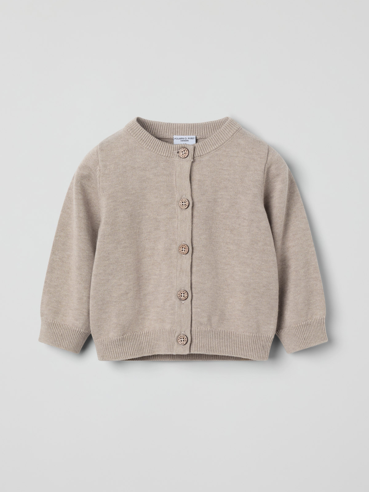 Fine-knit cardigan in soft organic cotton for baby – one of the season’s must-have pieces! The cardigan closes with buttons at the front. Ribbed trims at neckline, cuffs and hem provide a comfortable fit.
