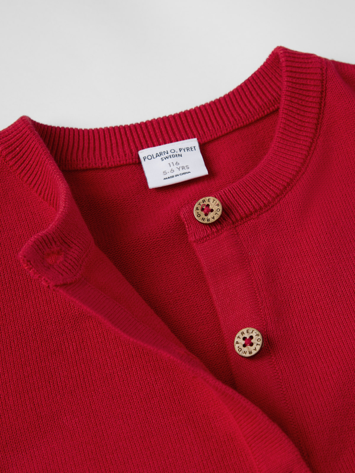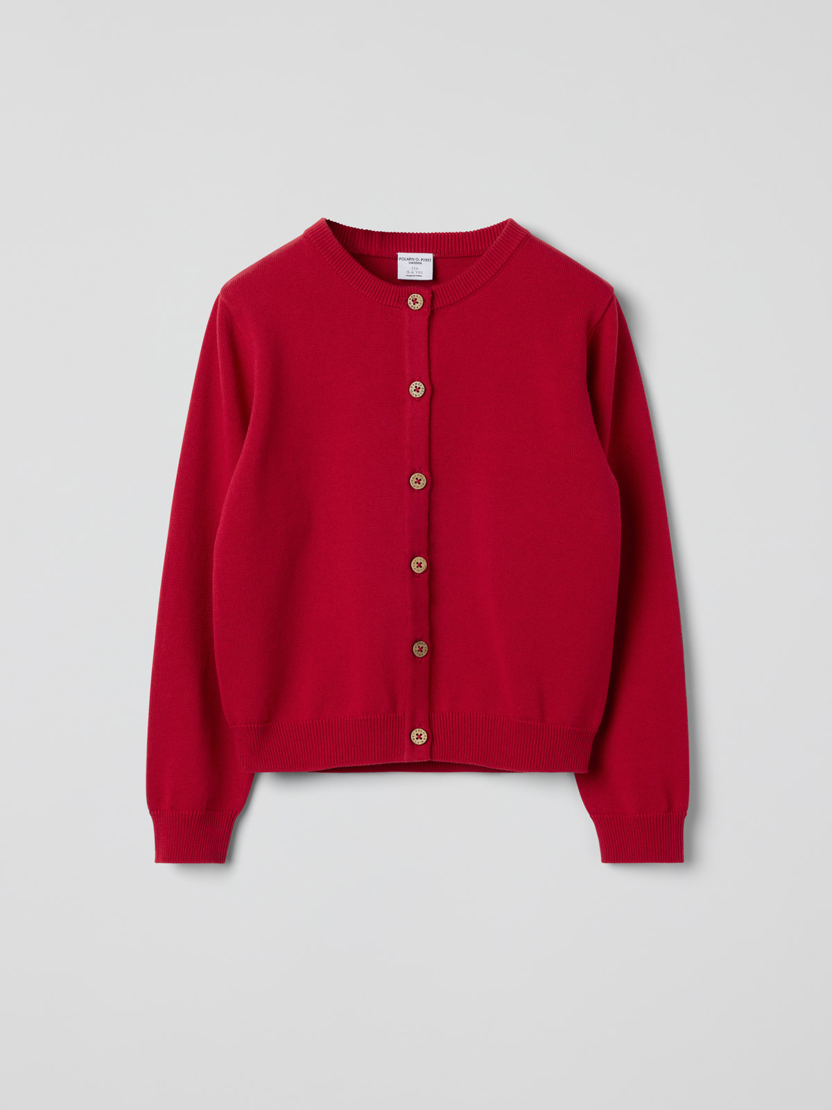 Fine-knit cardigan in soft organic cotton – one of the season’s must-have pieces! The cardigan closes with buttons at the front. Ribbed trims at neckline, cuffs and hem provide a comfortable fit.