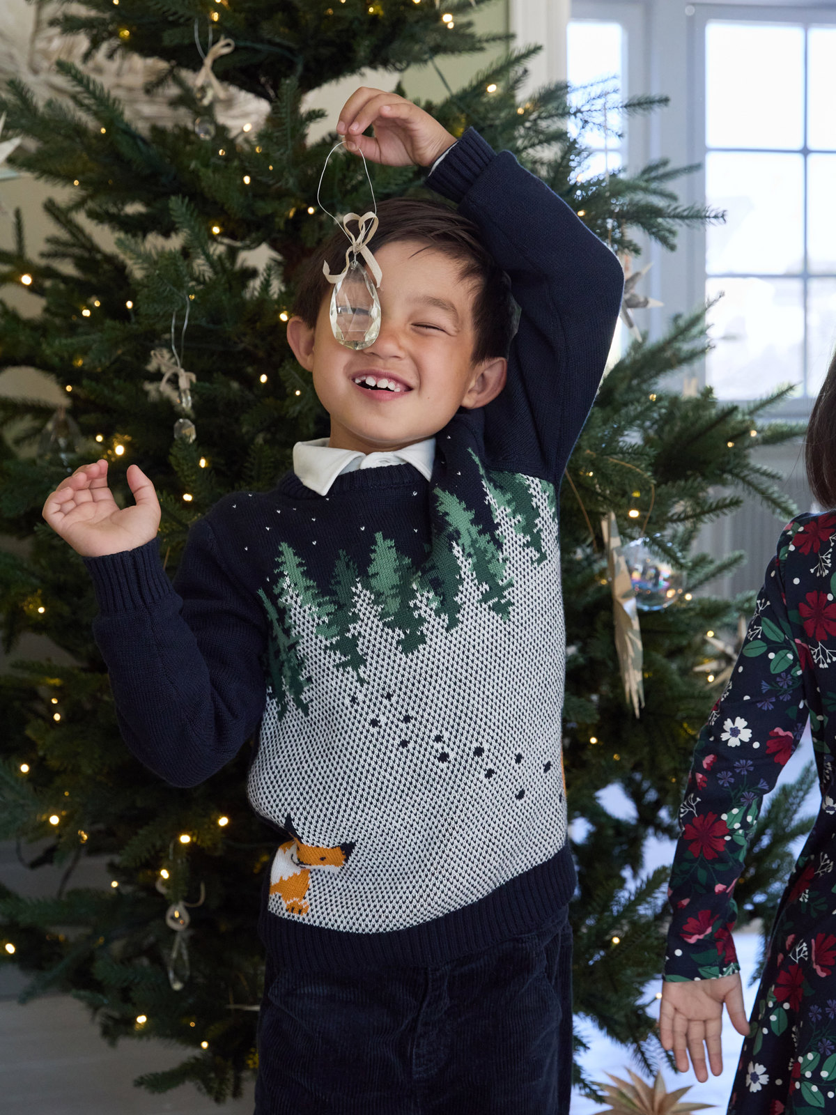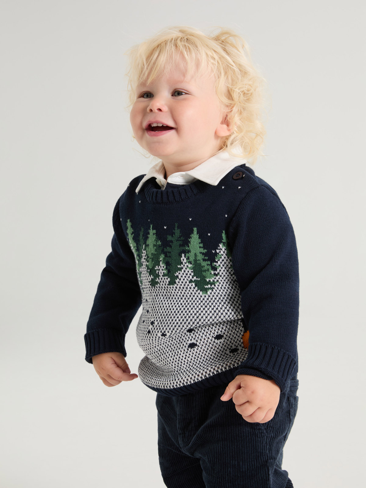 A jacquard-knit sweater with a lovely winter-inspired pattern in 100% organic cotton. The ultimate Christmas sweater!