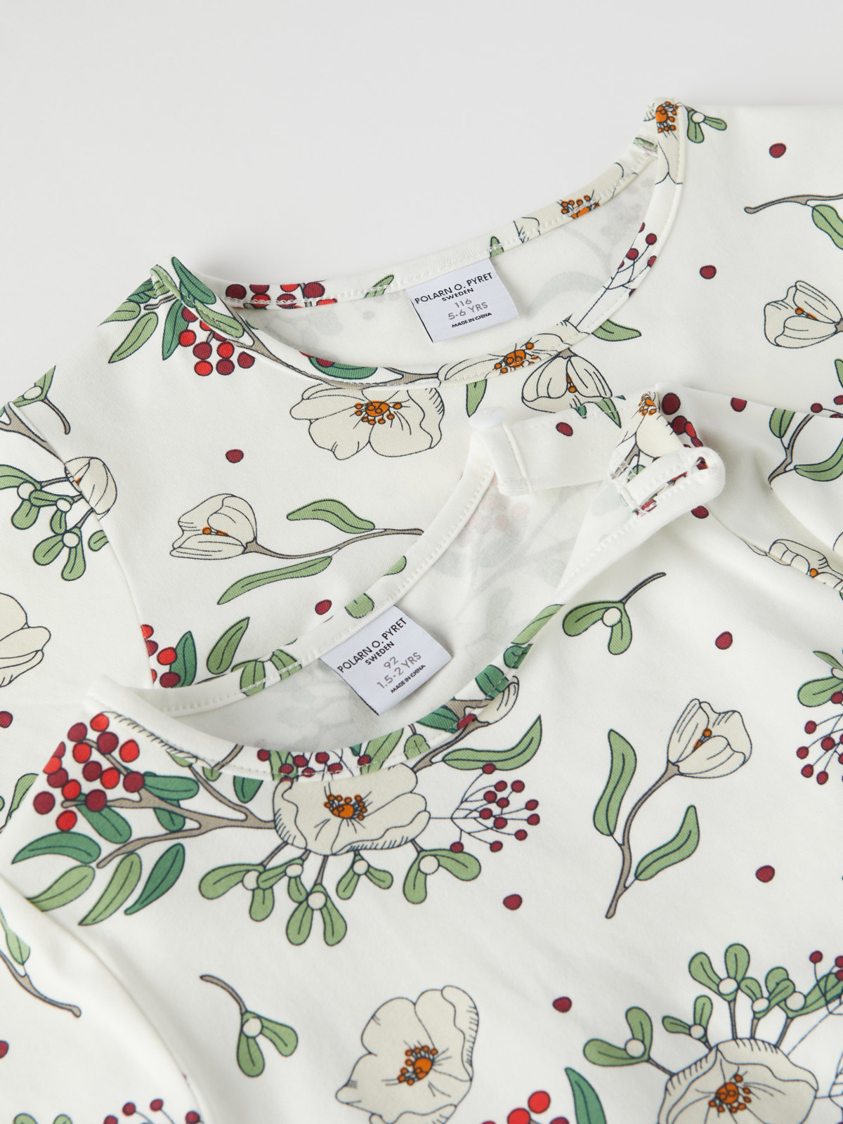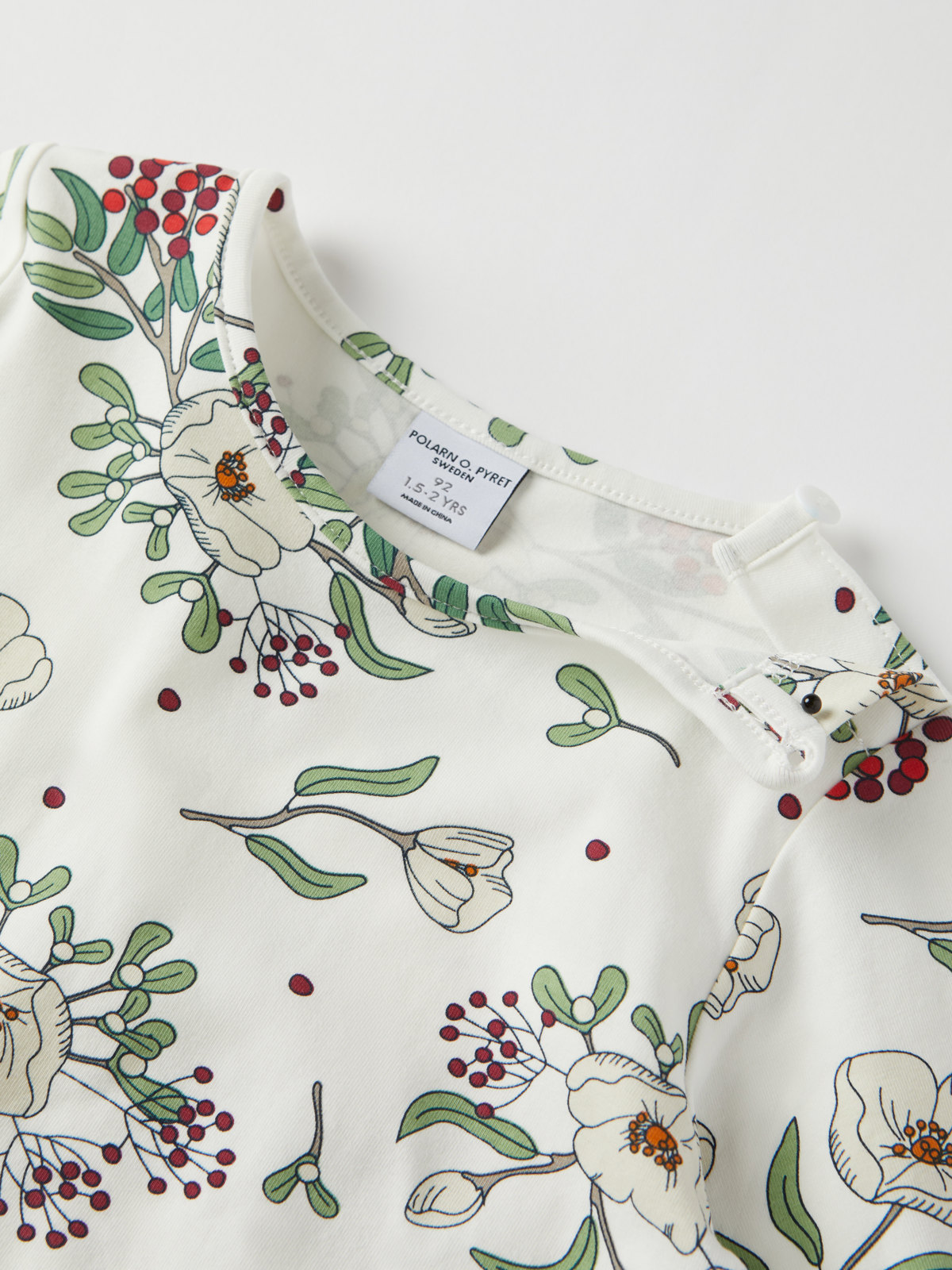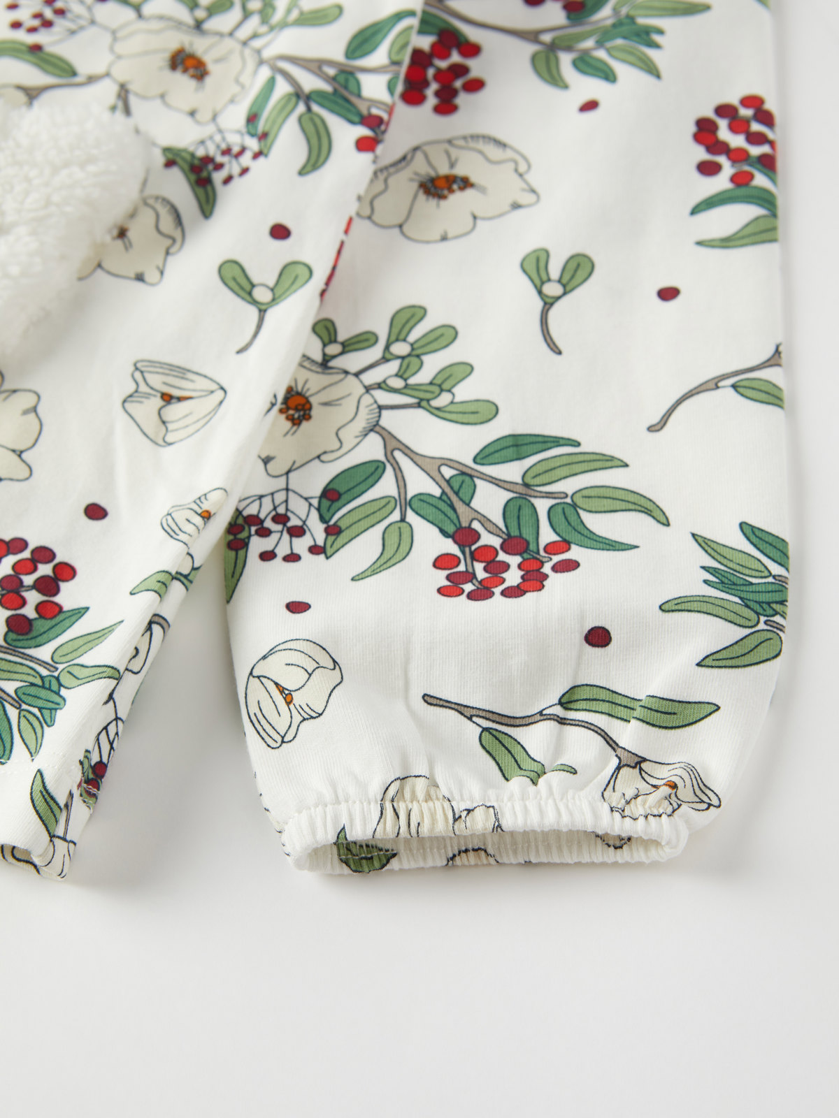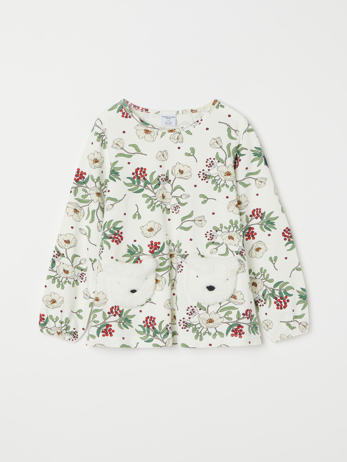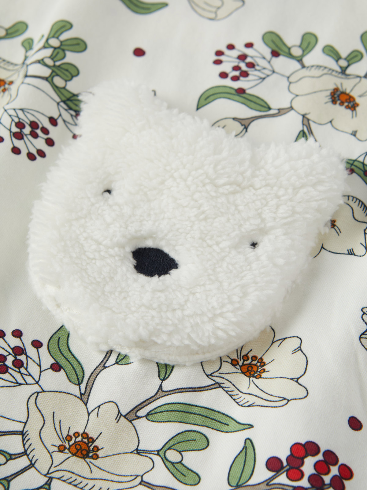 Top in soft organic cotton with an allover floral print. The top has two playful swan-shaped pockets and elastic cuffs.