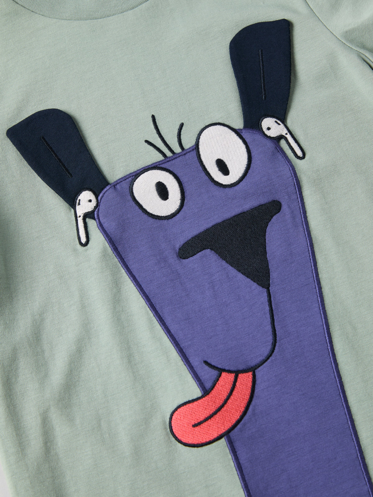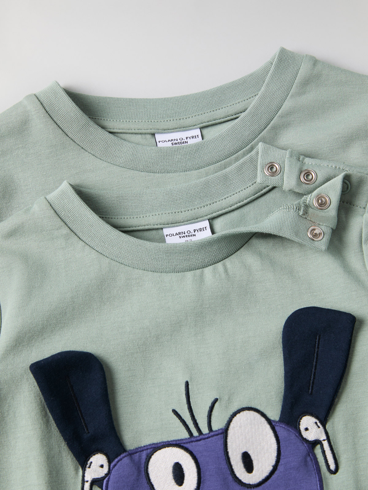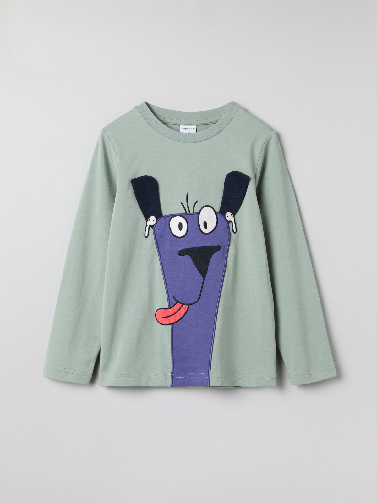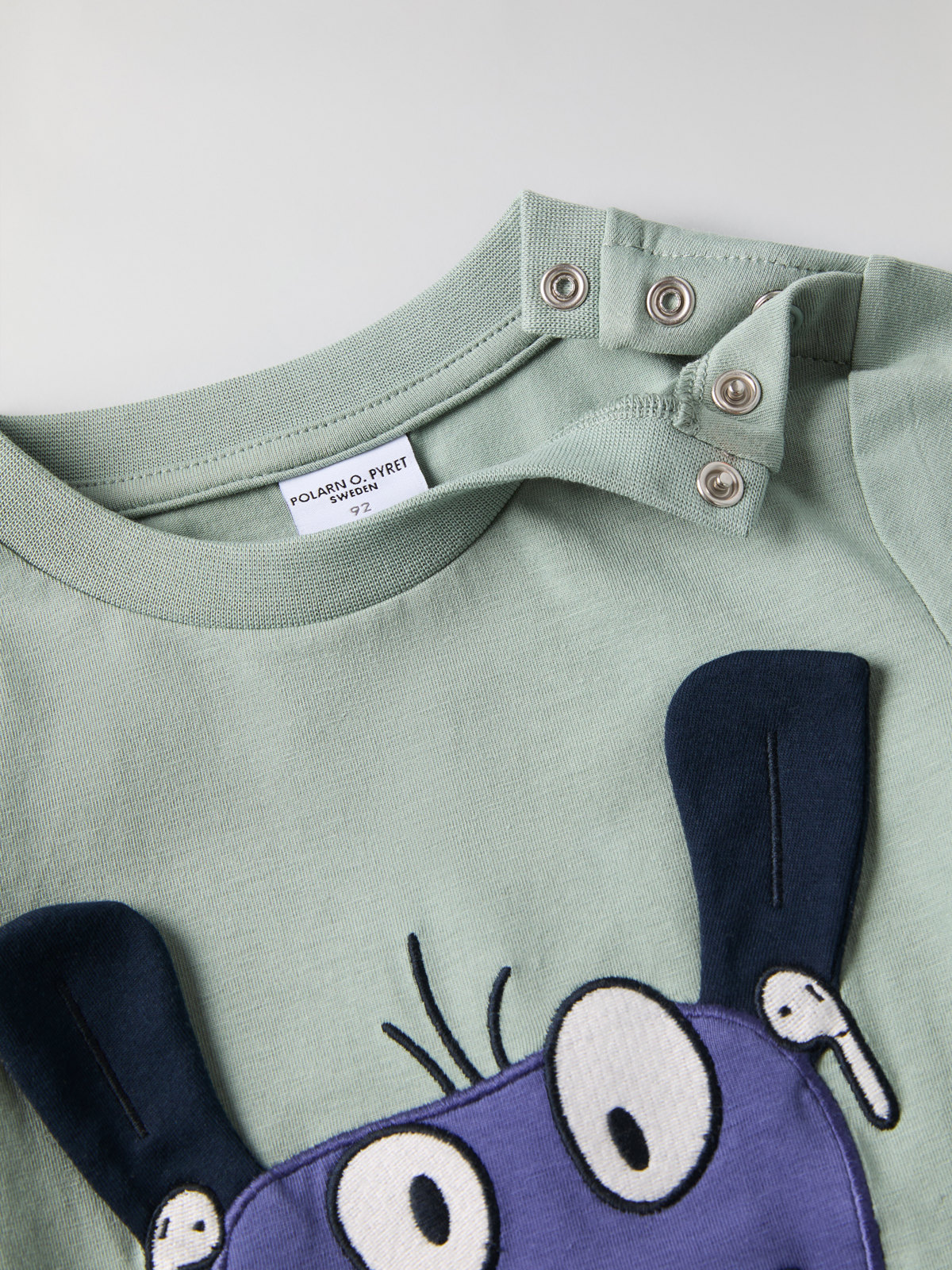 Lightweight and comfy top in soft, organic cotton jersey – a long-lasting favorite! The top has a large dog face print on the front with 3D ears.