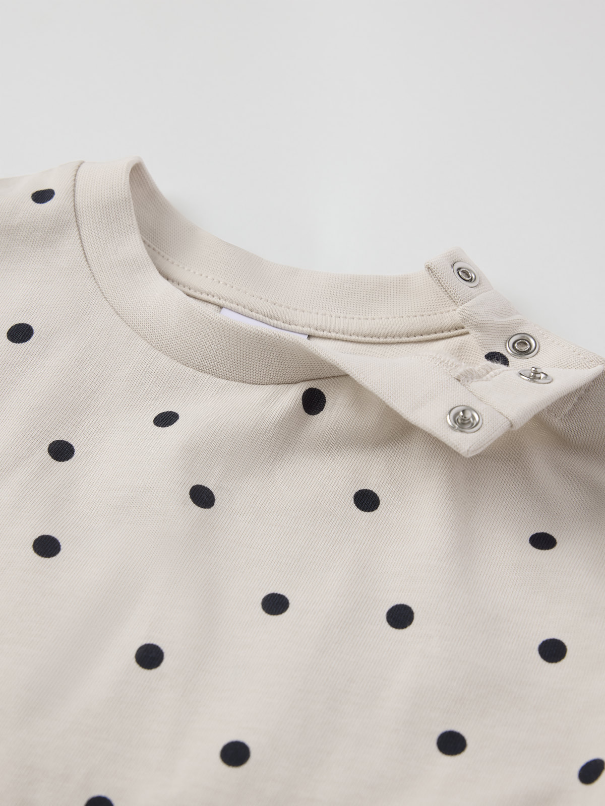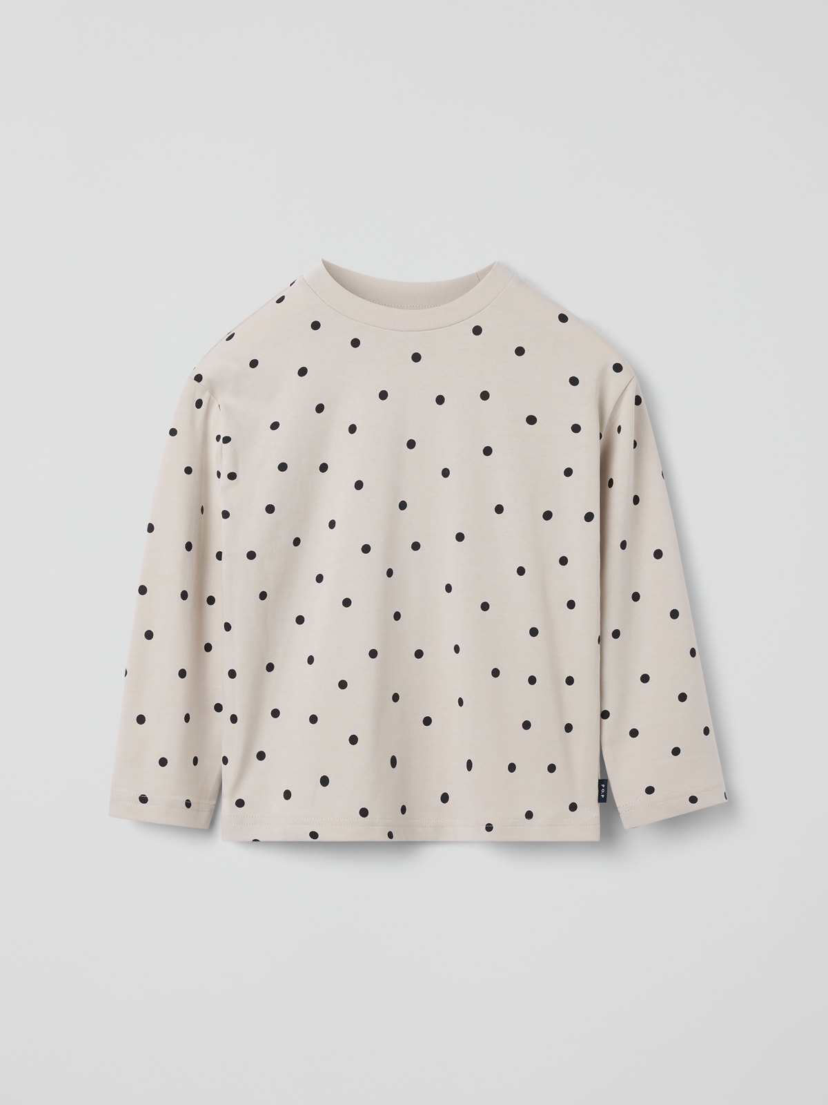 Polka-dot long-sleeved t-shirt in soft 100% organic cotton jersey – a basic favourite to love for a long time! The t-shirt features a ribbed neckline.
